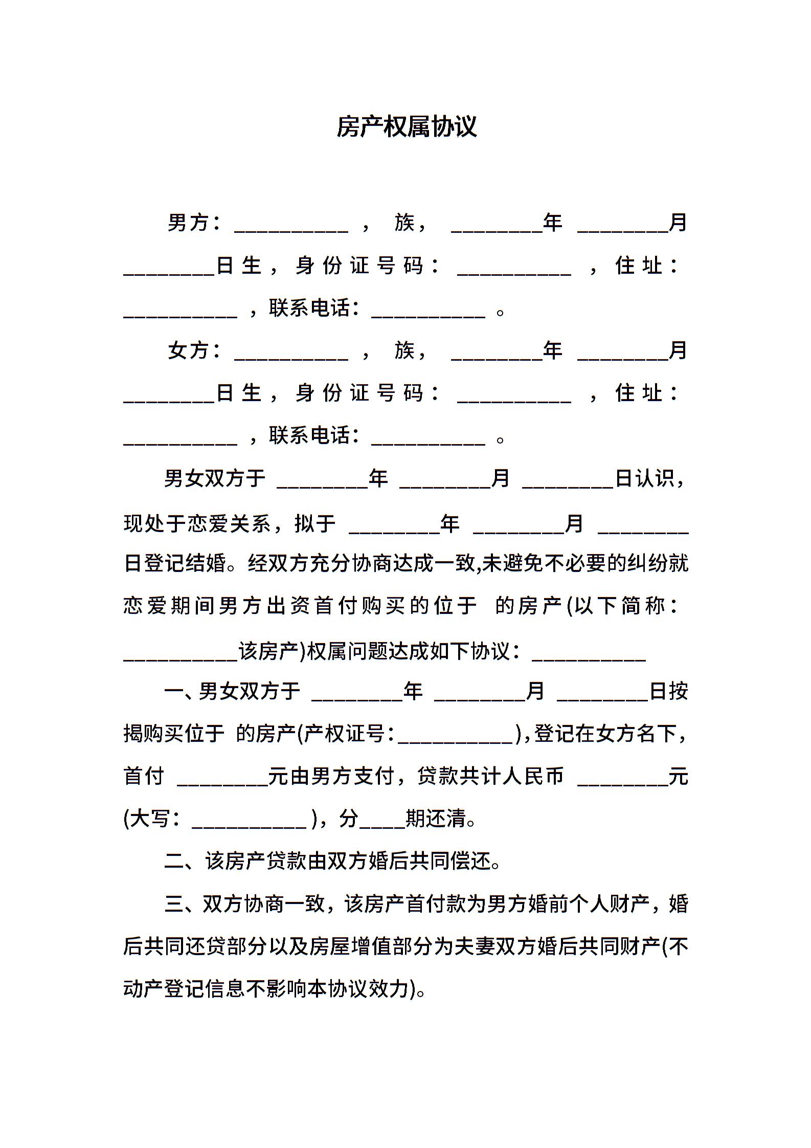 房产权属协议