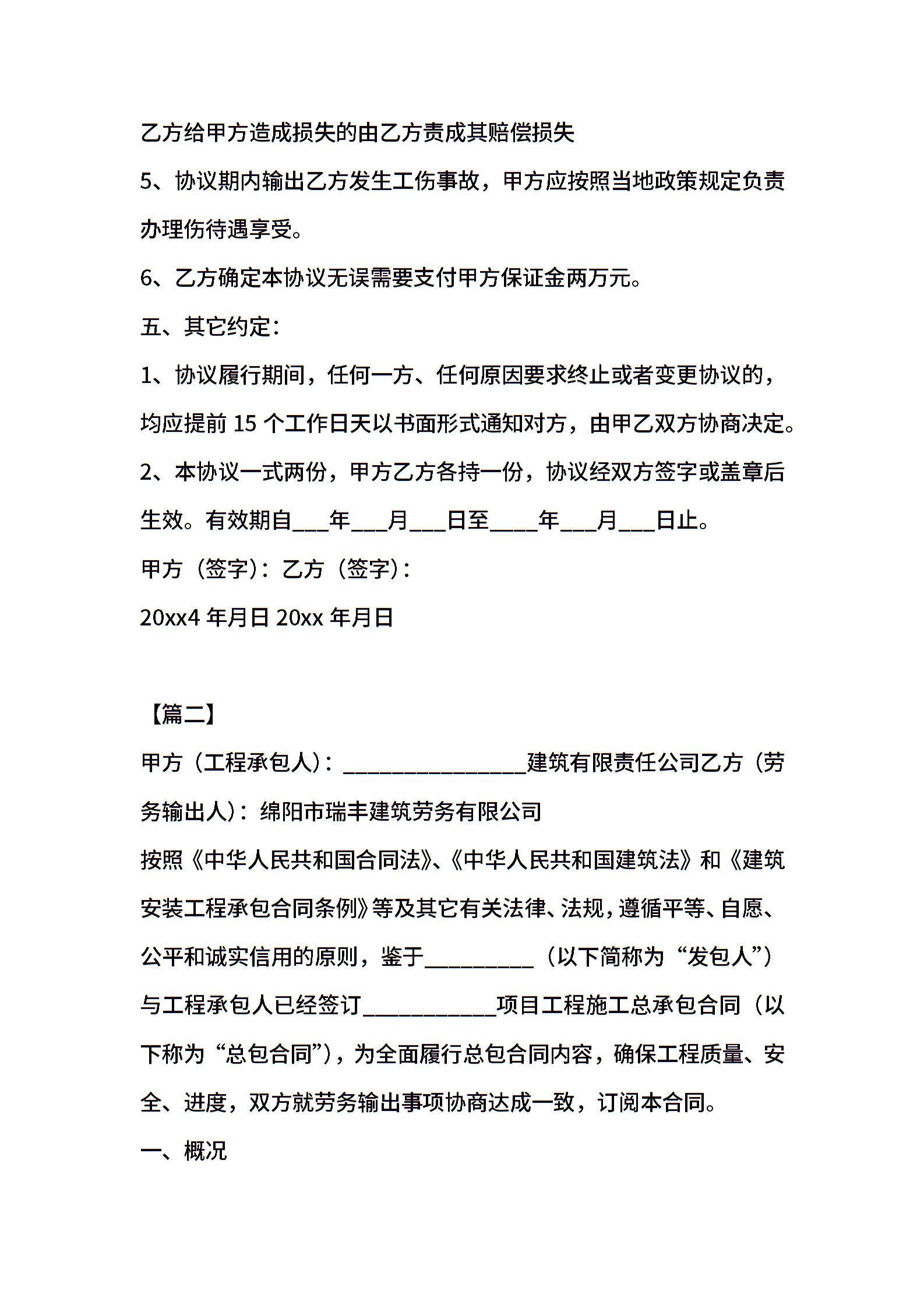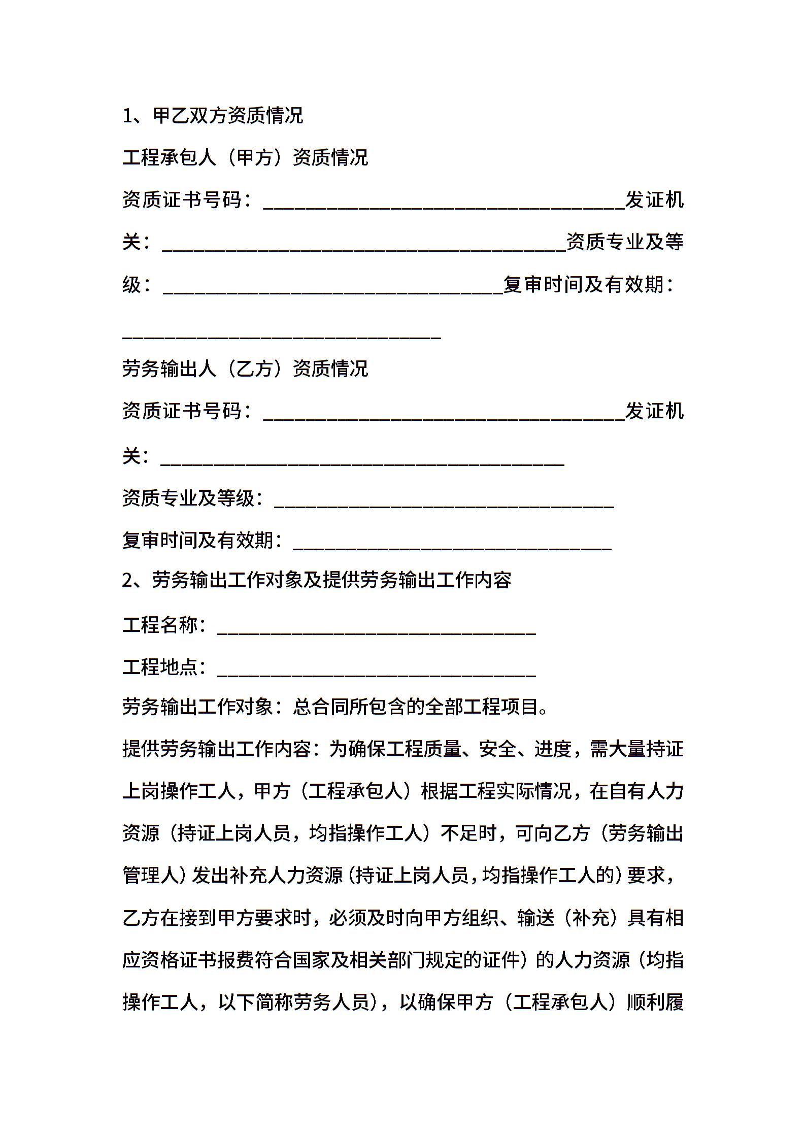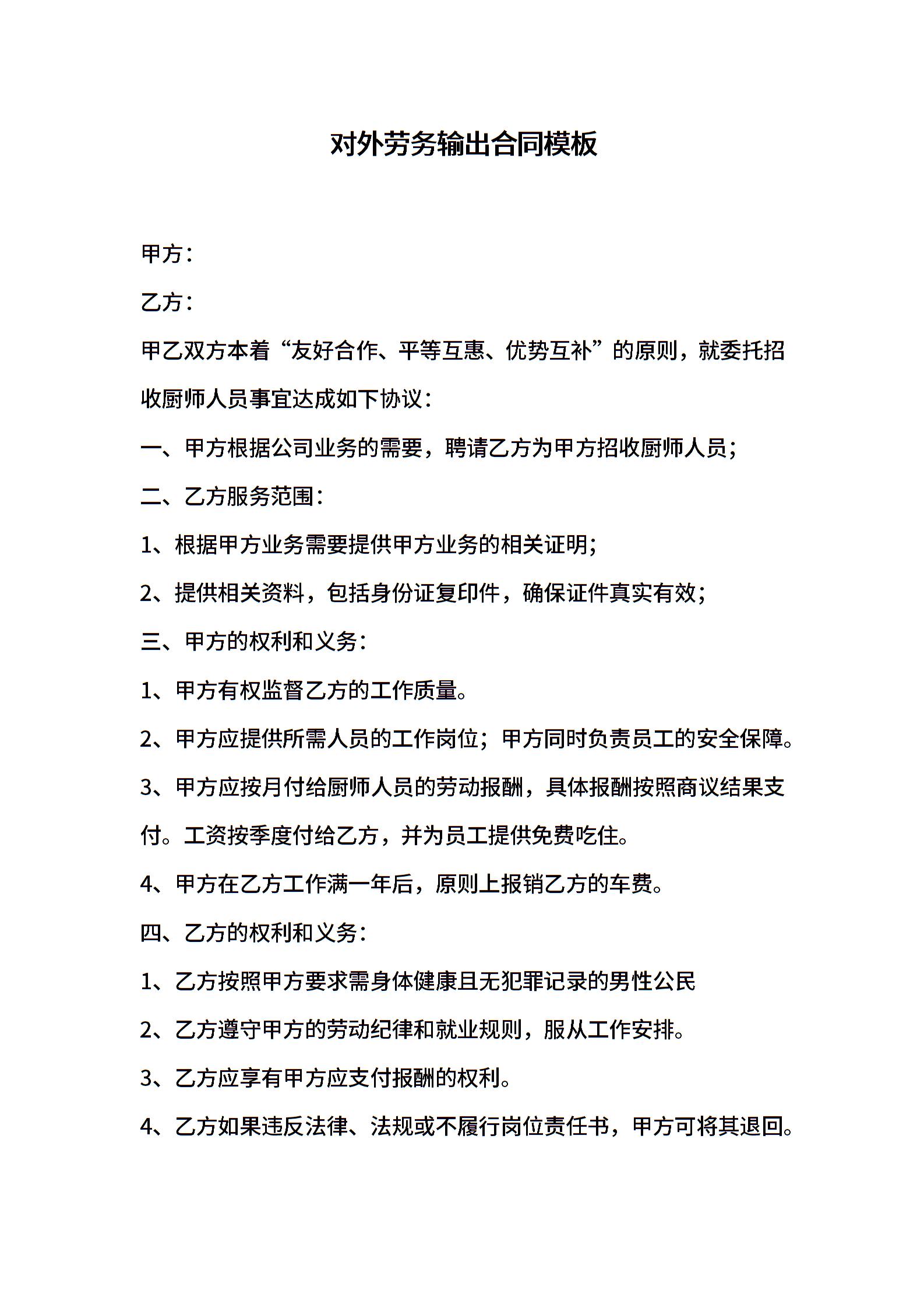 对外劳务输出合同模板