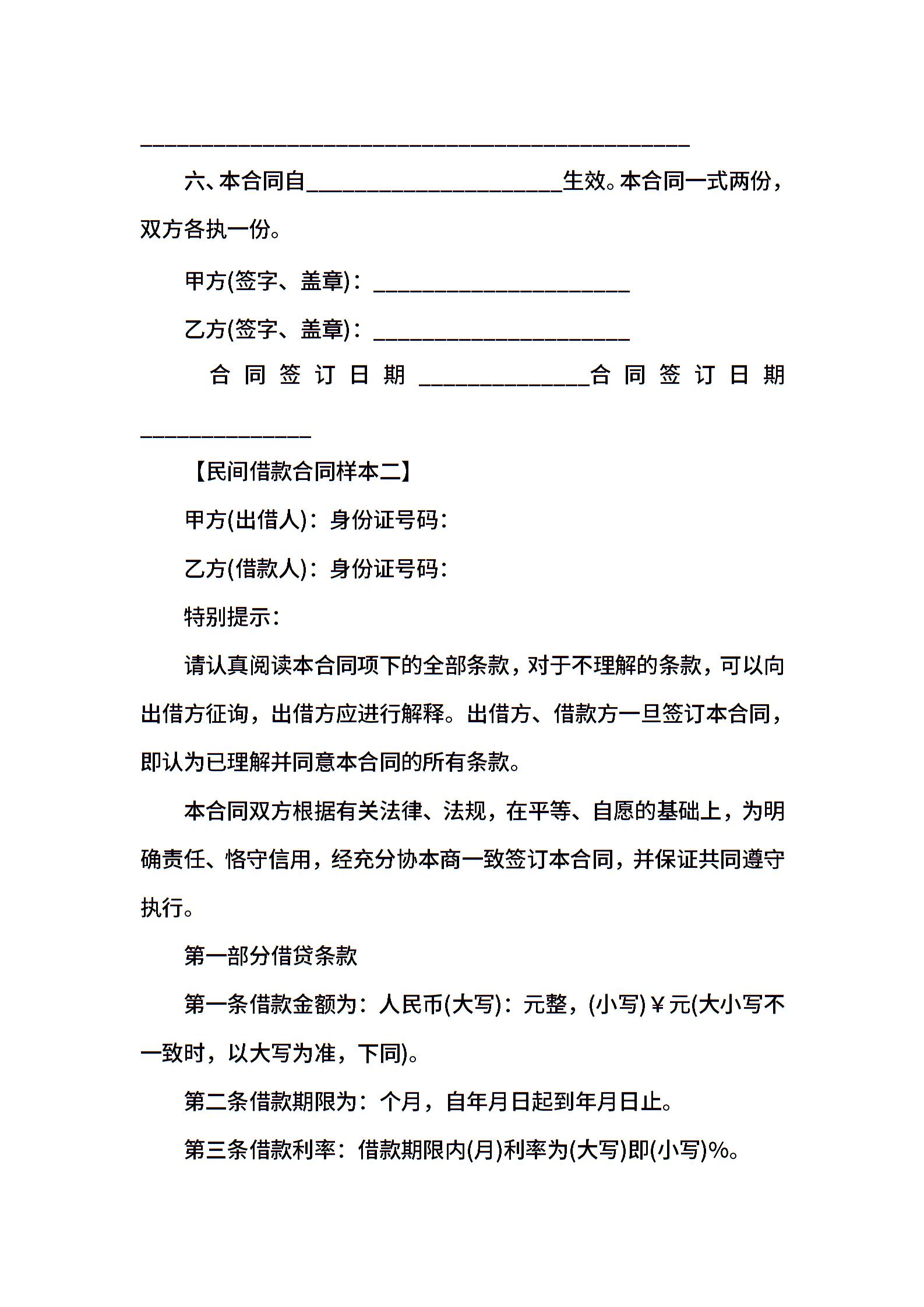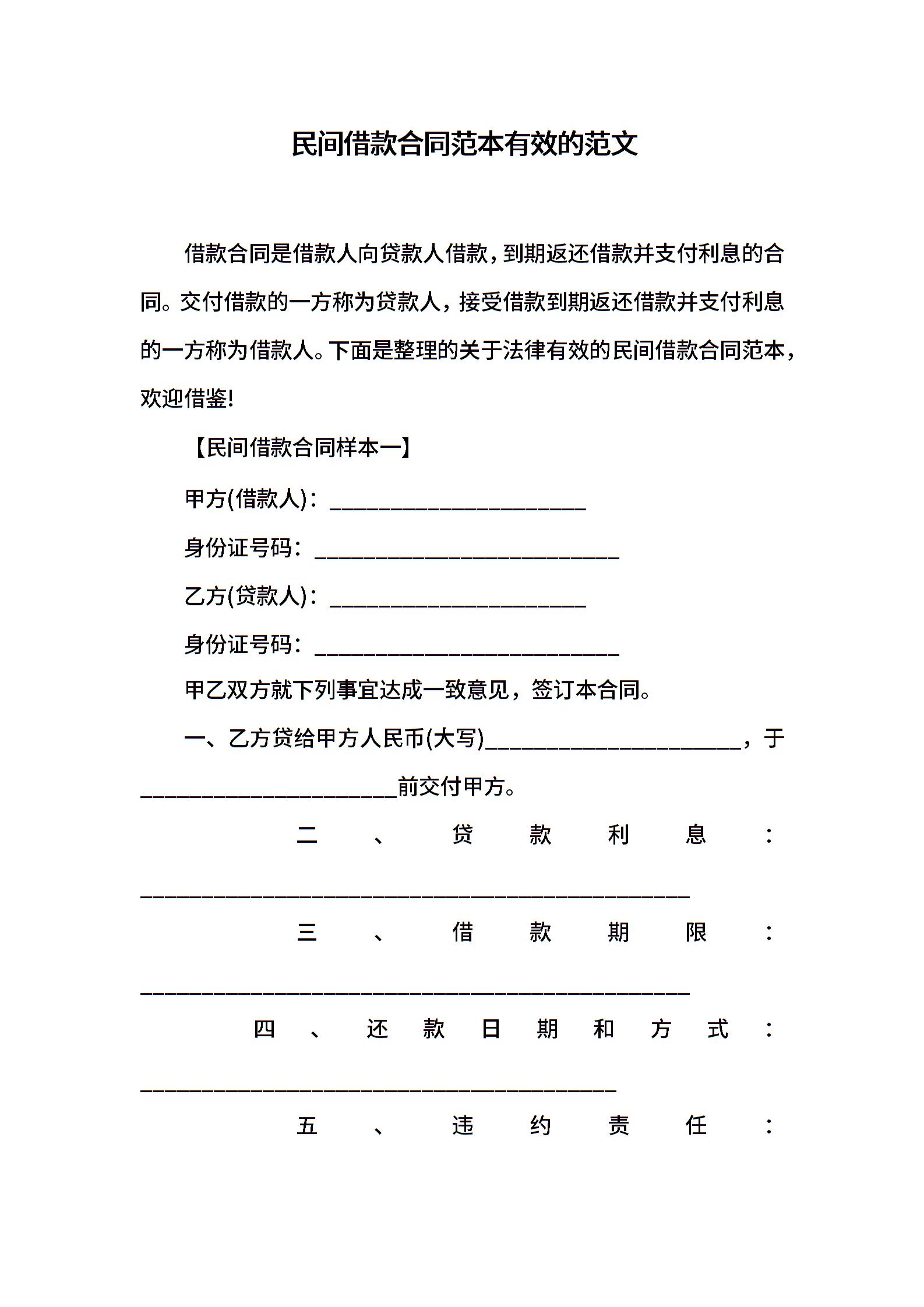 民间借款合同范本有效的范文