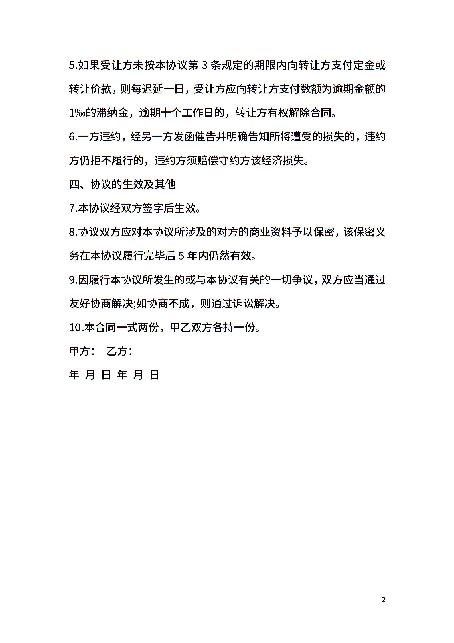 当前位置:量子办公 > 合同模板 > 转让合同 >