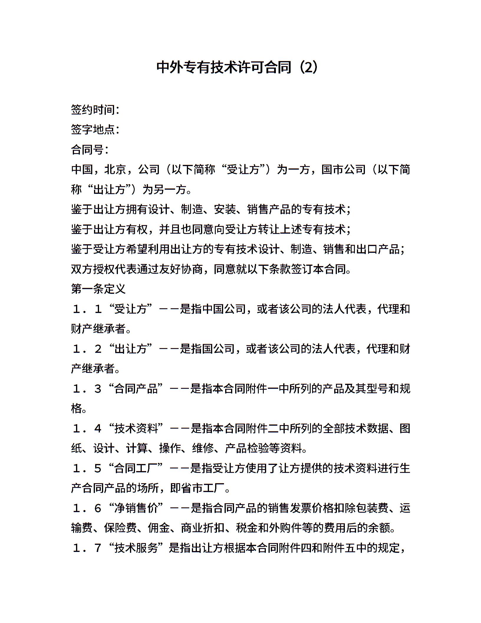 中外专有技术许可合同(2)