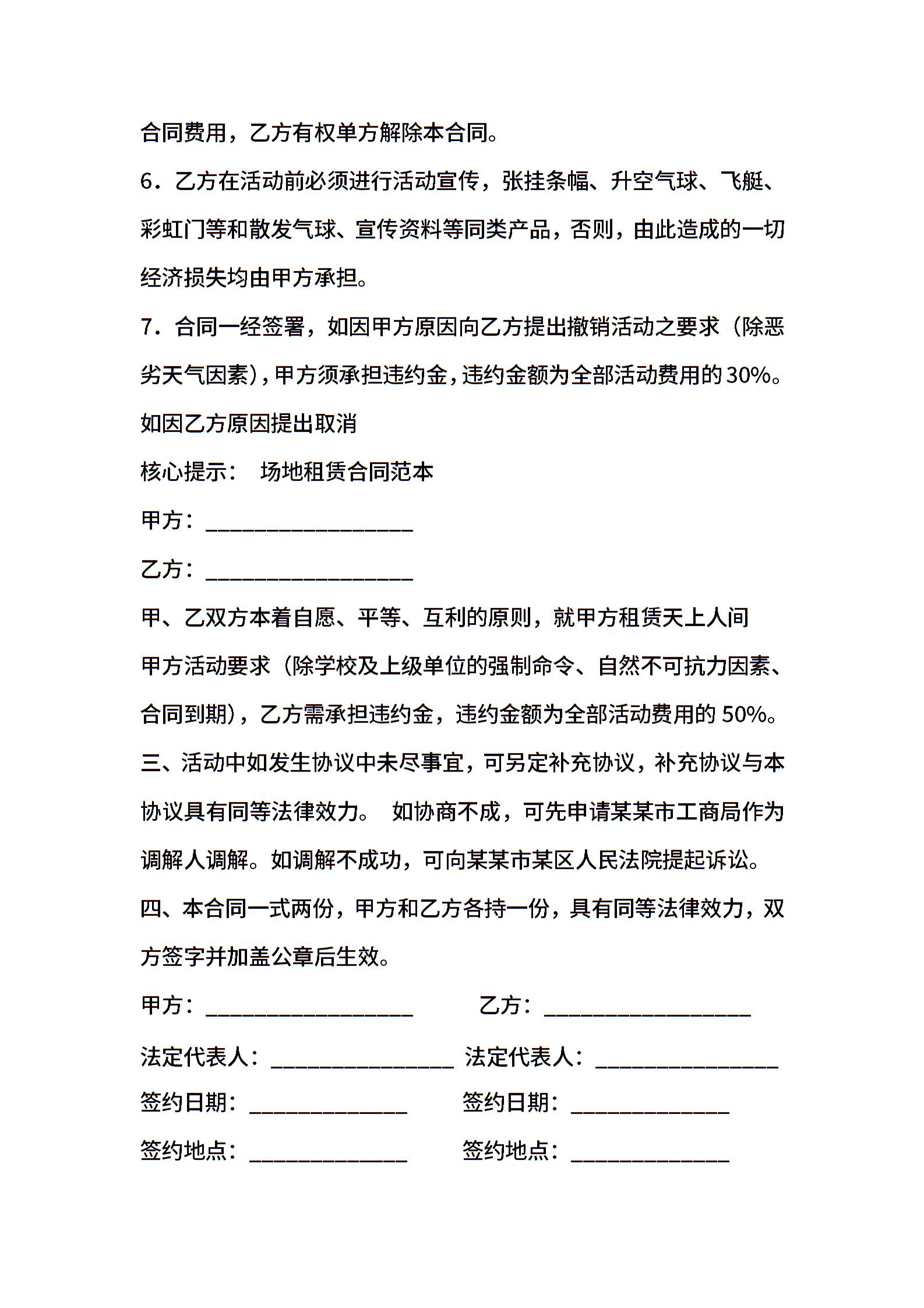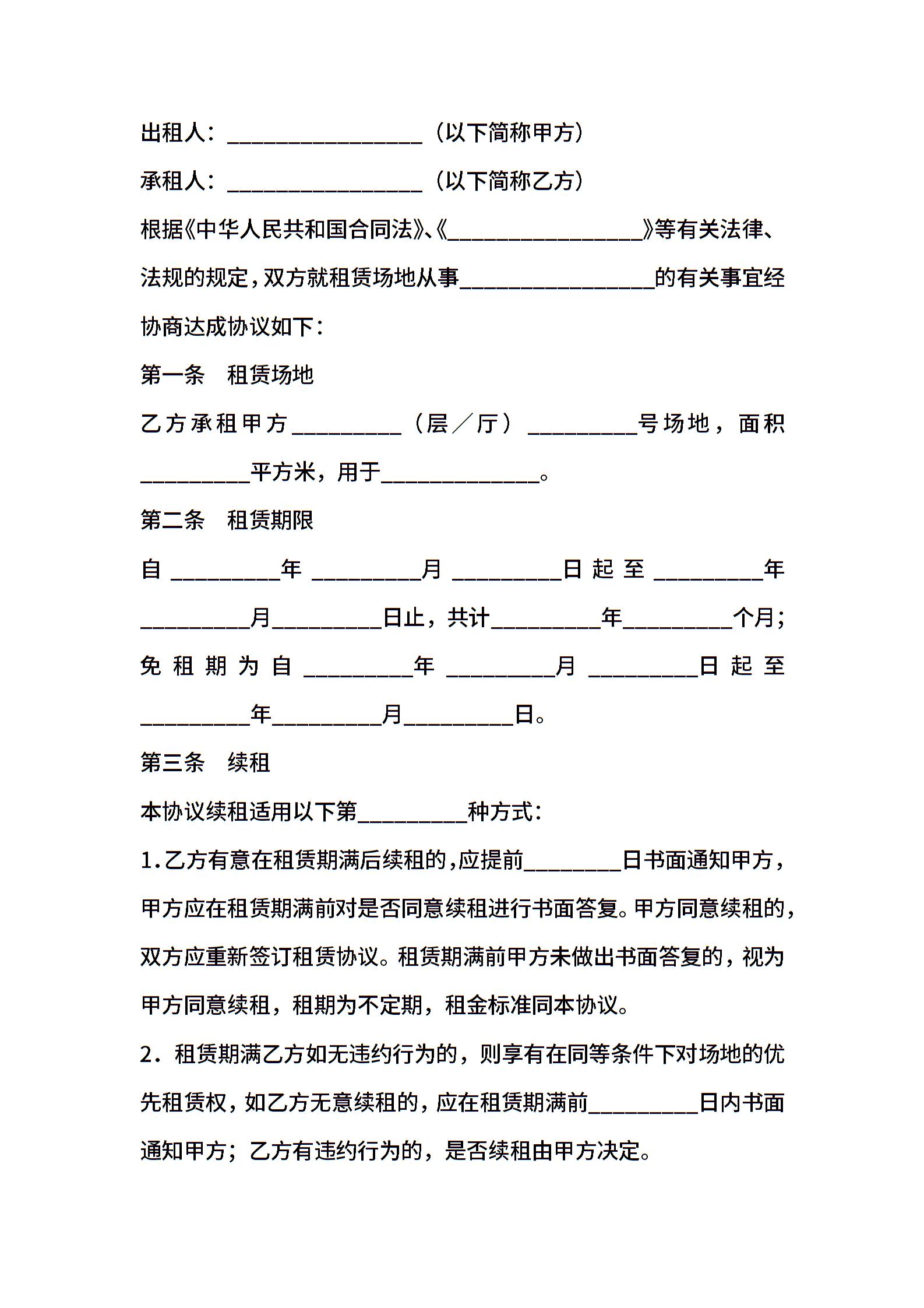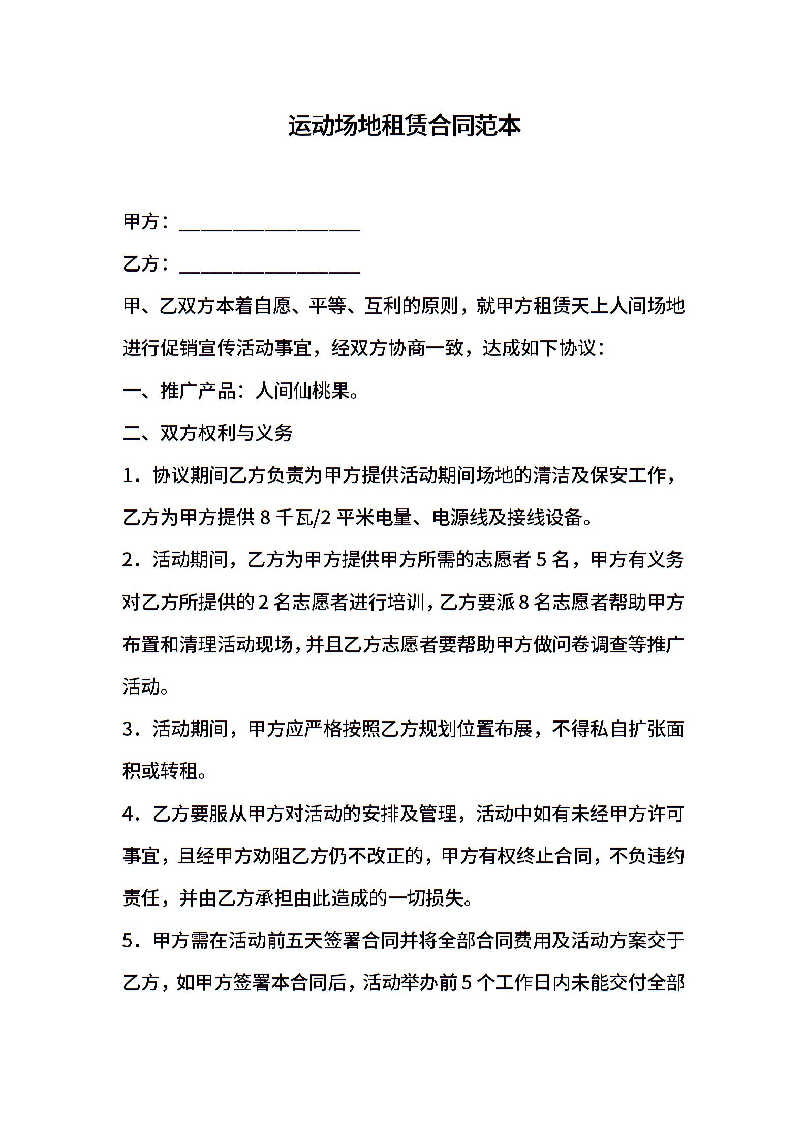 运动场地租赁合同范本