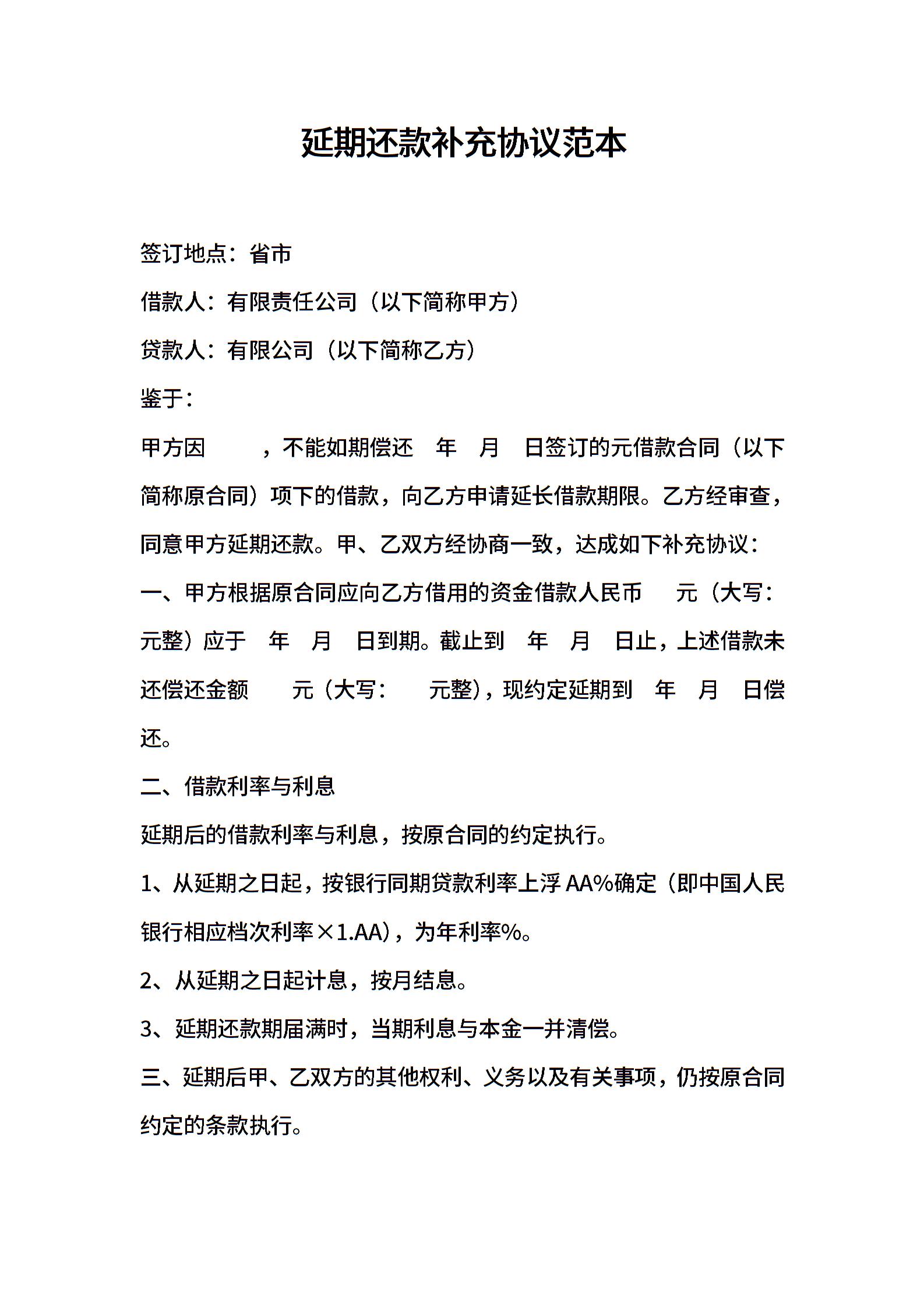 延期还款补充协议范本