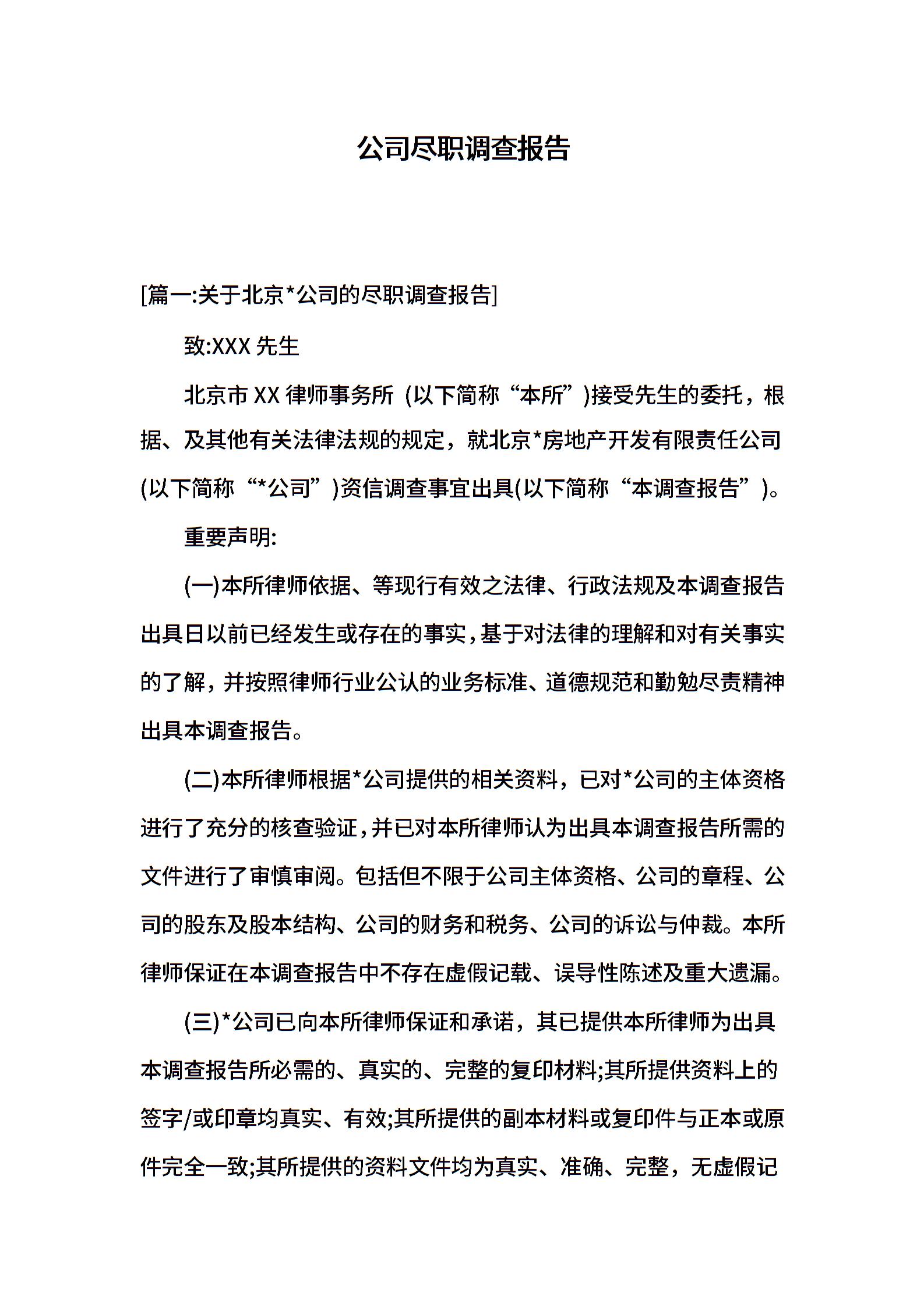 公司尽职调查报告