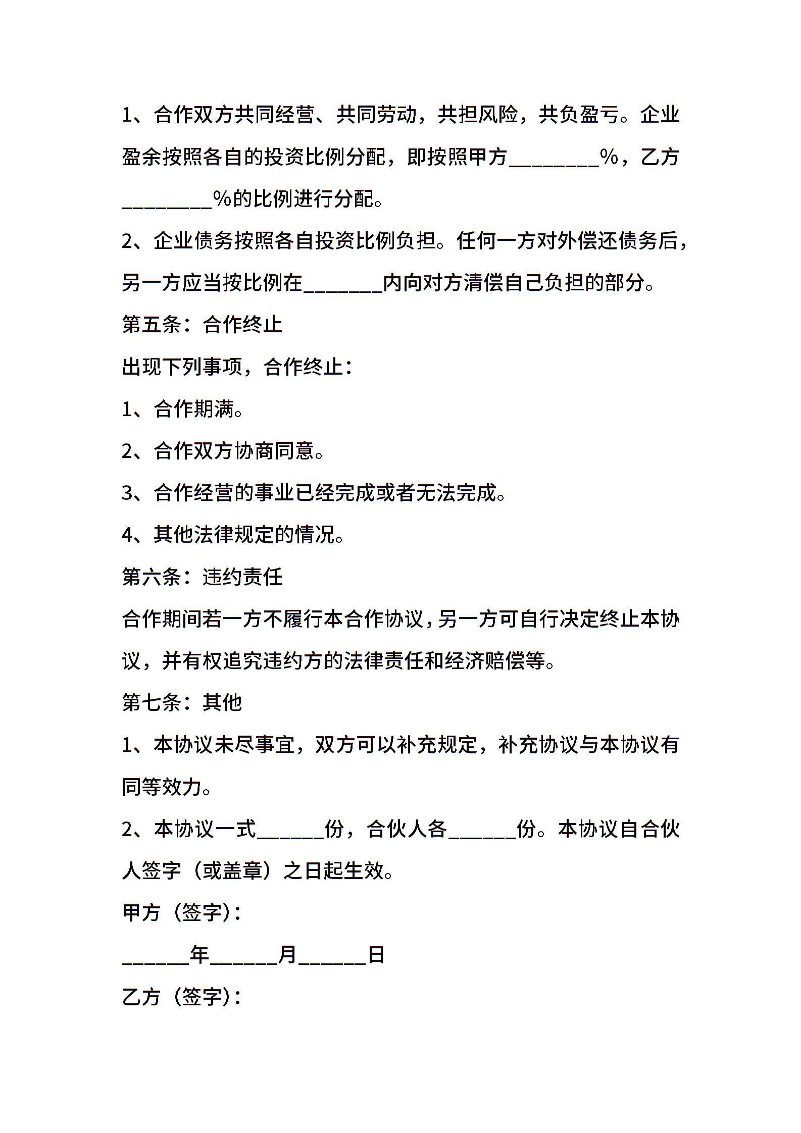 当前位置:量子办公 > 合同模板 > 合作合同 >