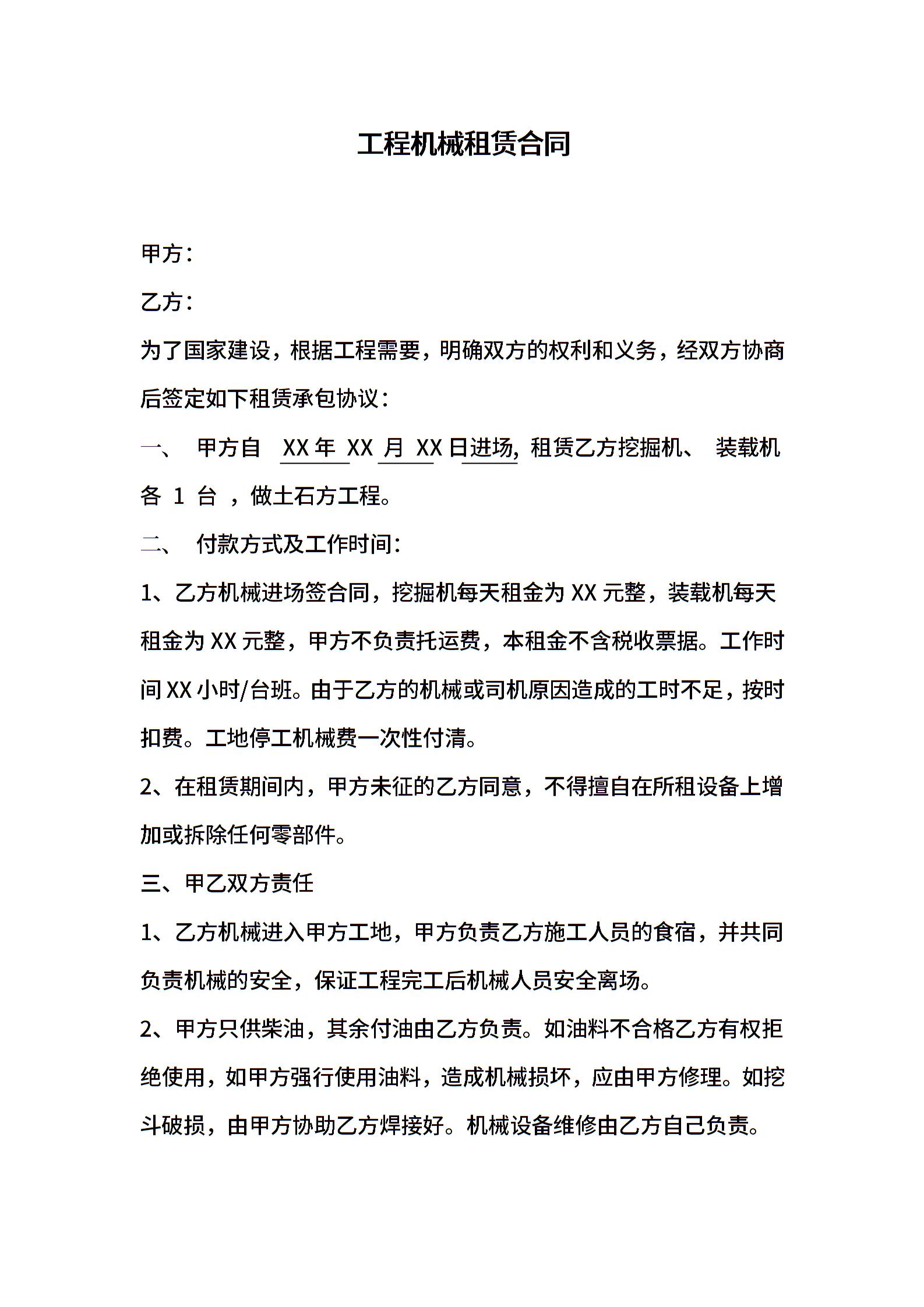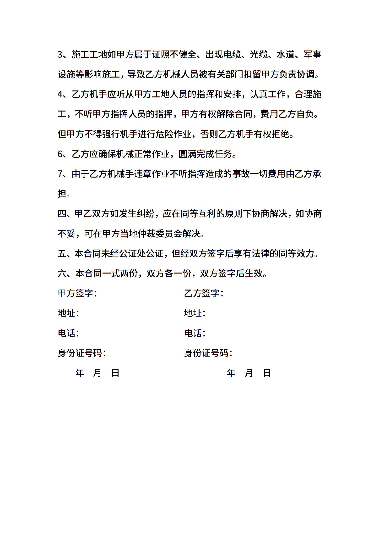 工程机械租赁合同书-挖掘机