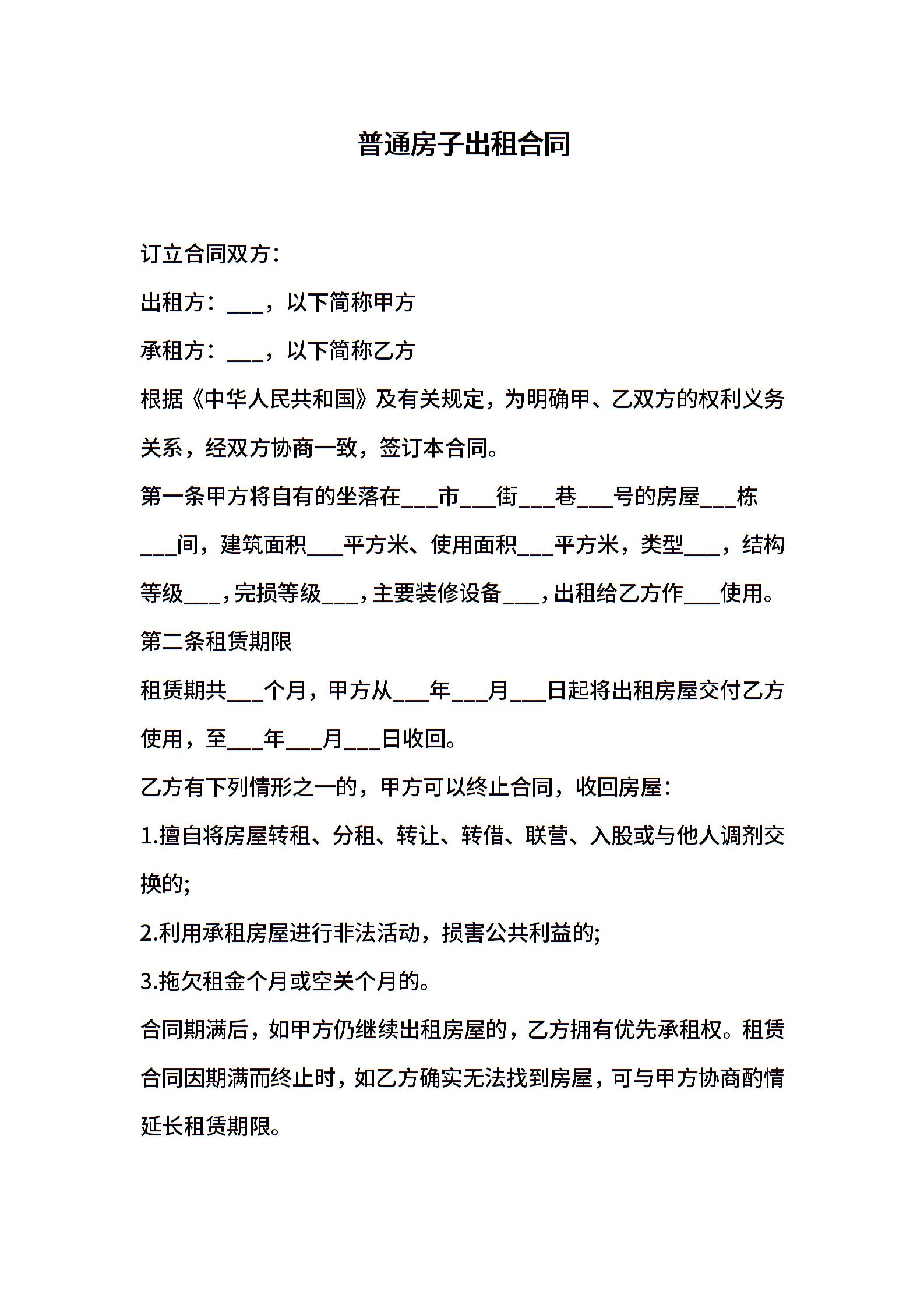 普通房子出租合同