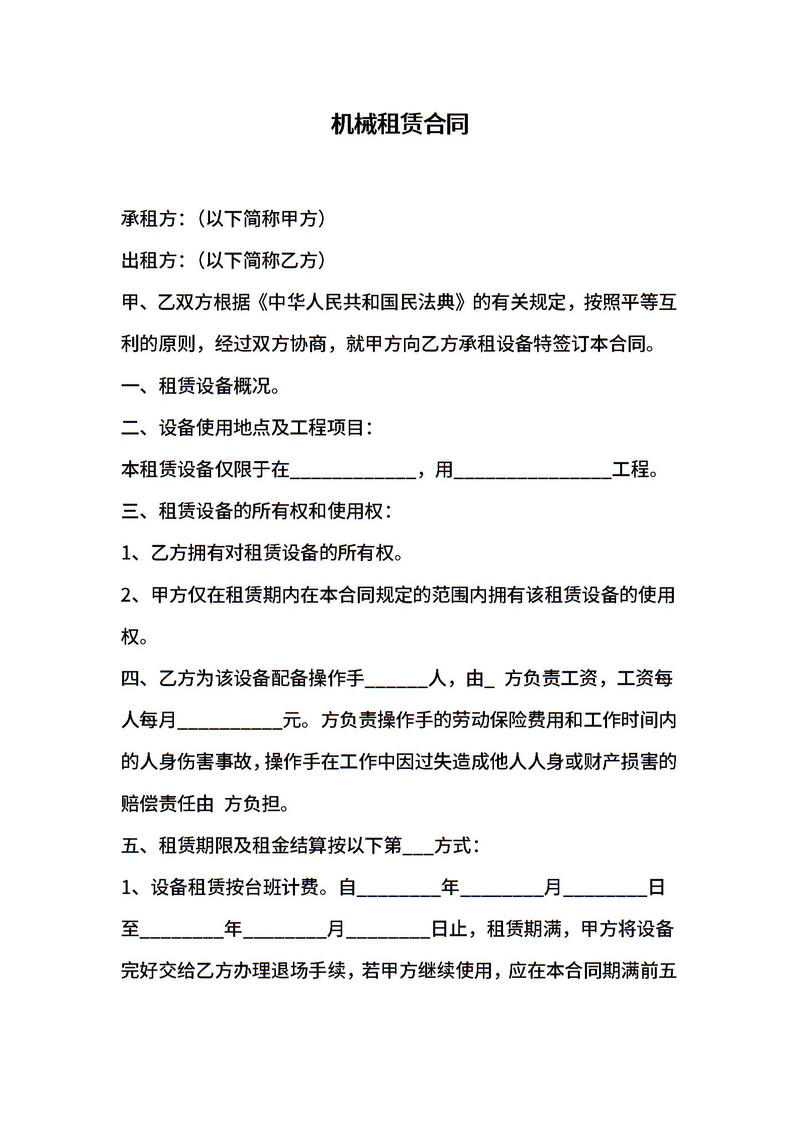 机械租赁合同 (2)