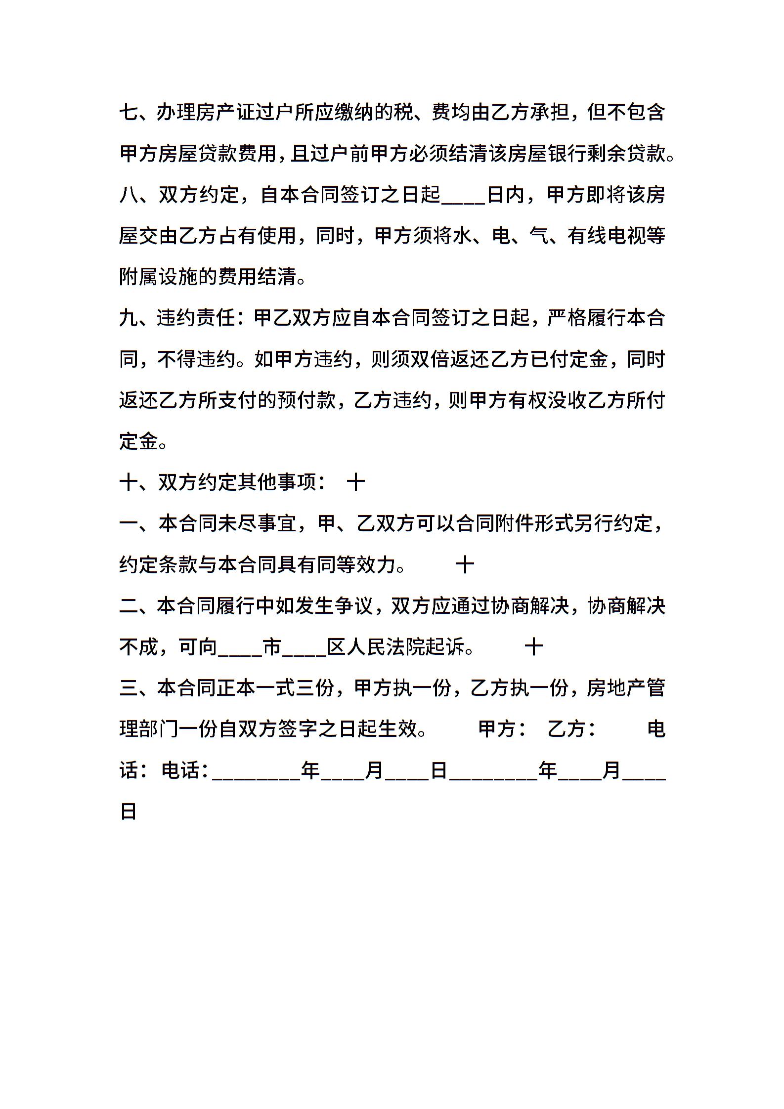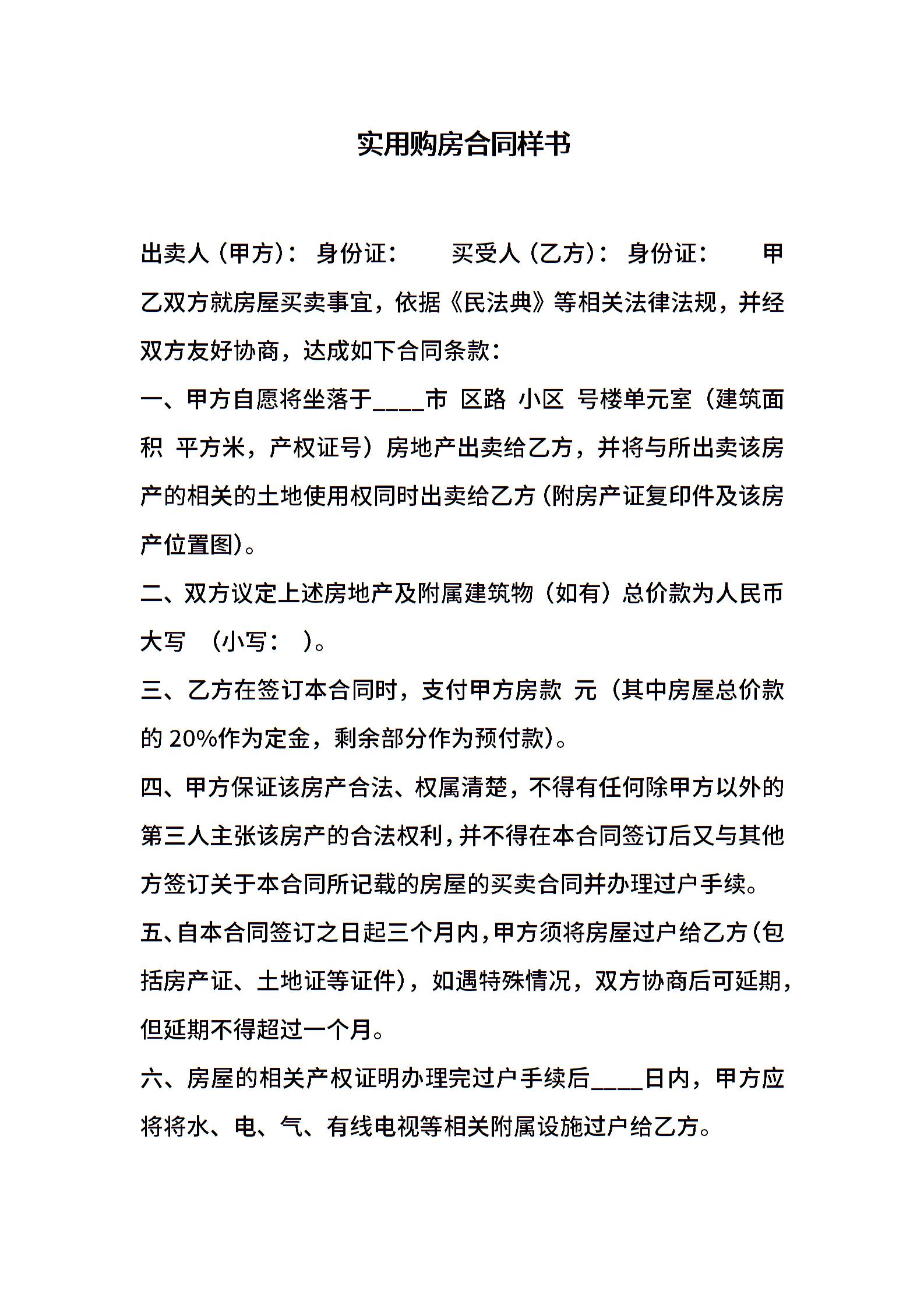 实用购房合同样书