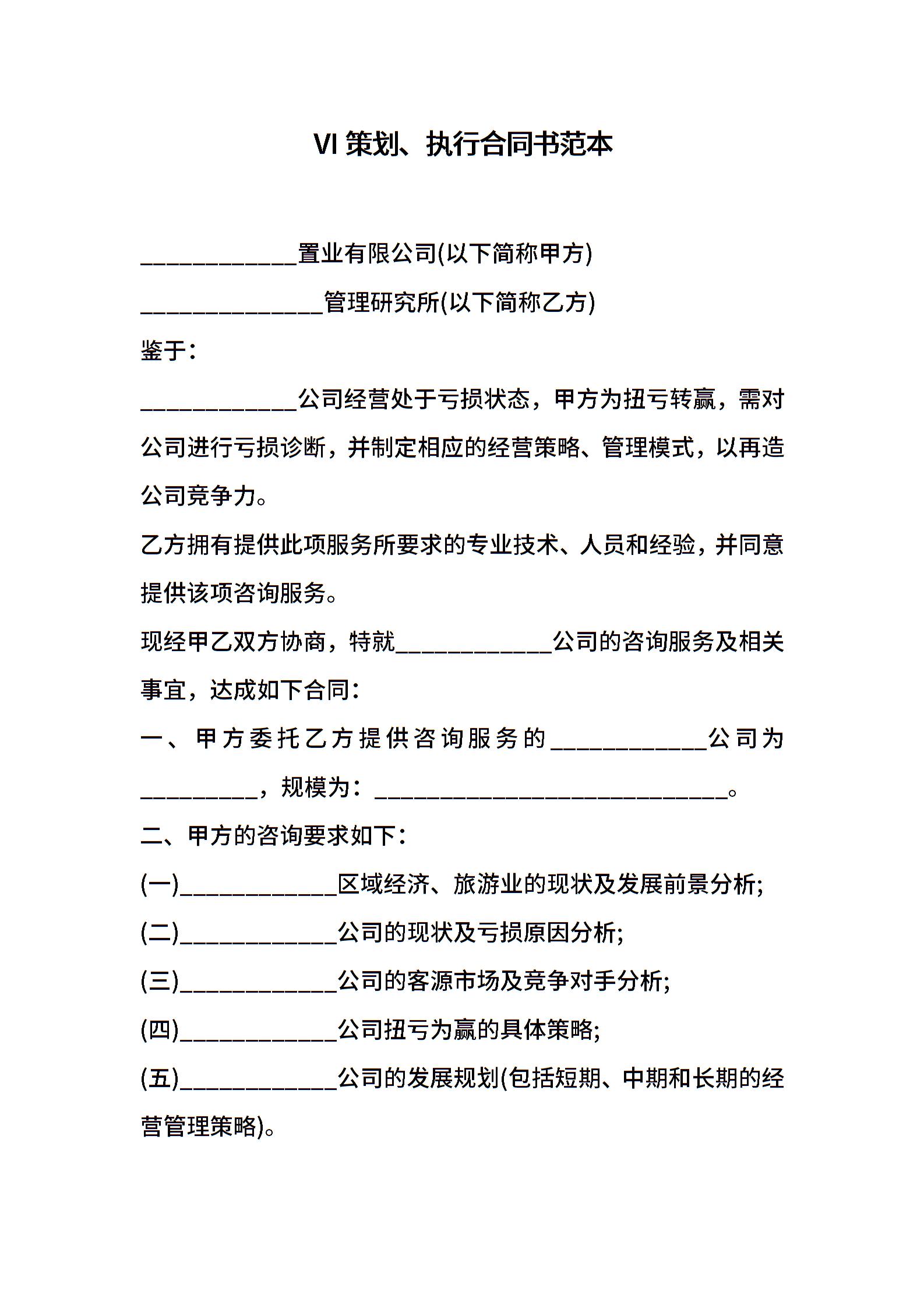 VI策划、执行合同书范本