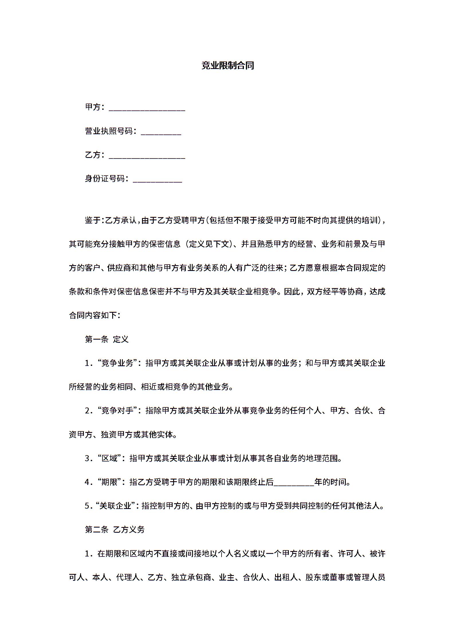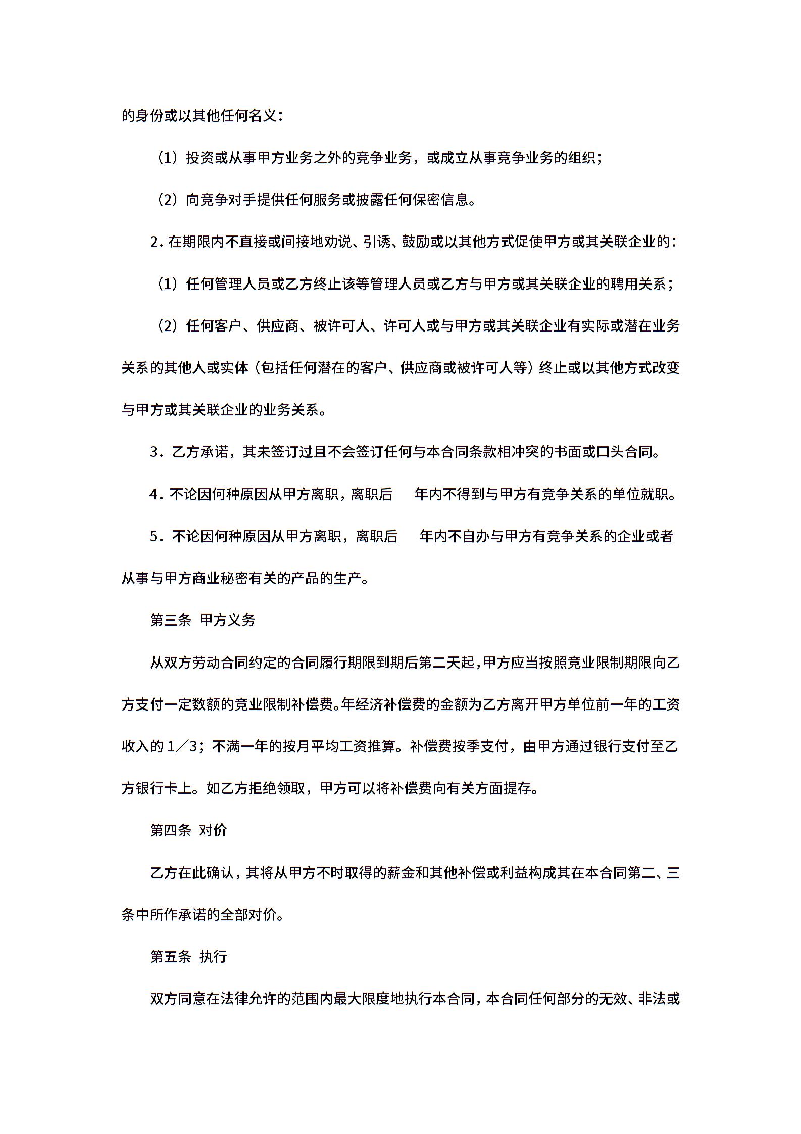 07商业秘密保护与竞业限制管理12竞业限制合同-模板2.doc