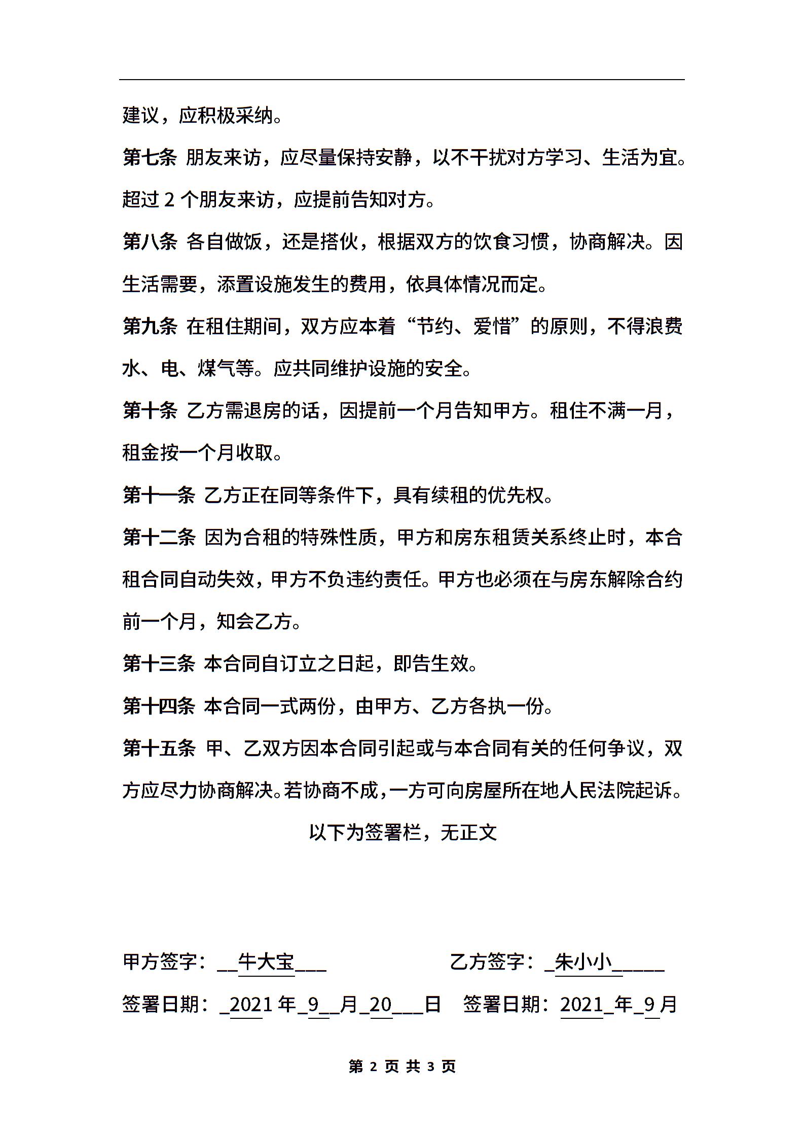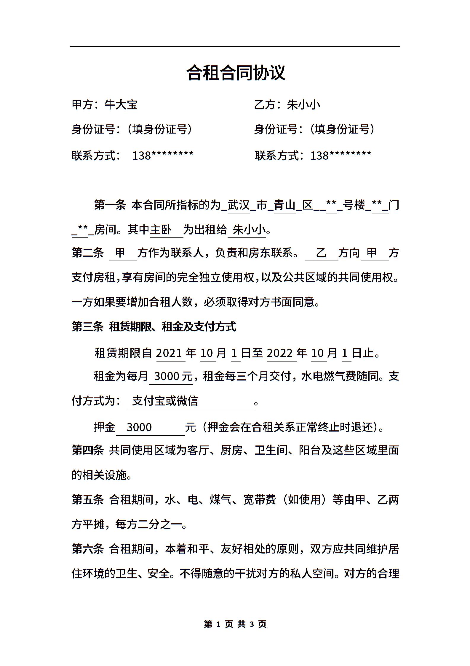 合租合同协议