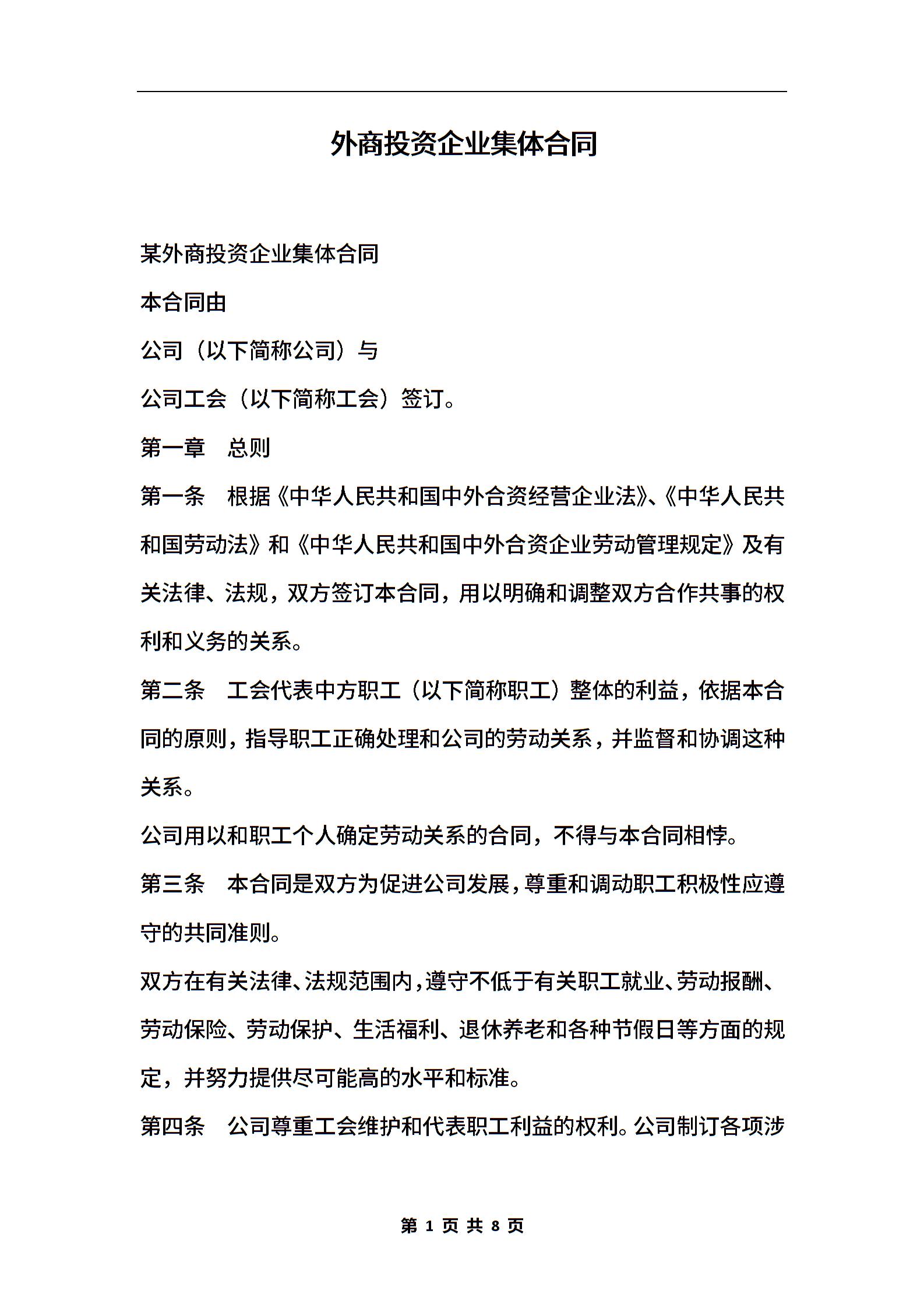 外商投资企业集体合同