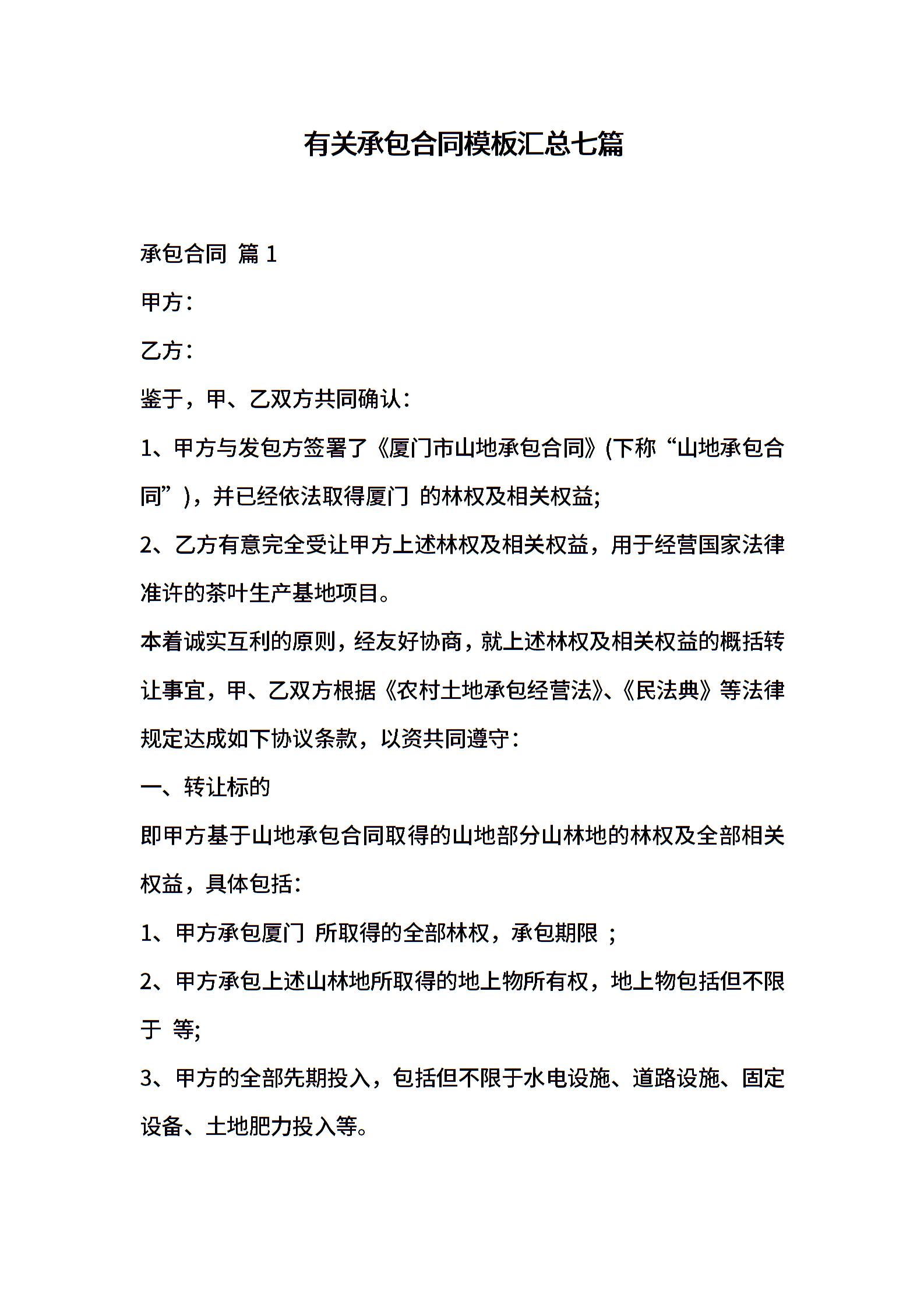 有关承包合同模板汇总七篇