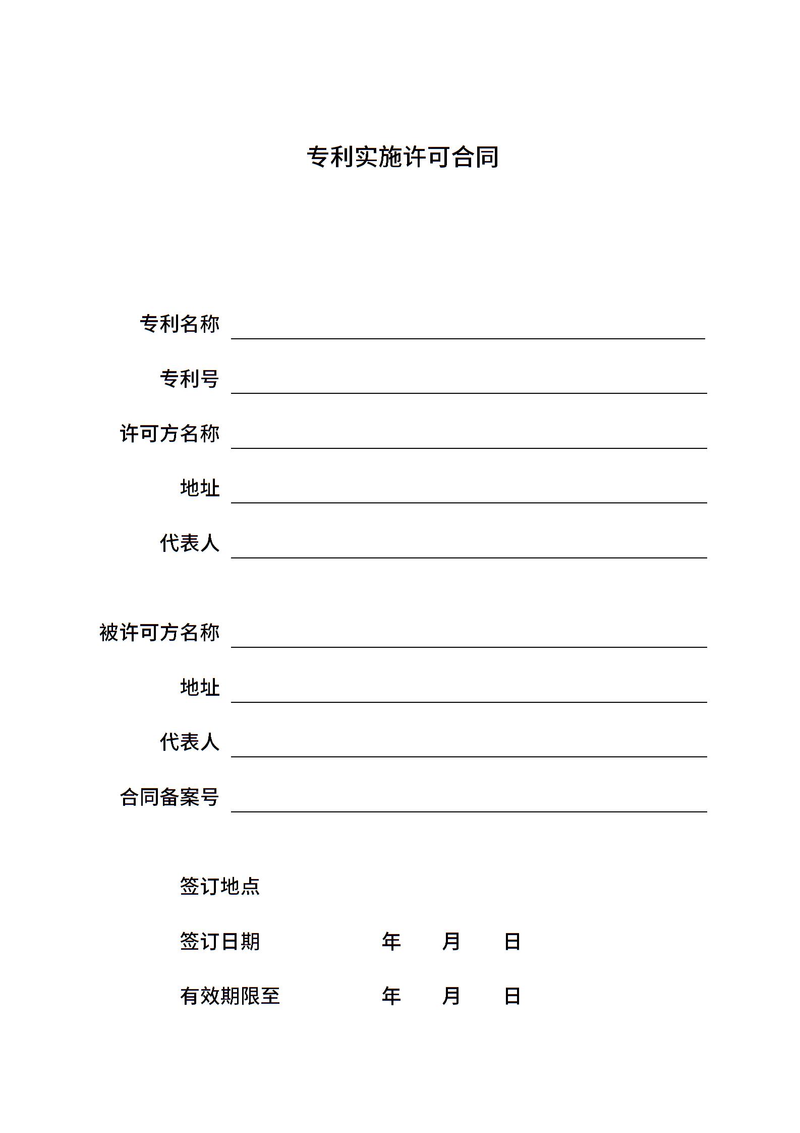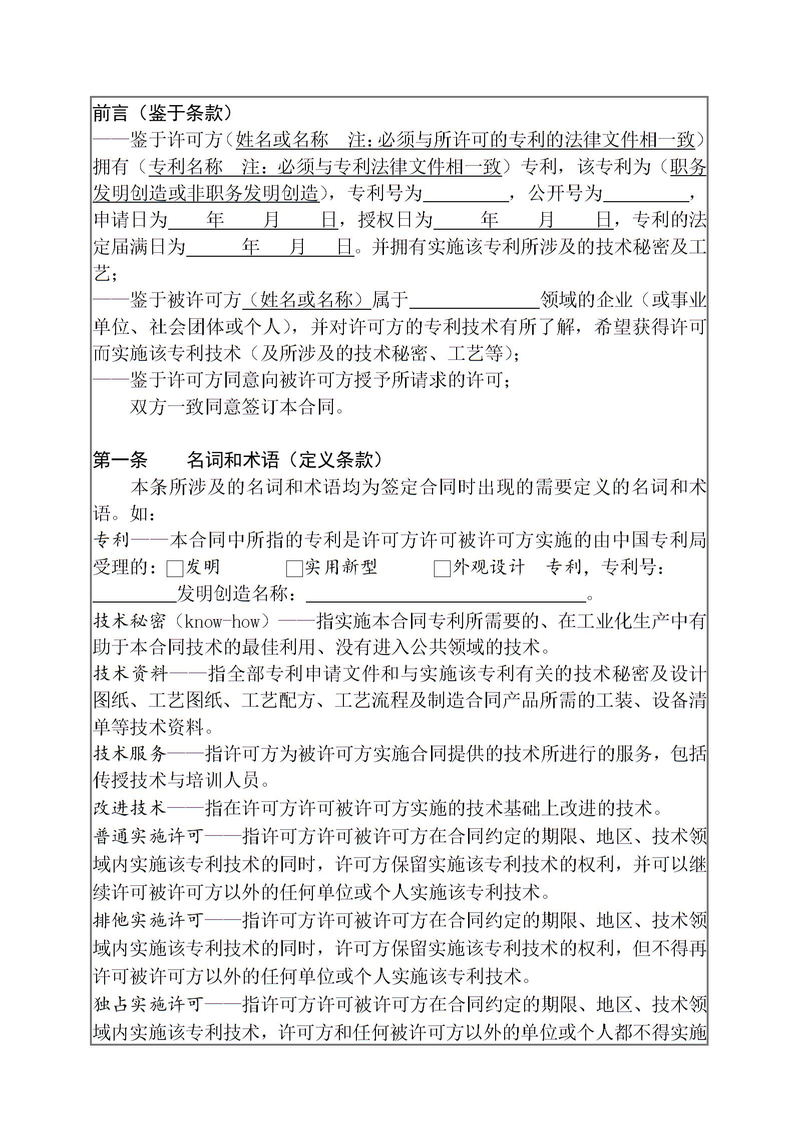 2011年最新【各种合同协议】(模板)全免费专利实施许可合同.doc