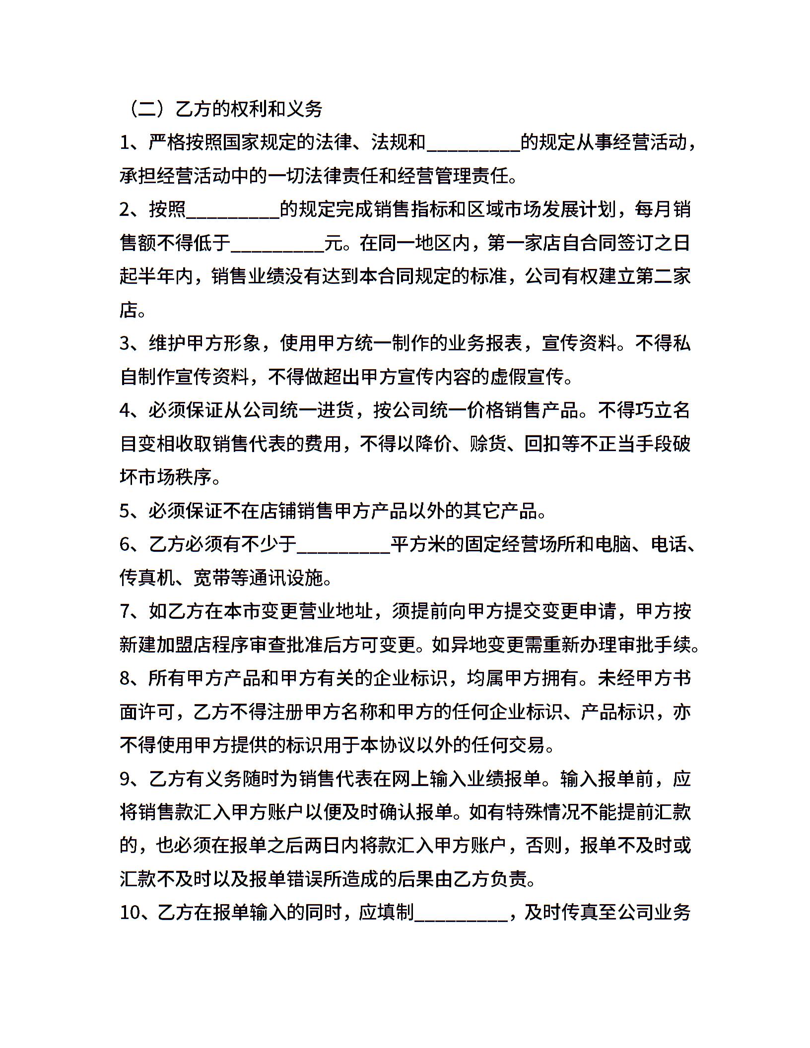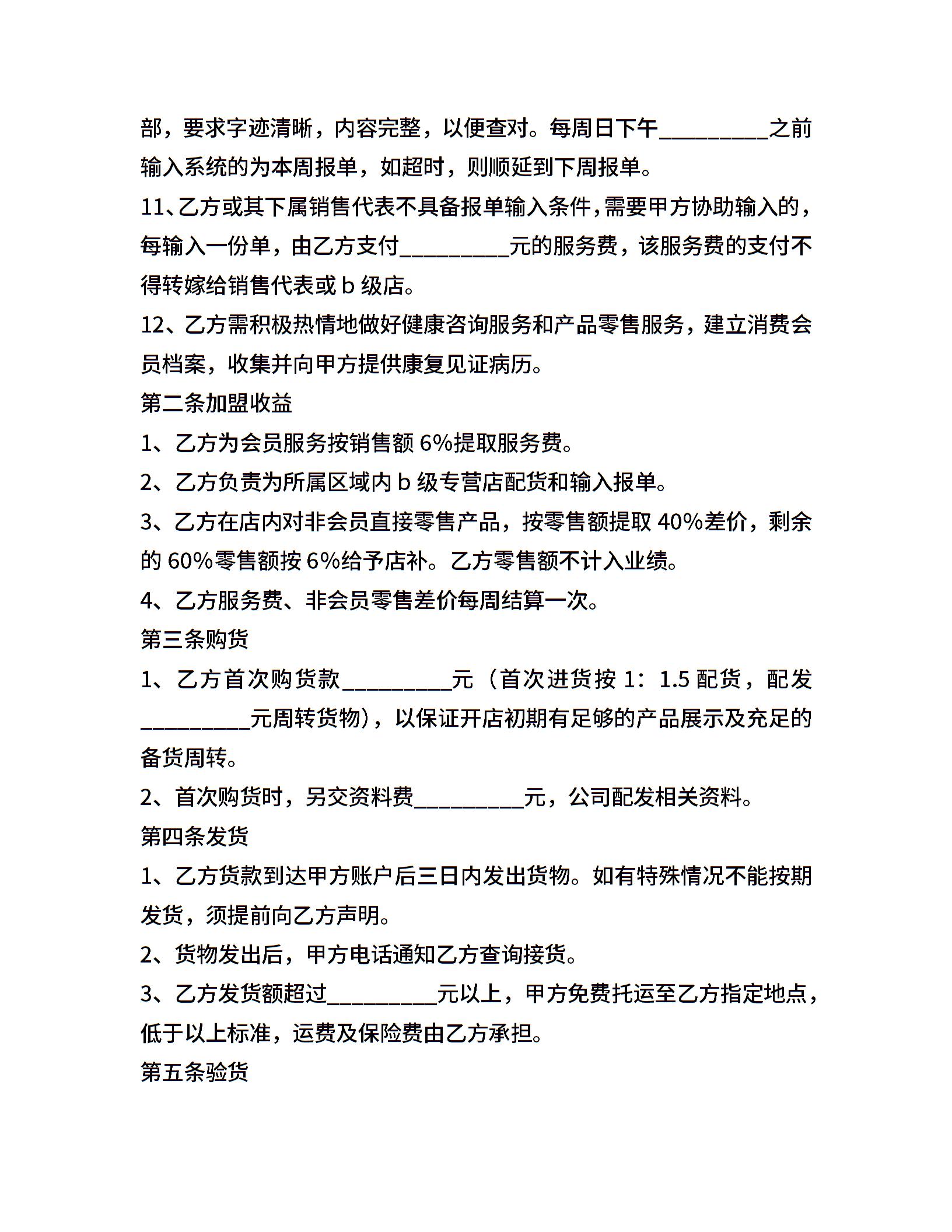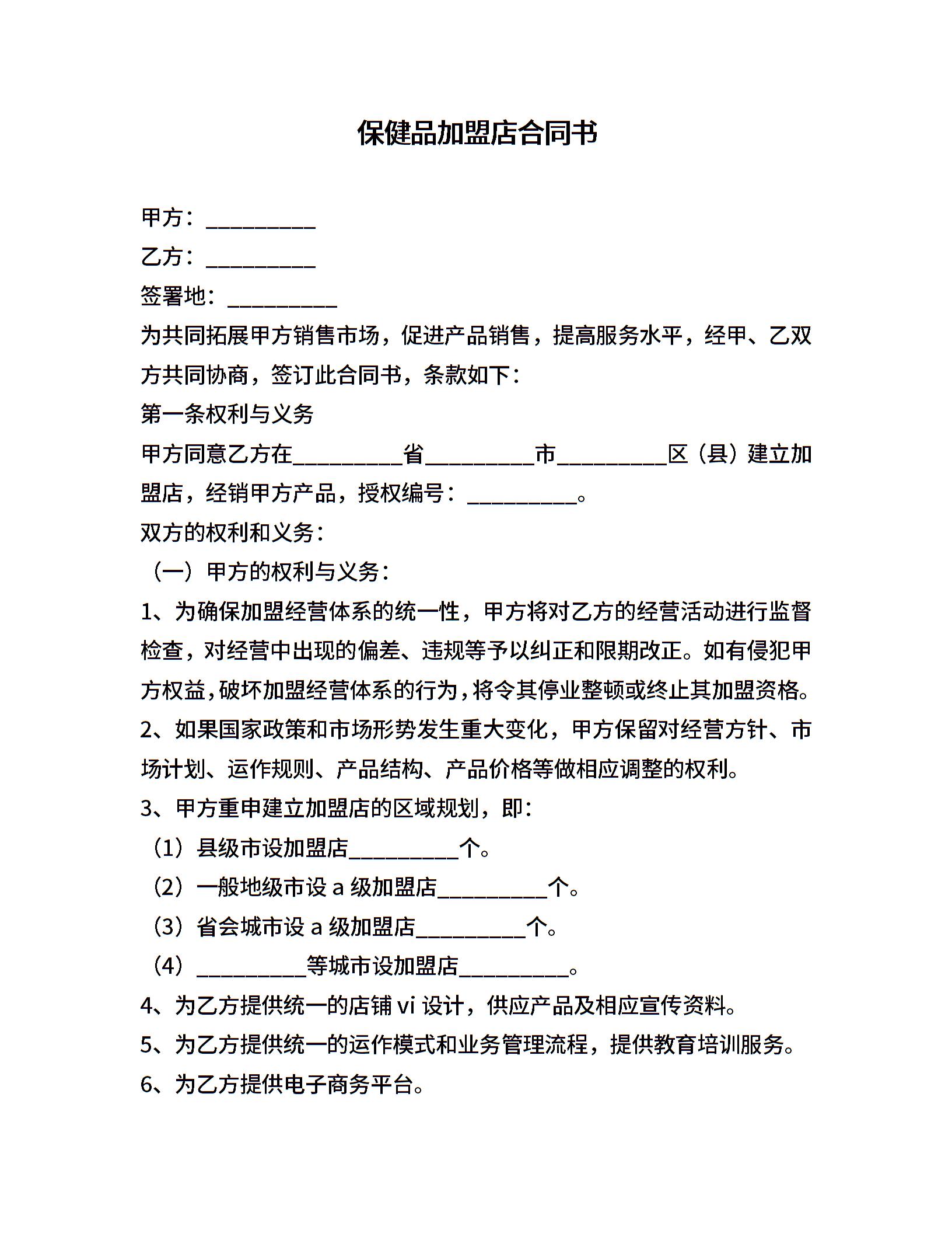 保健品加盟店合同书1