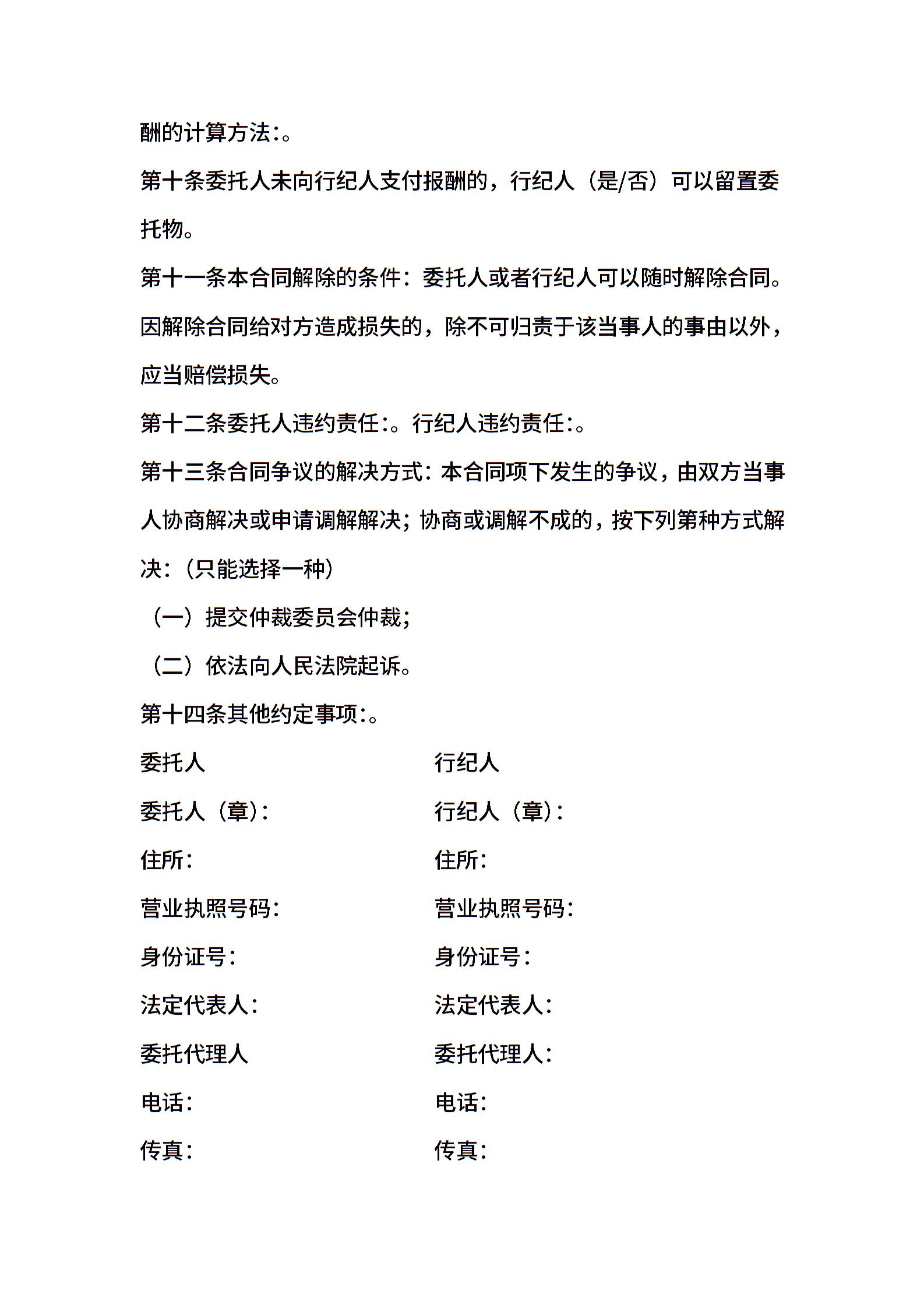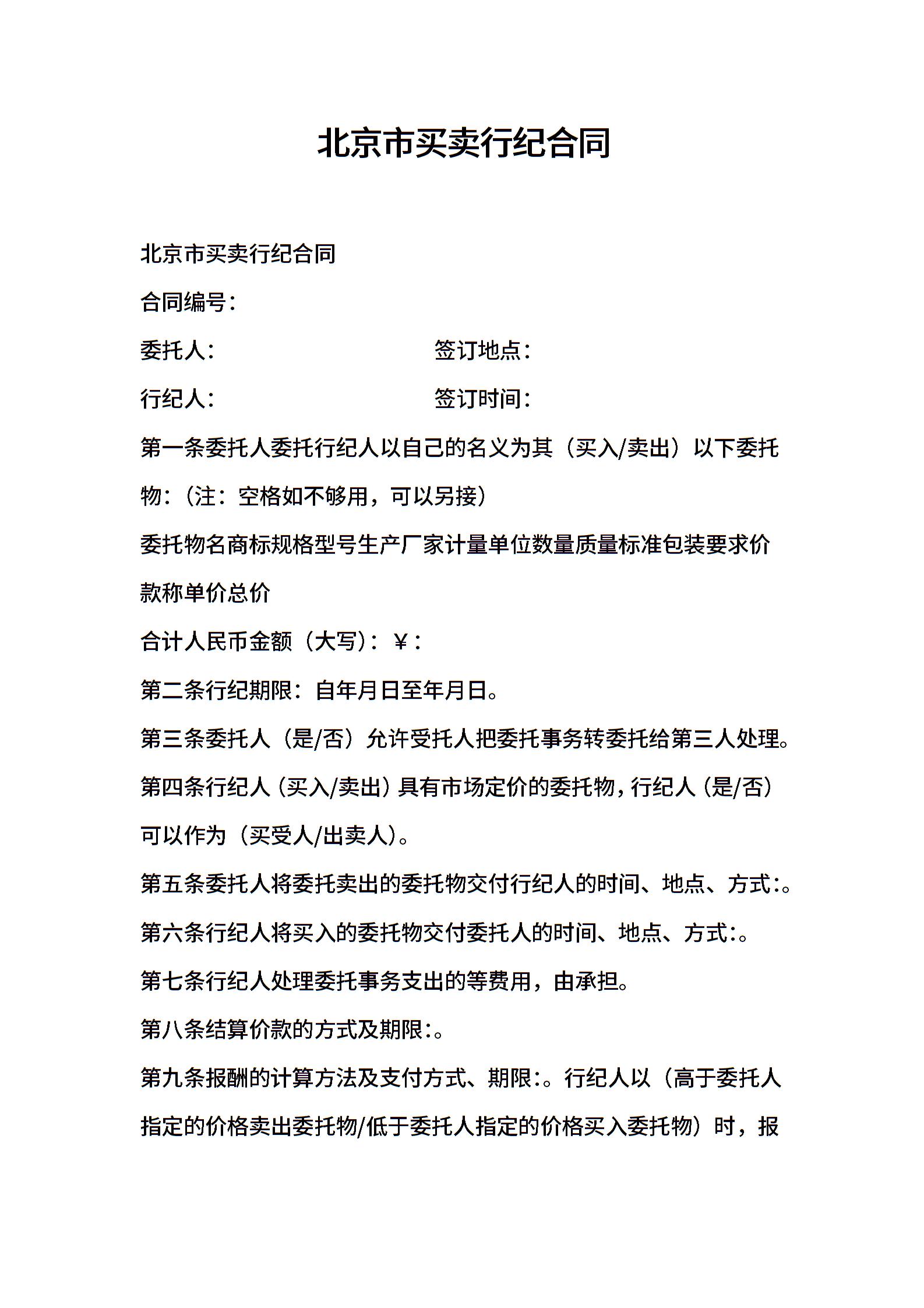 2021年北京市买卖行纪合同