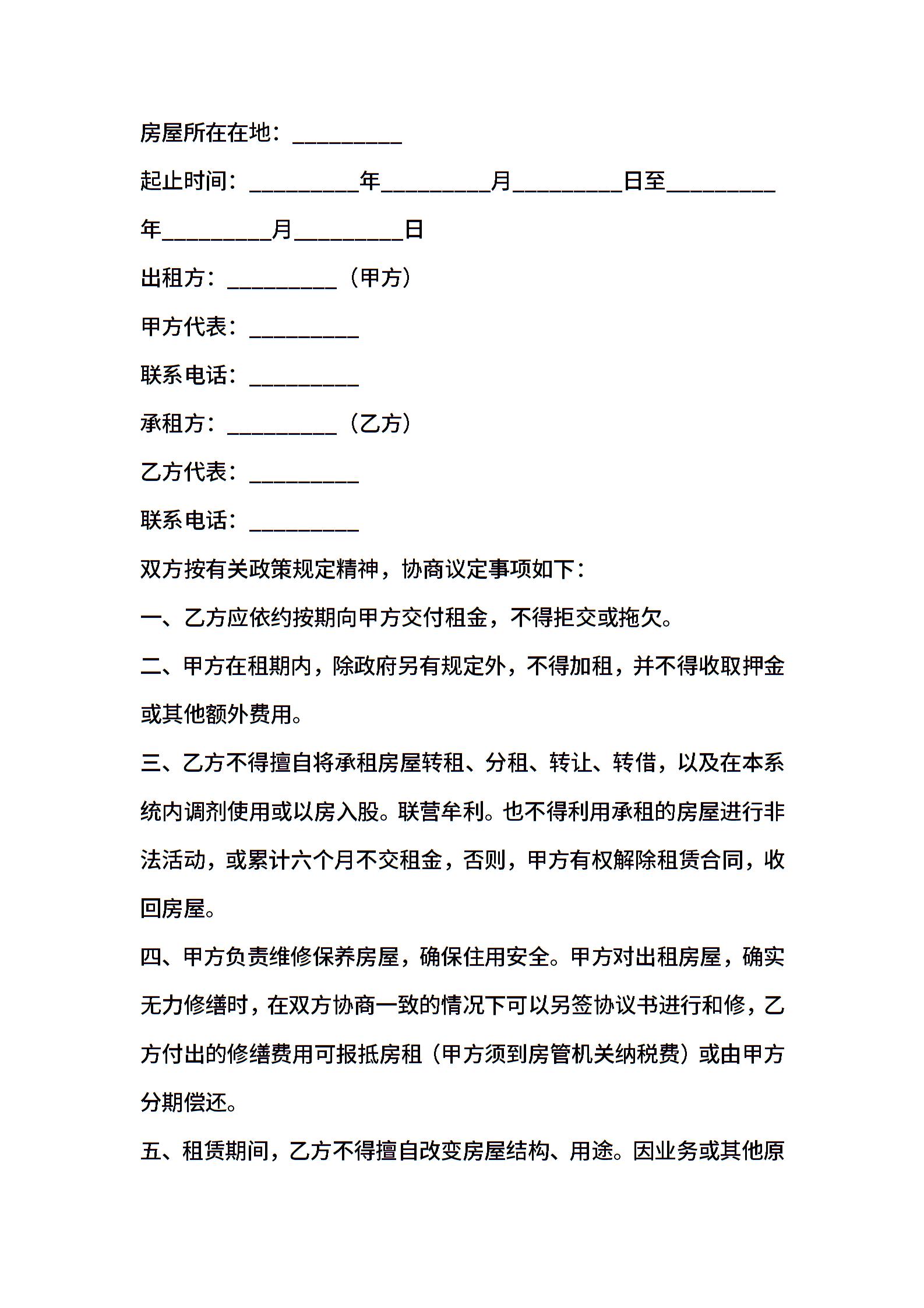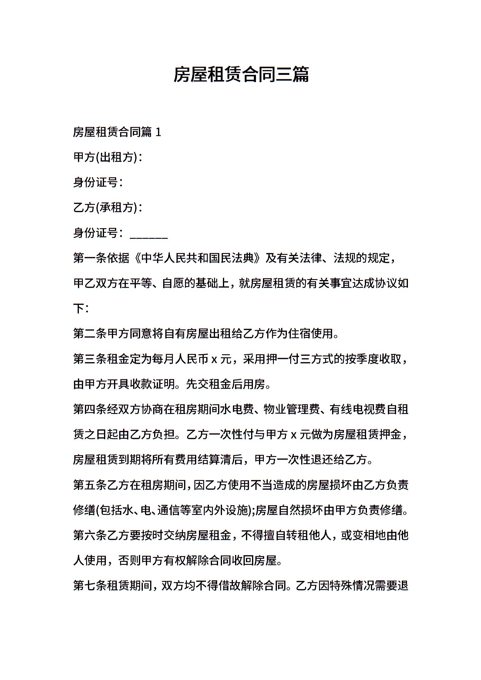 房屋租赁合同三篇