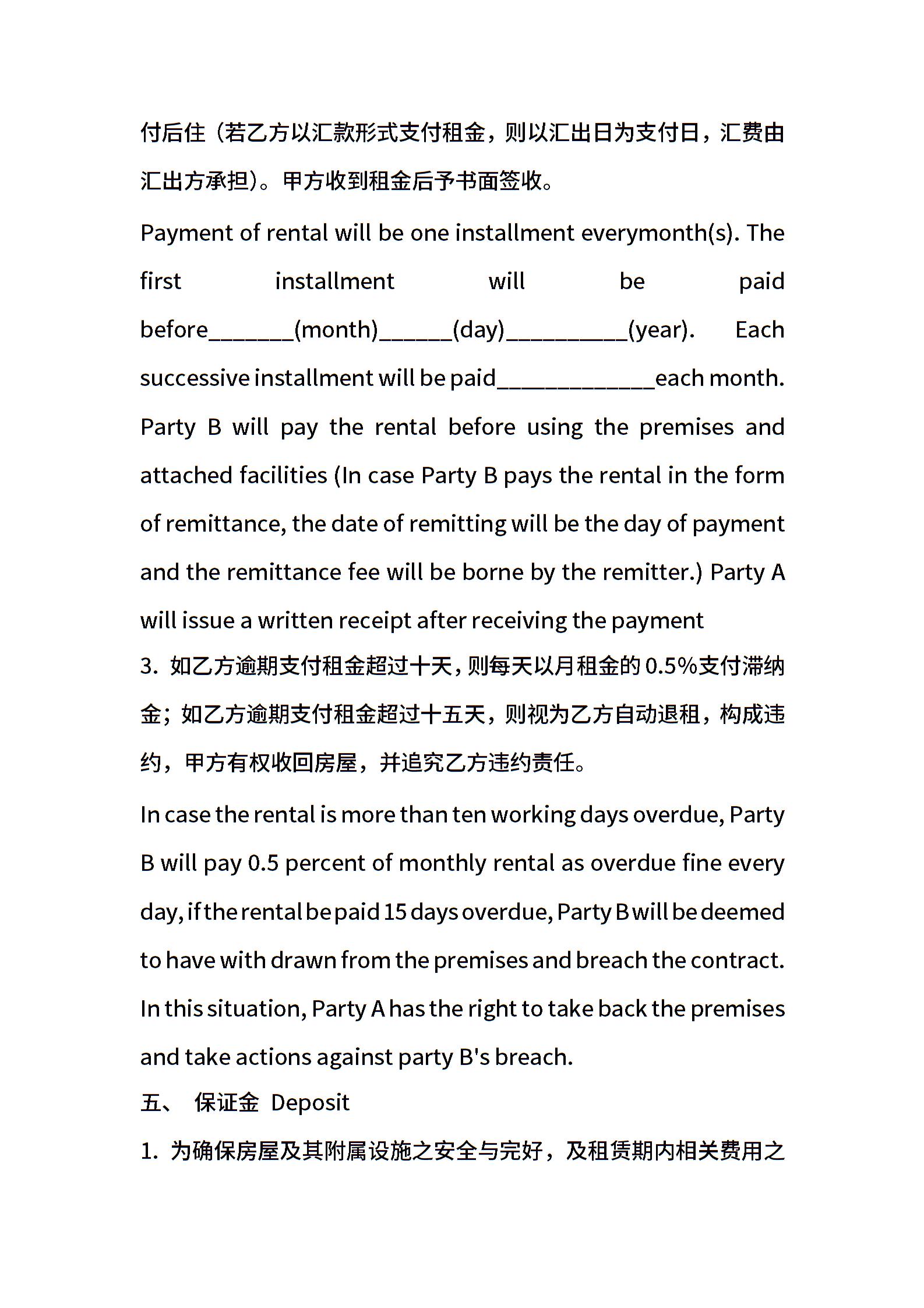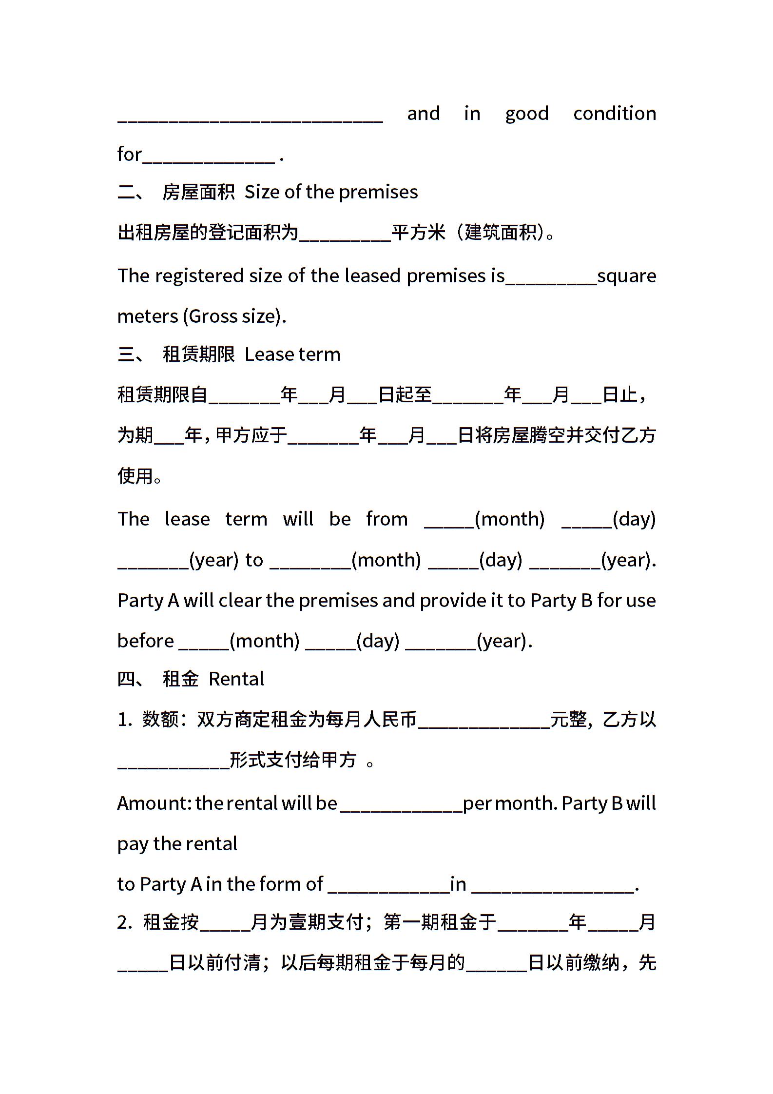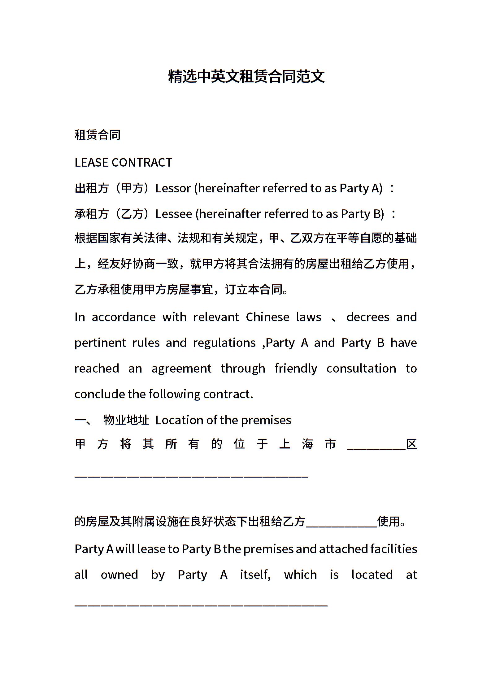 精选中英文租赁合同范文