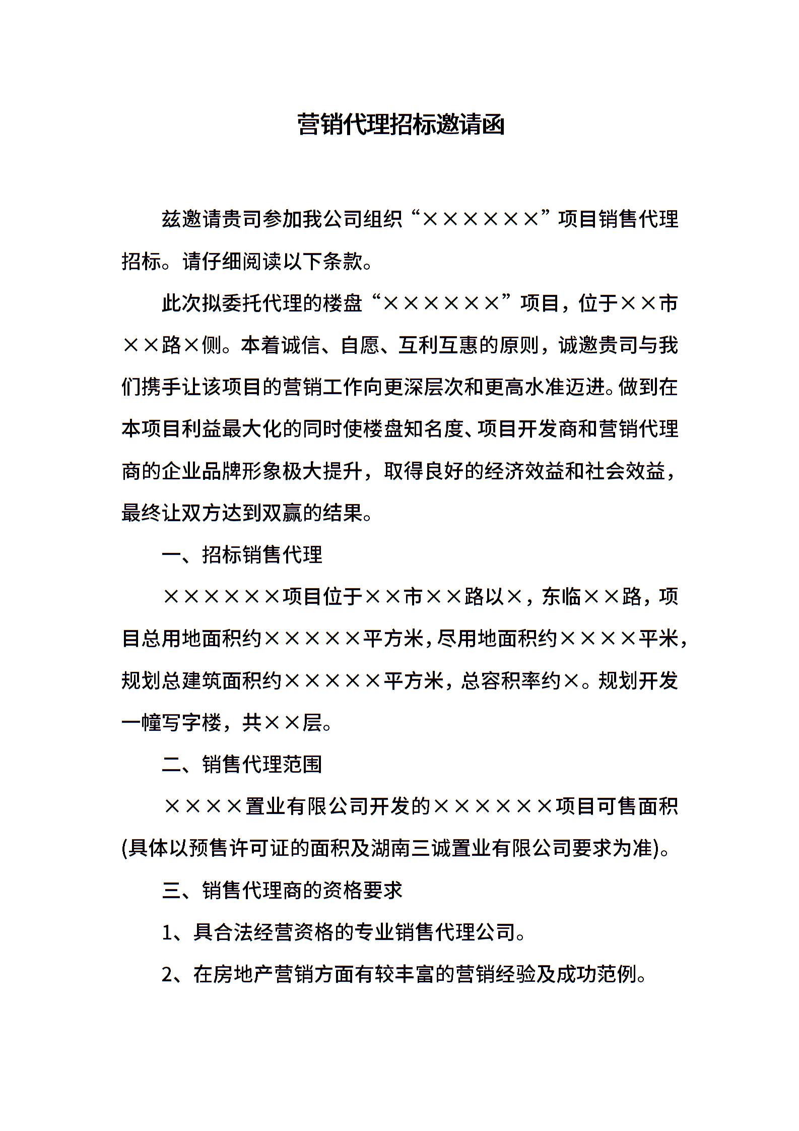 营销代理招标邀请函