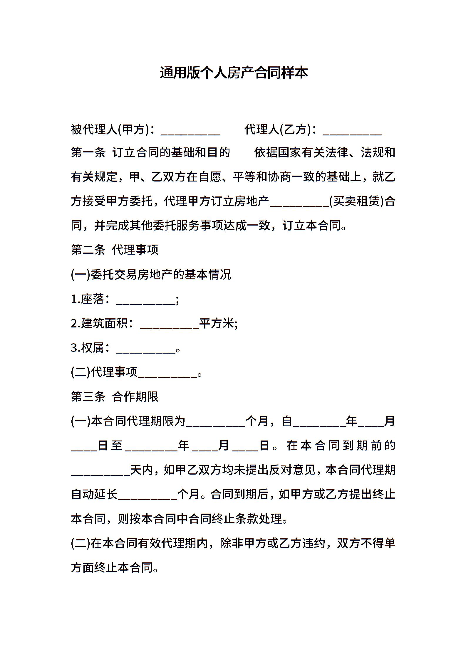 通用版个人房产合同样本
