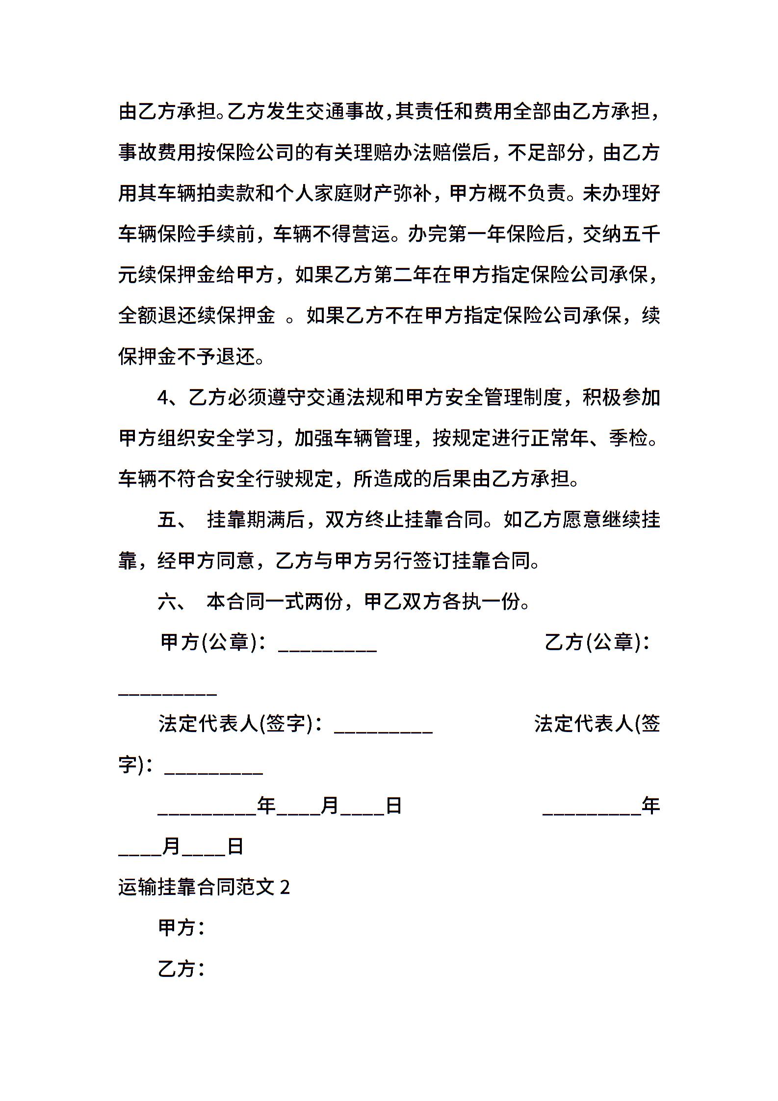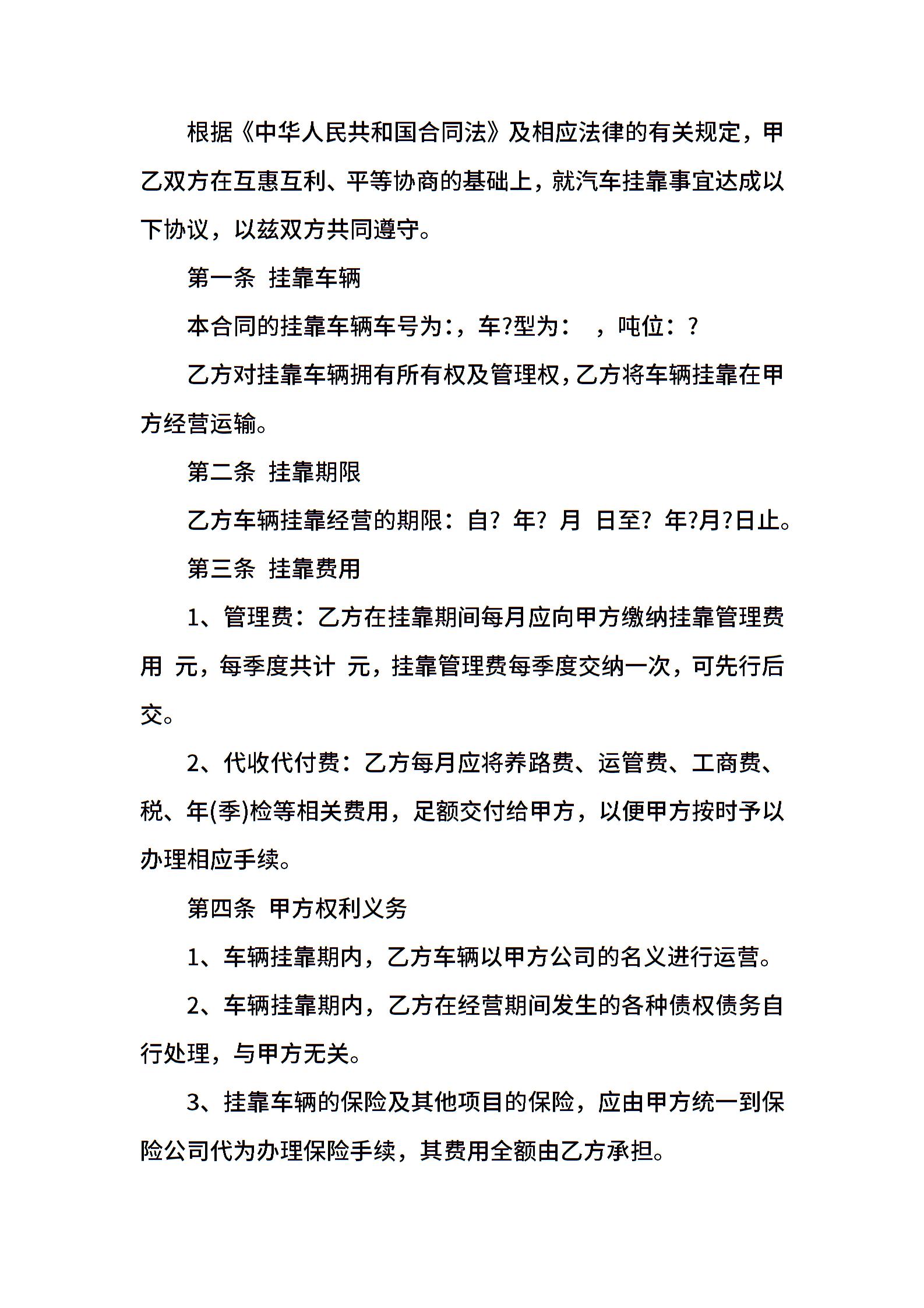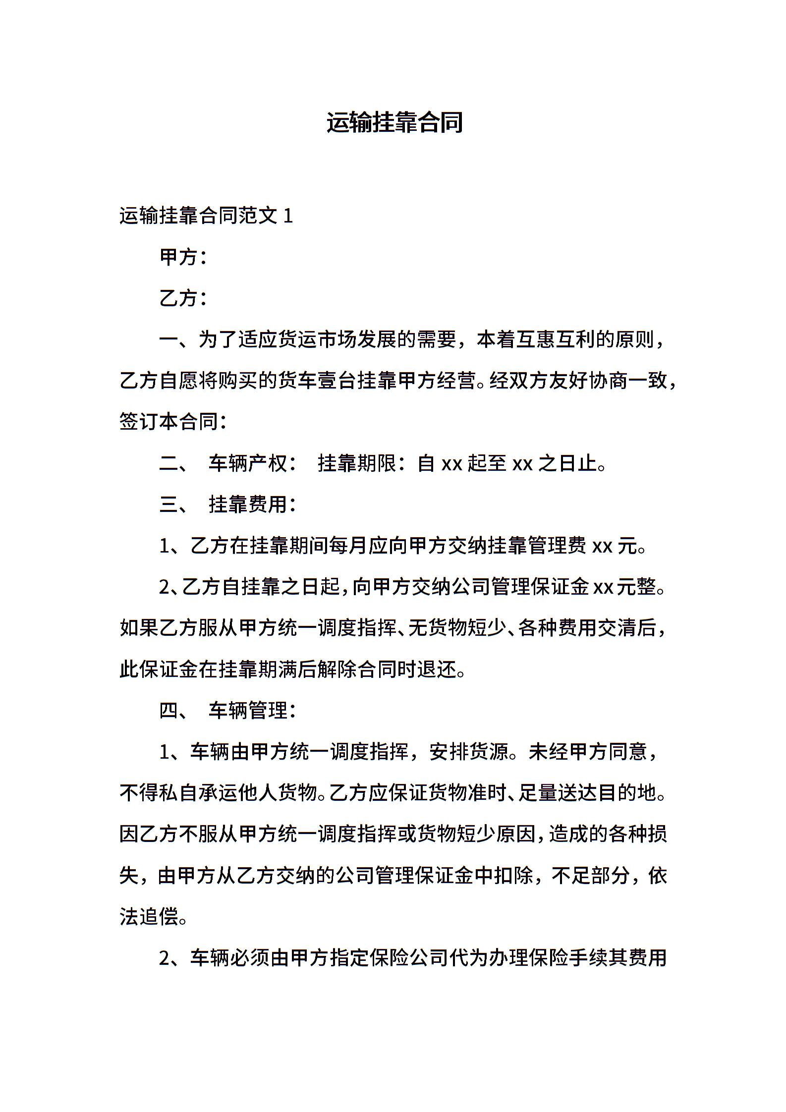运输挂靠合同