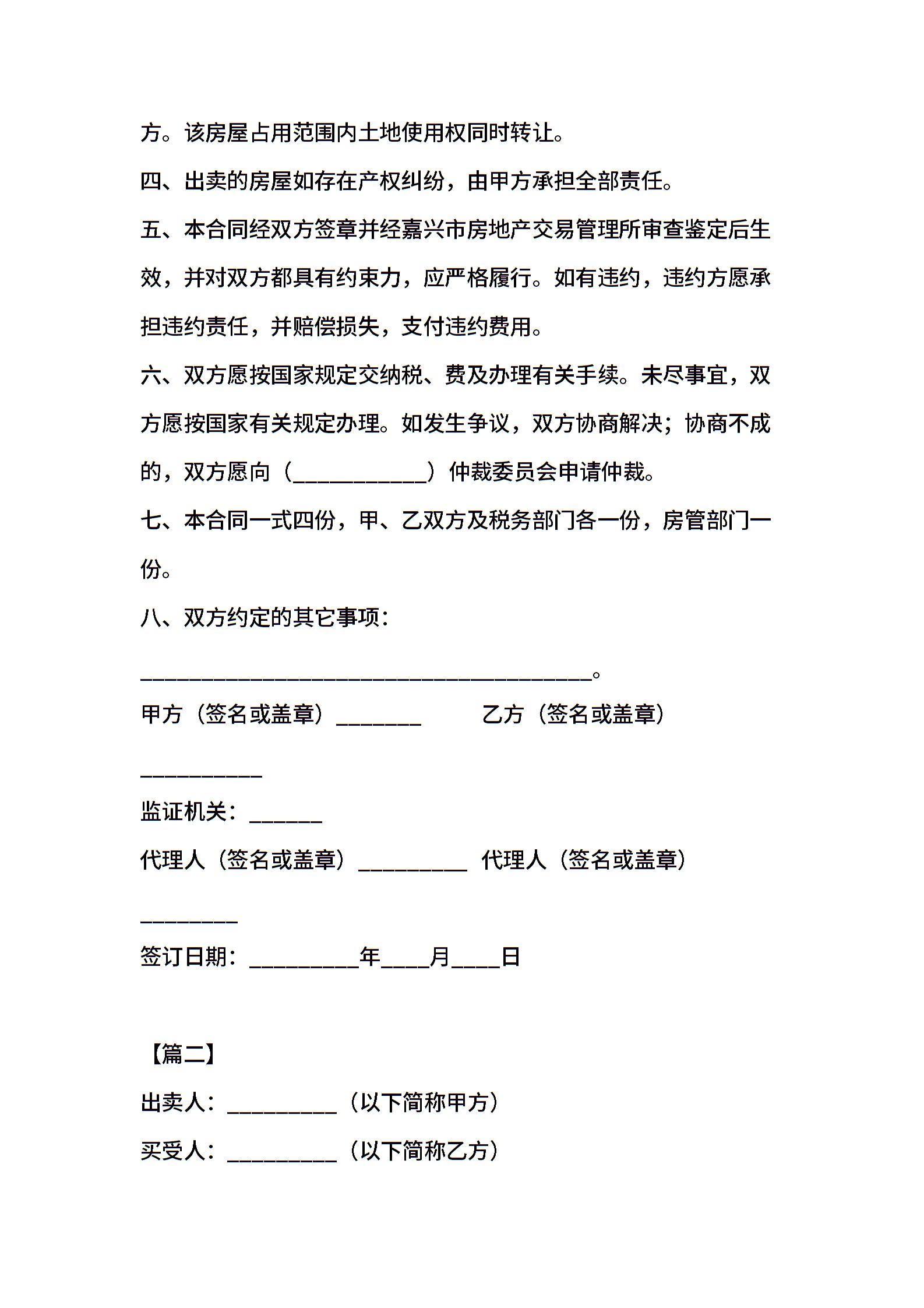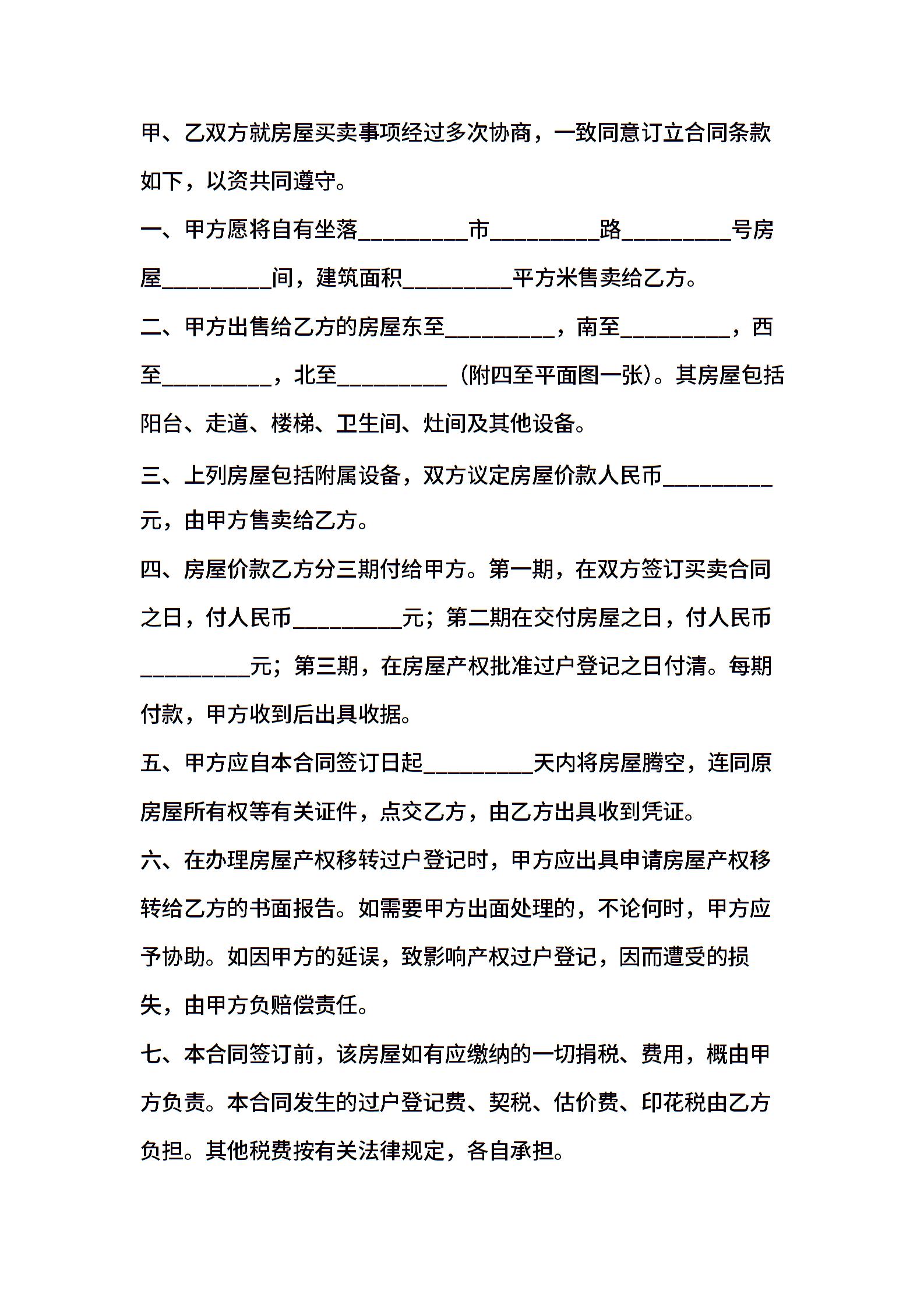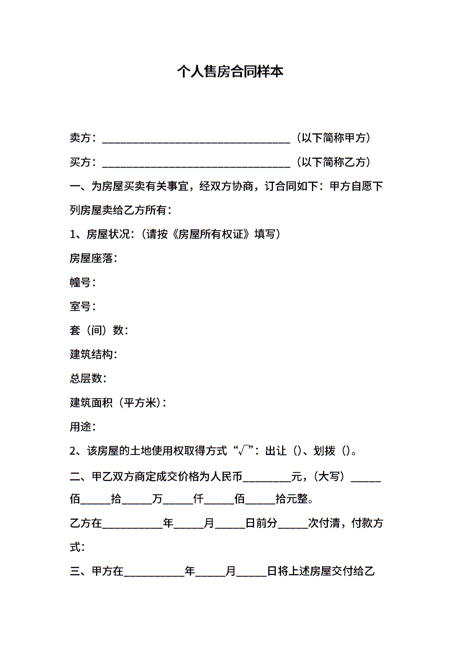 个人售房合同样本