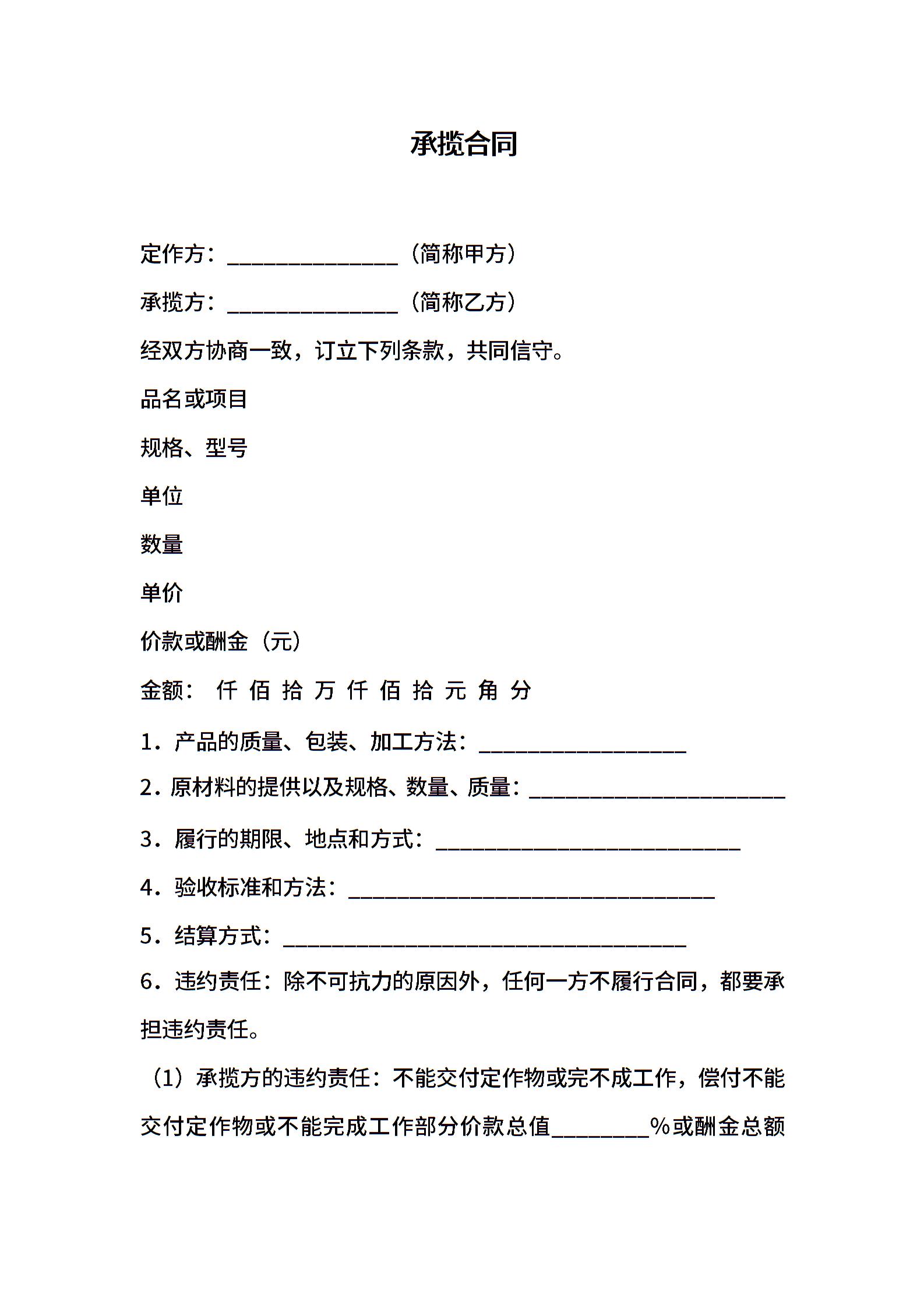 承揽合同 范本(2)
