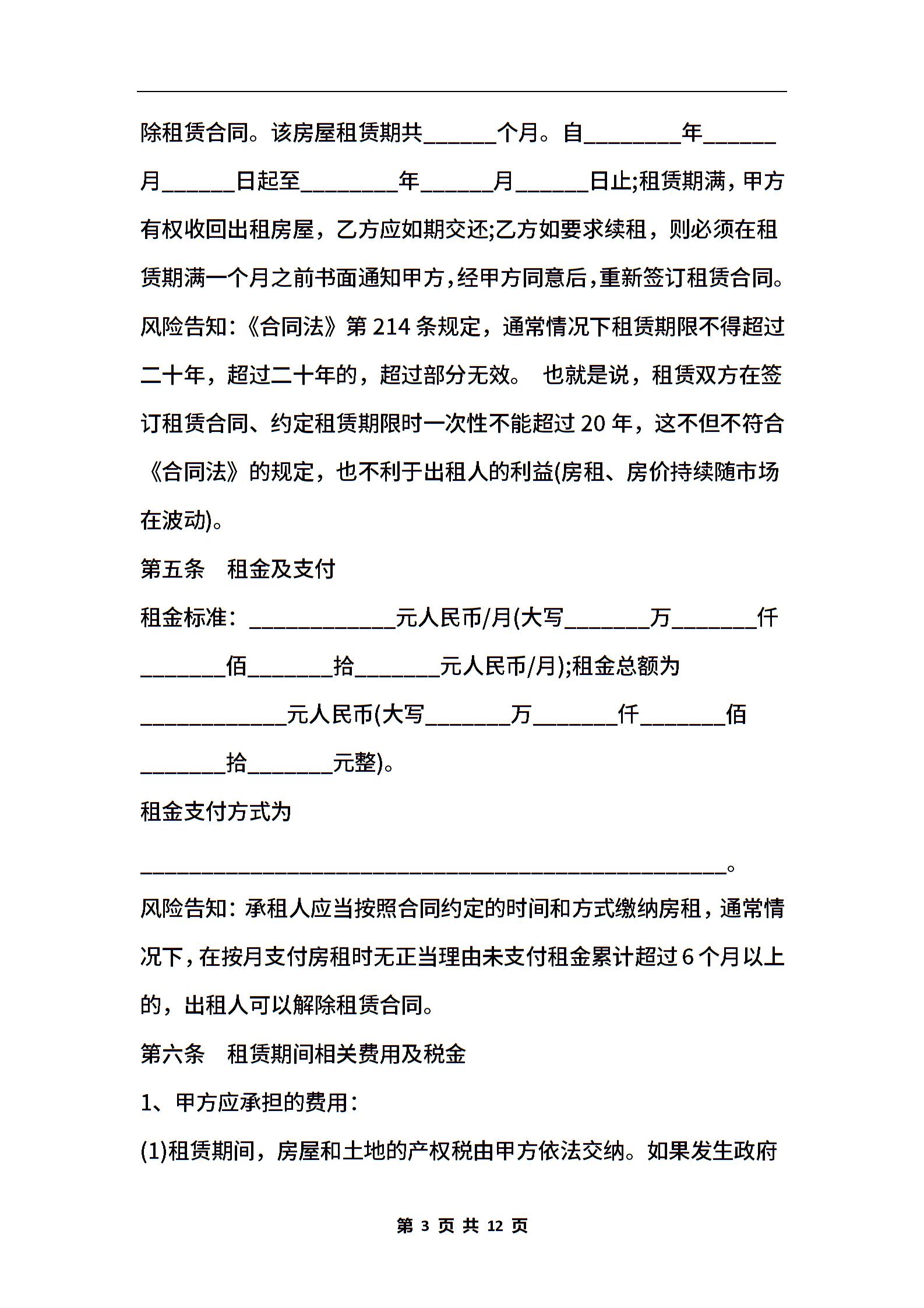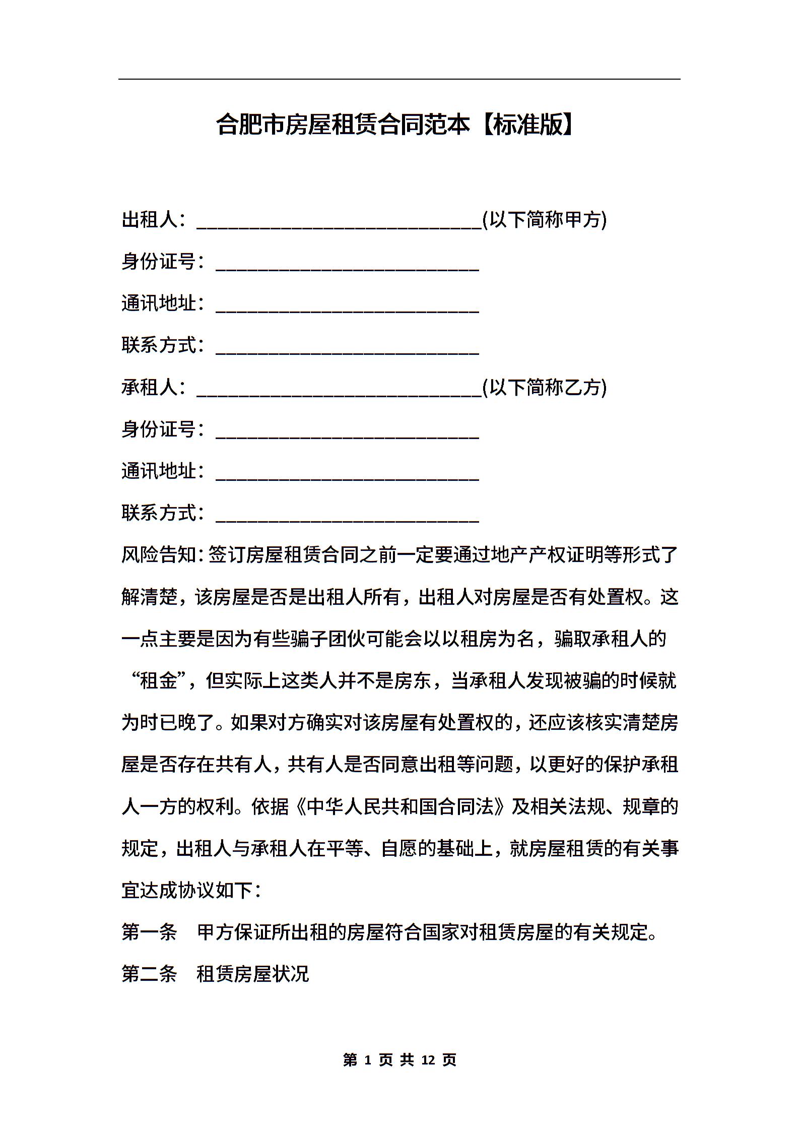合肥市房屋租赁合同范本【标准版】