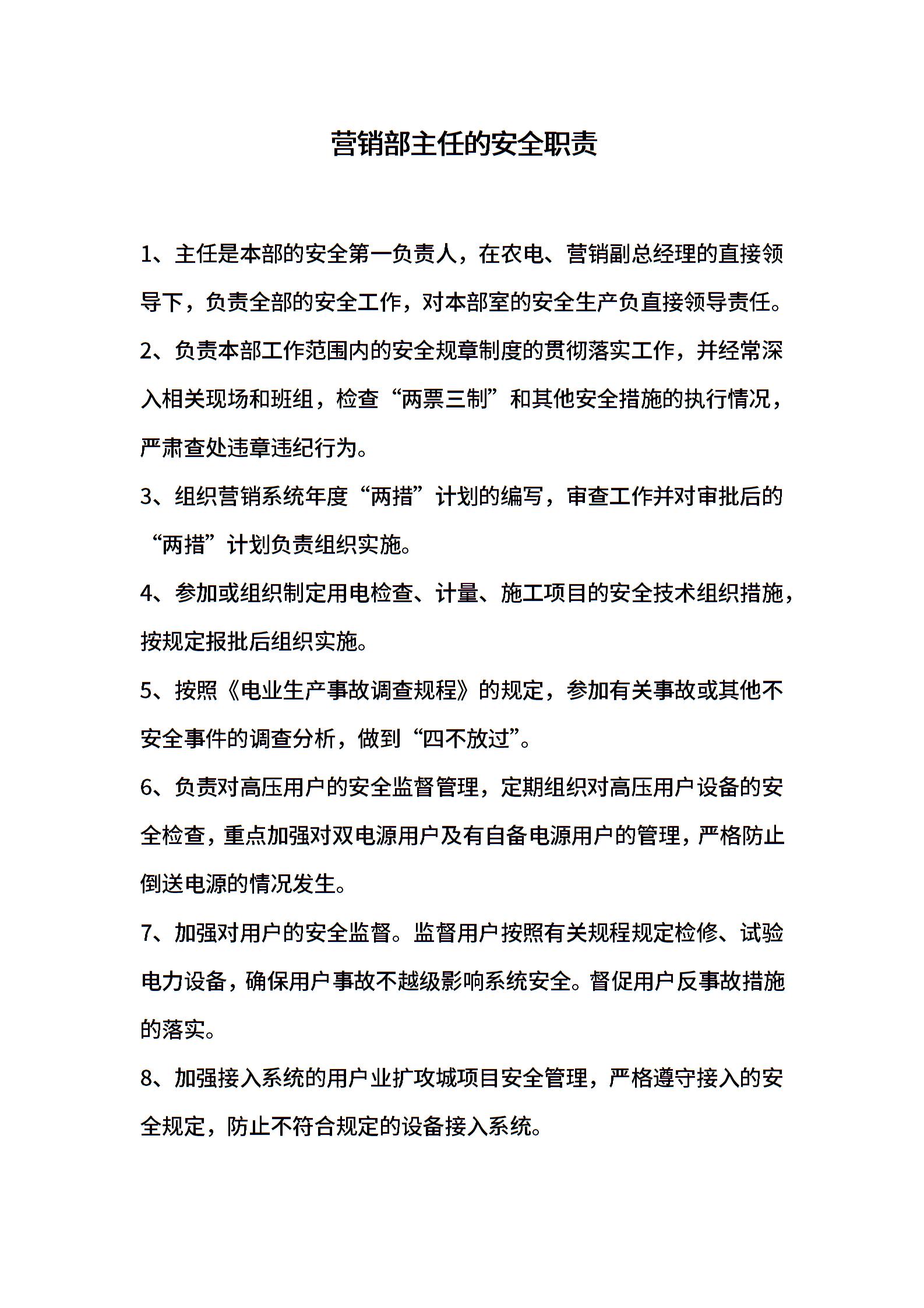 营销部主任的安全职责