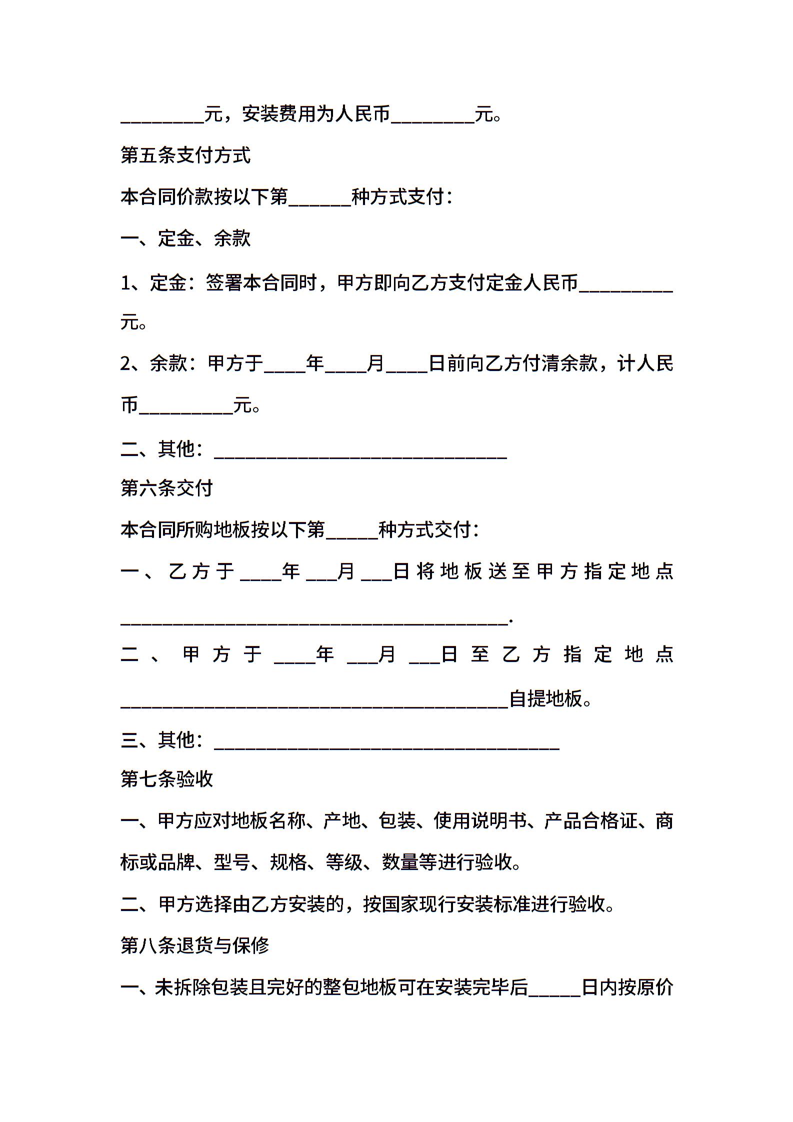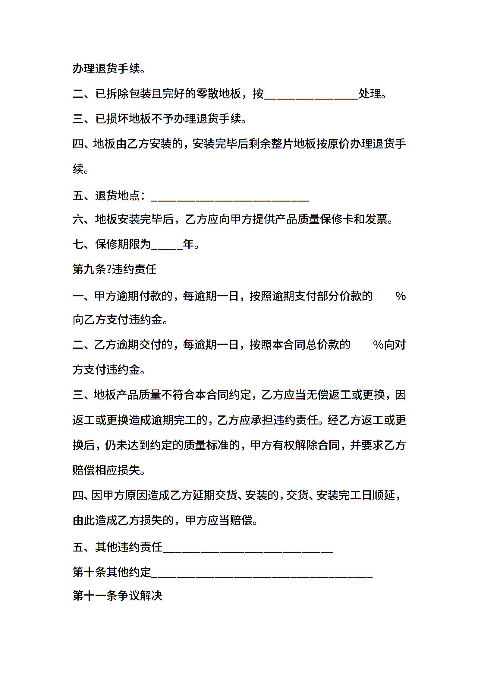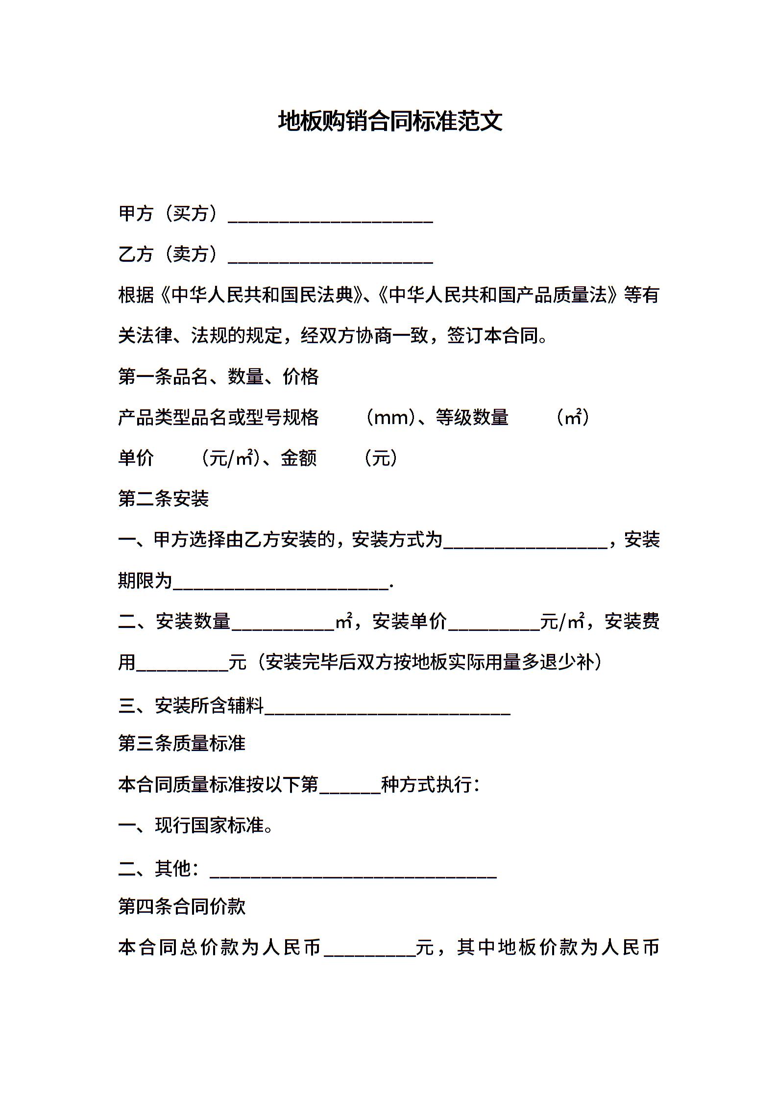 地板购销合同标准范文