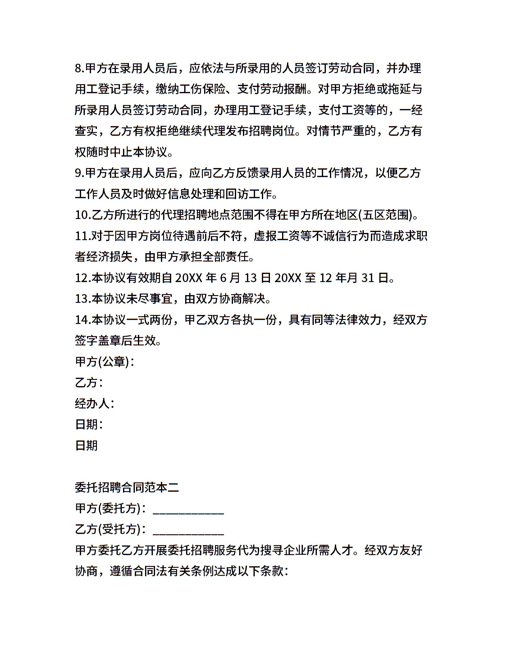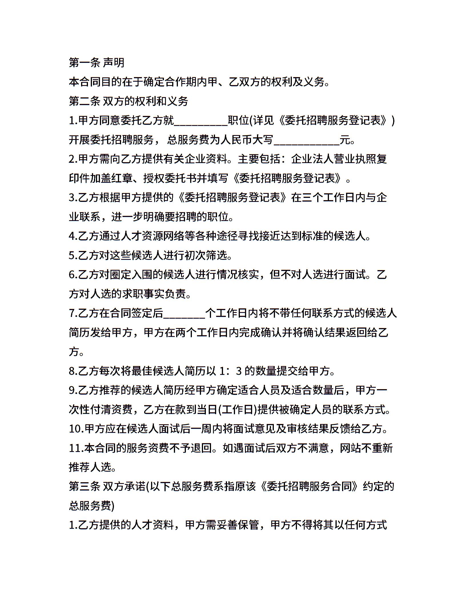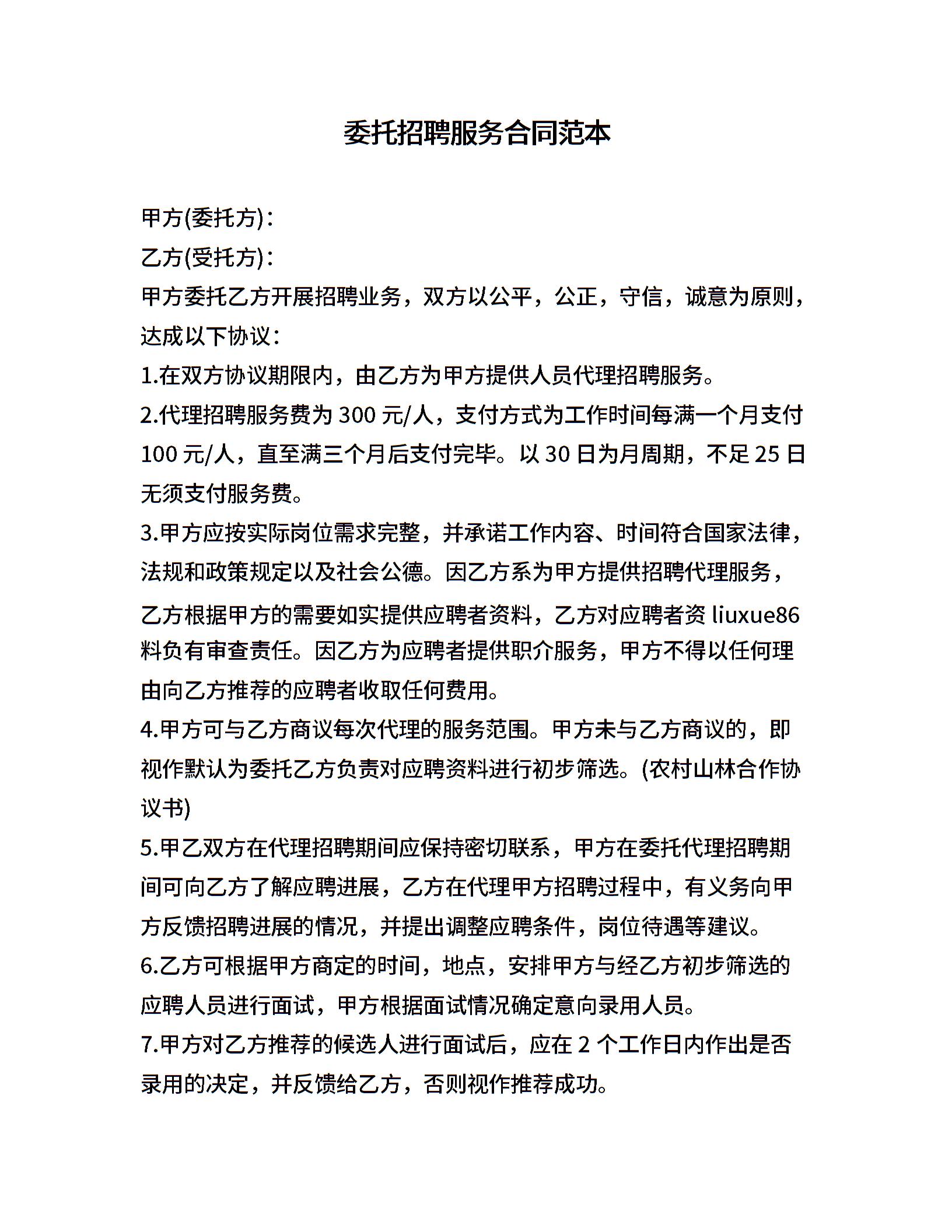 委托招聘服务合同范本
