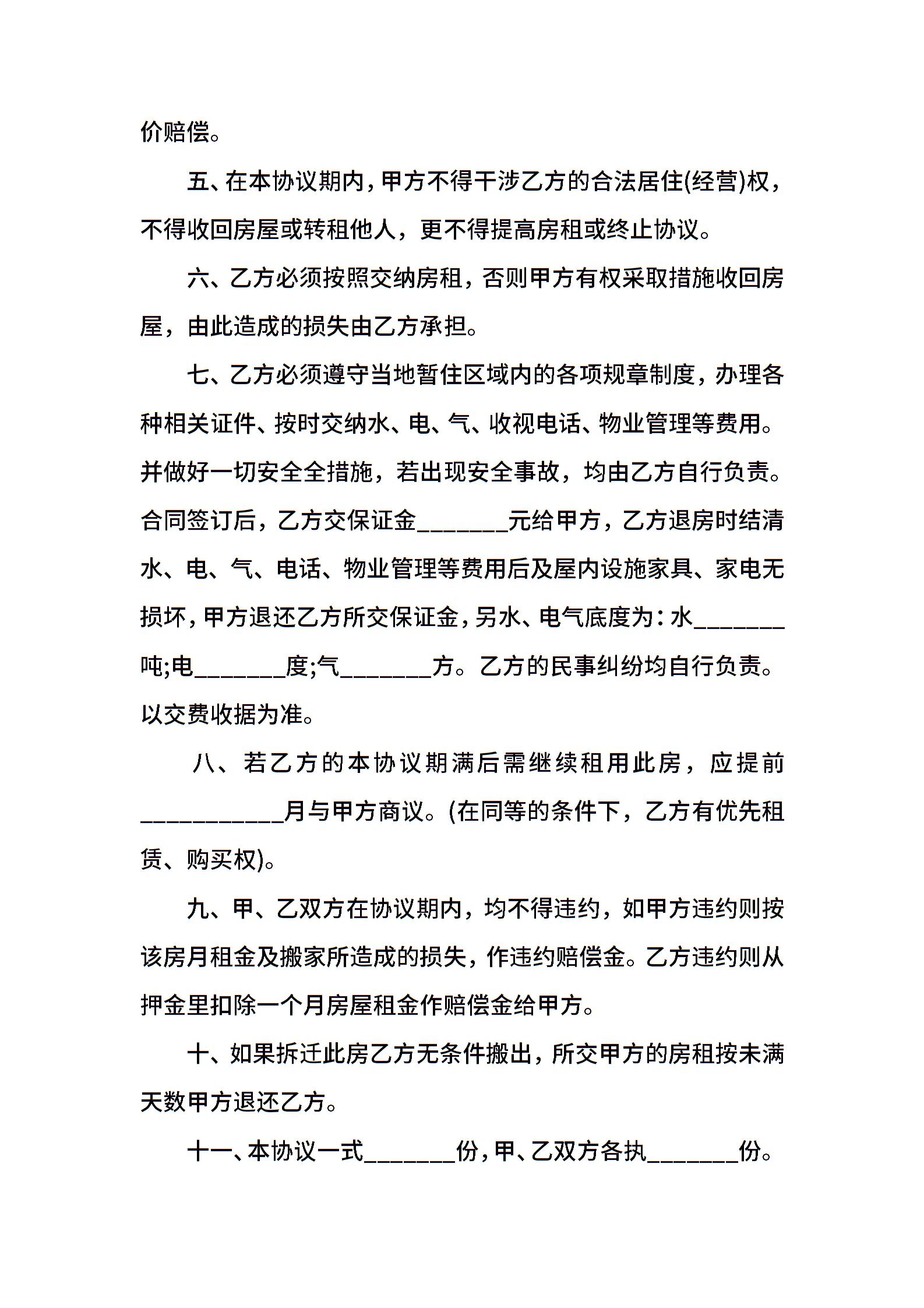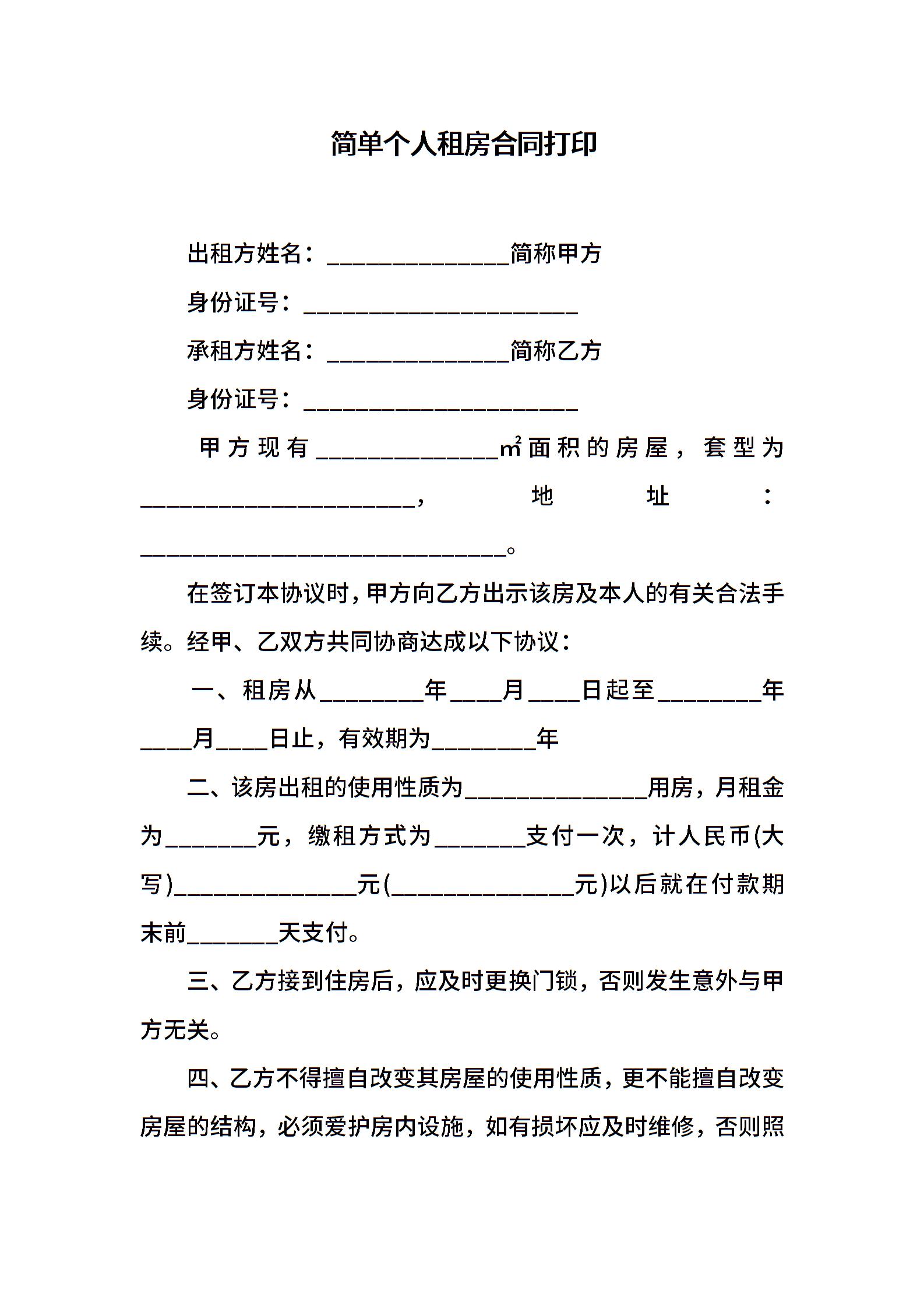 简单个人租房合同打印