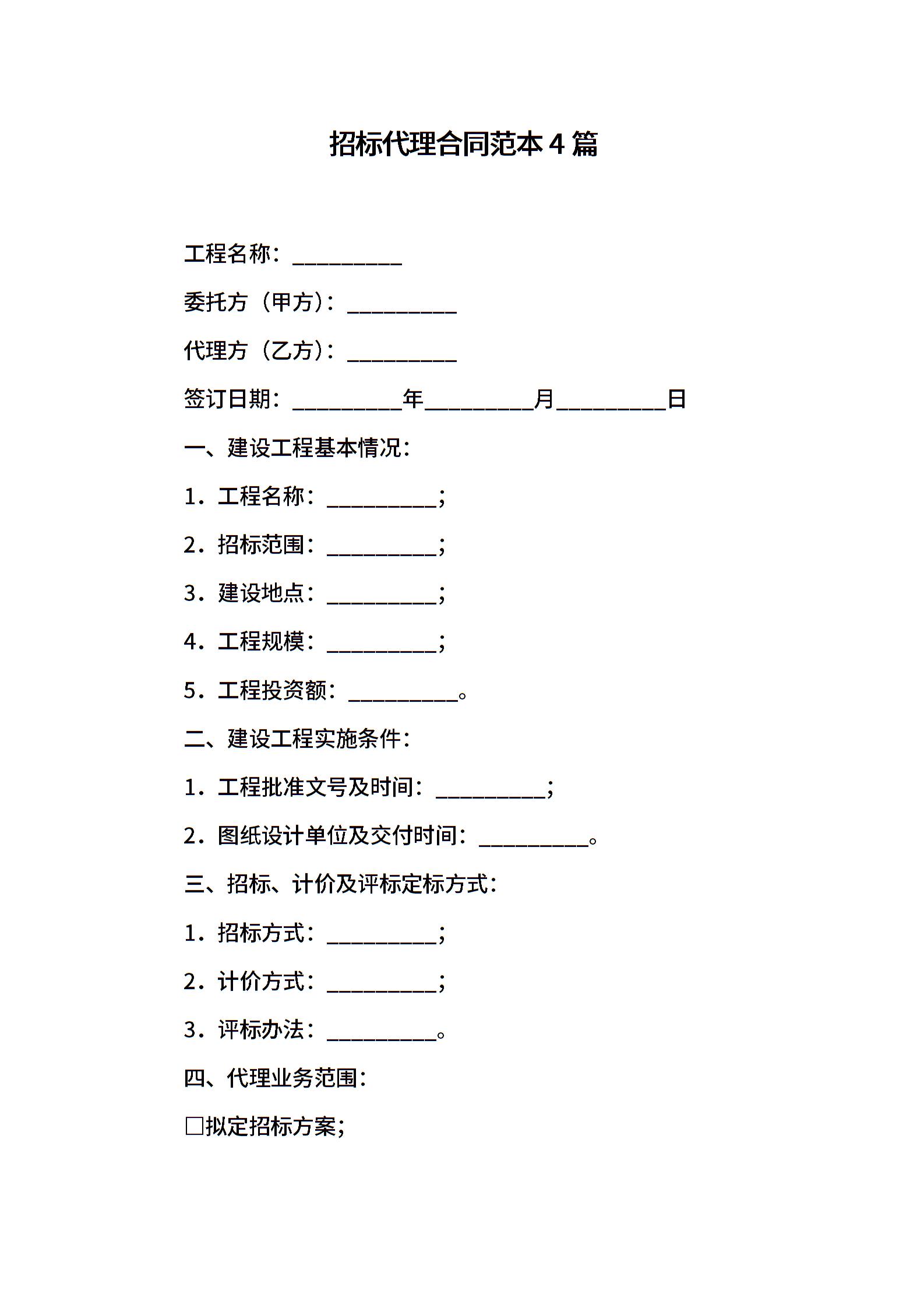 招标代理合同范本4篇