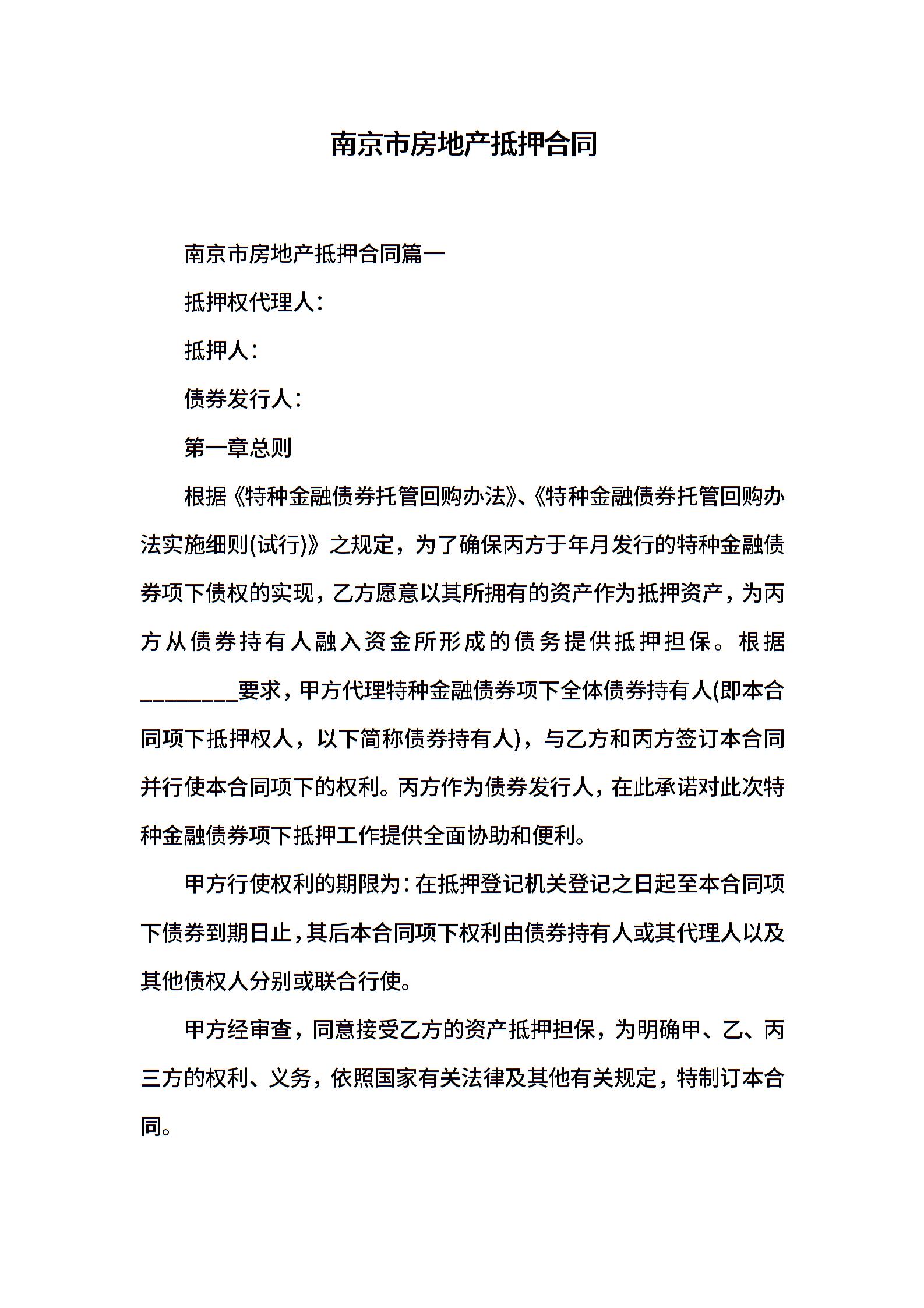 南京市房地产抵押合同