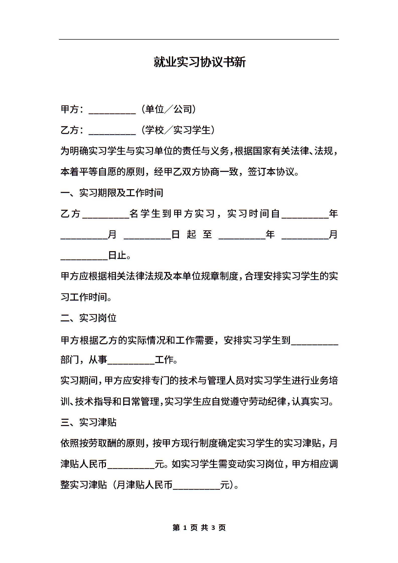 就业实习协议书新