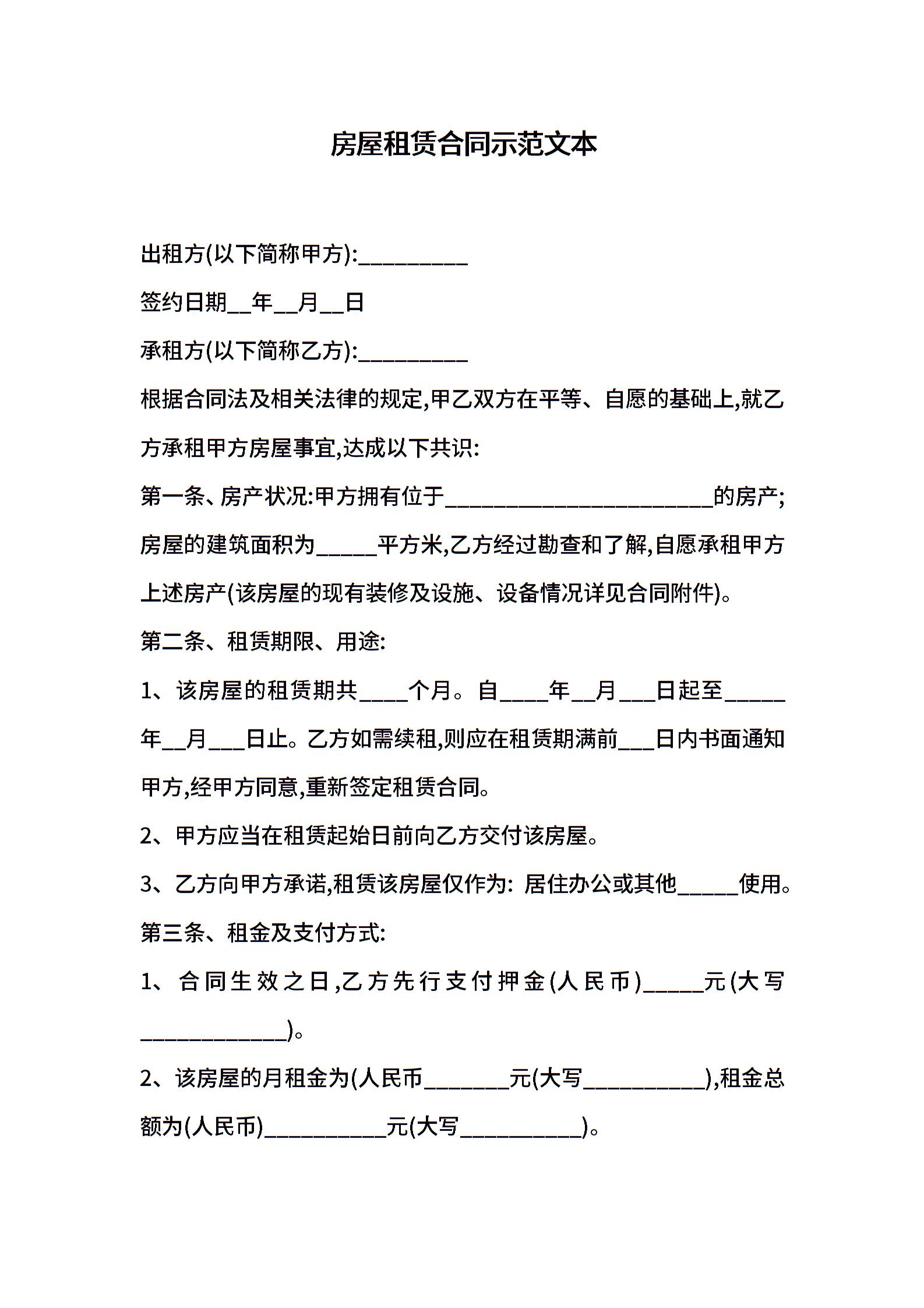 房屋租赁合同示范文本
