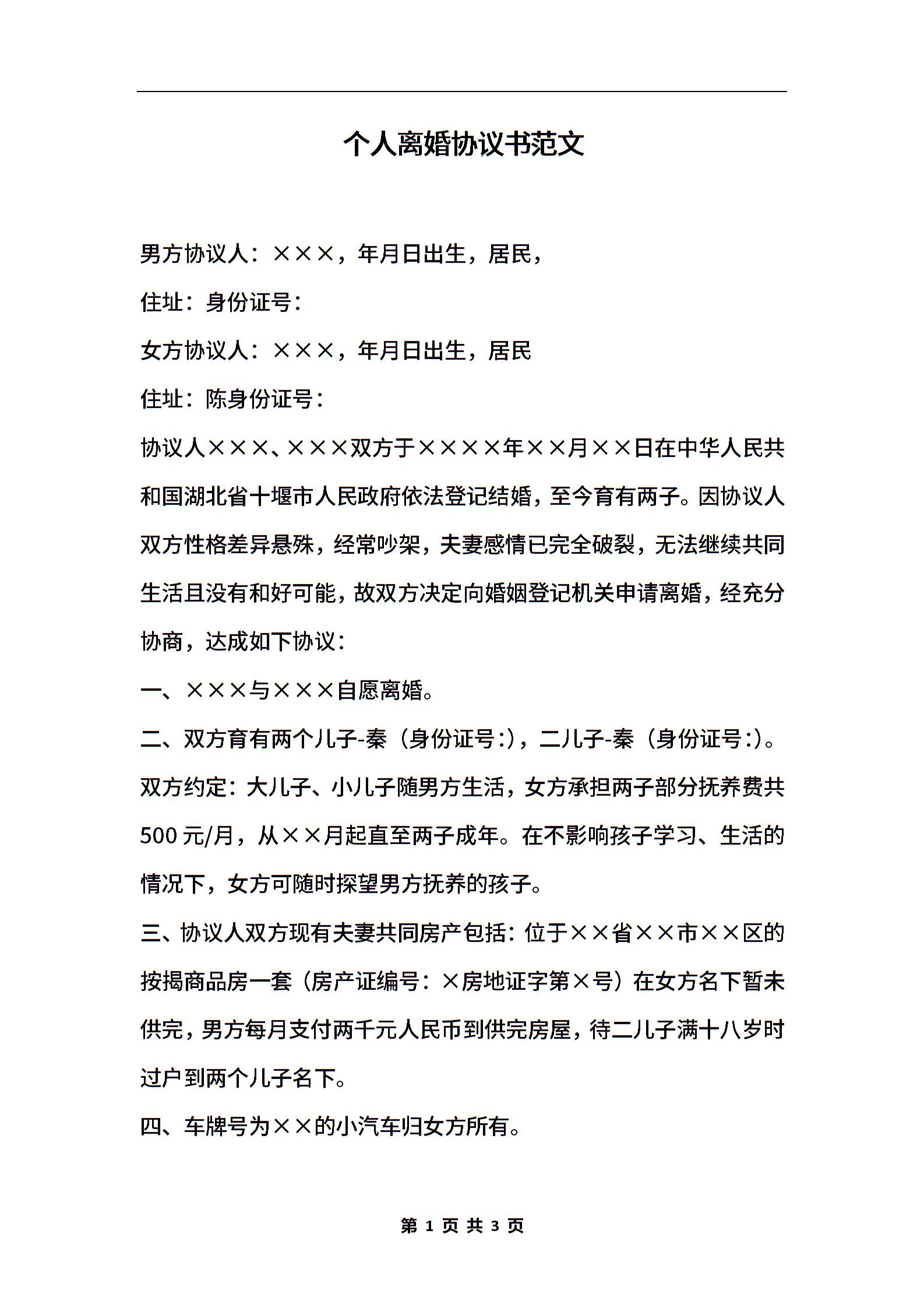 当前位置:量子办公 > 合同模板 > 离婚协议 >