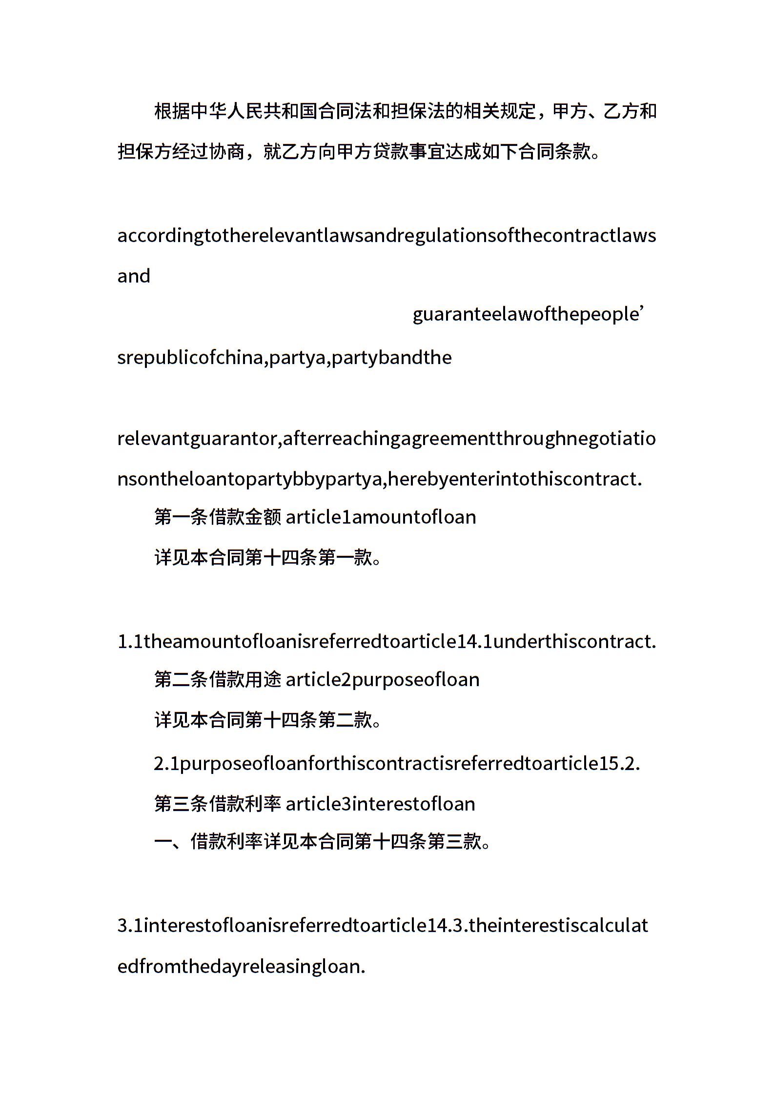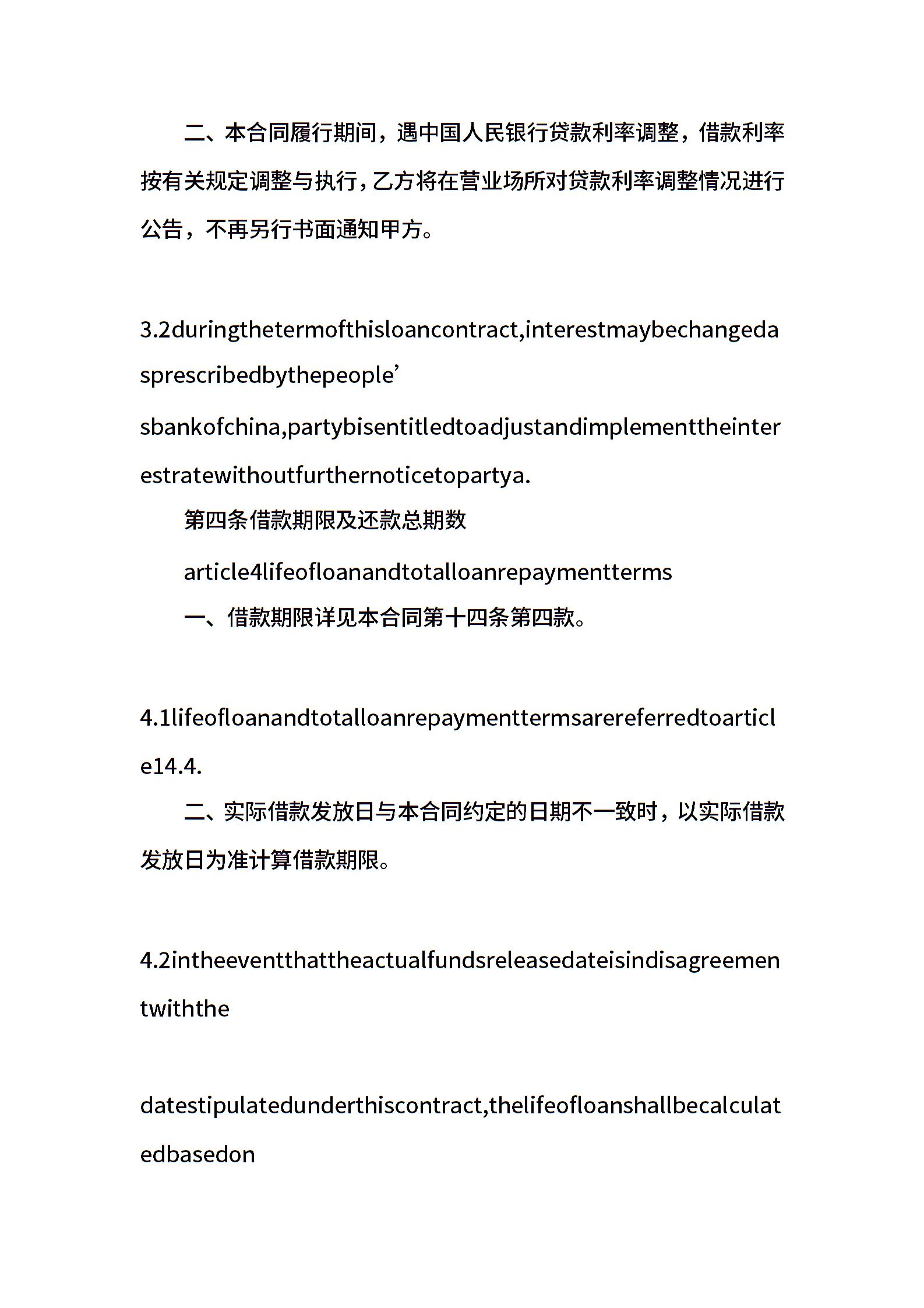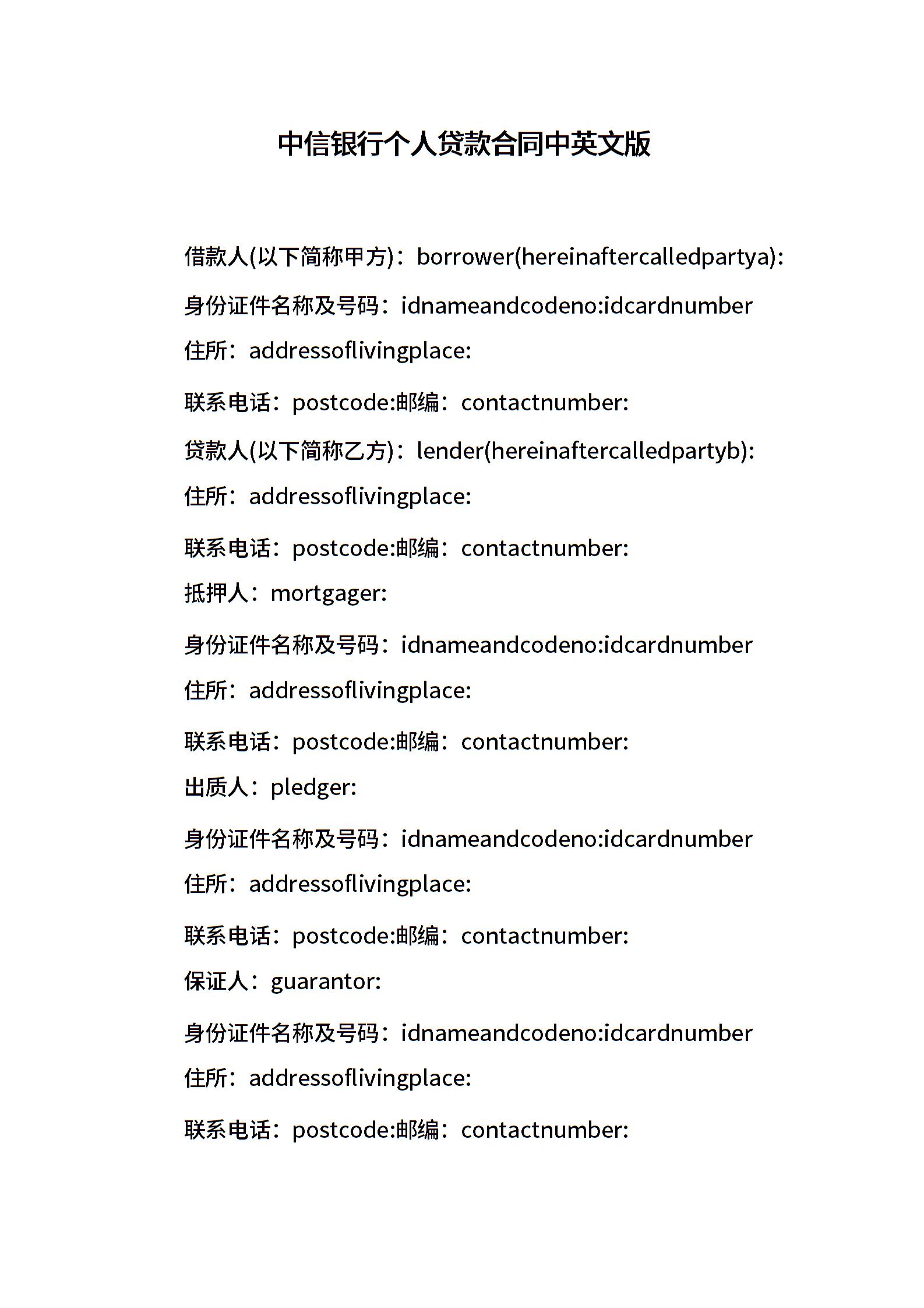 中信银行个人贷款合同中英文版