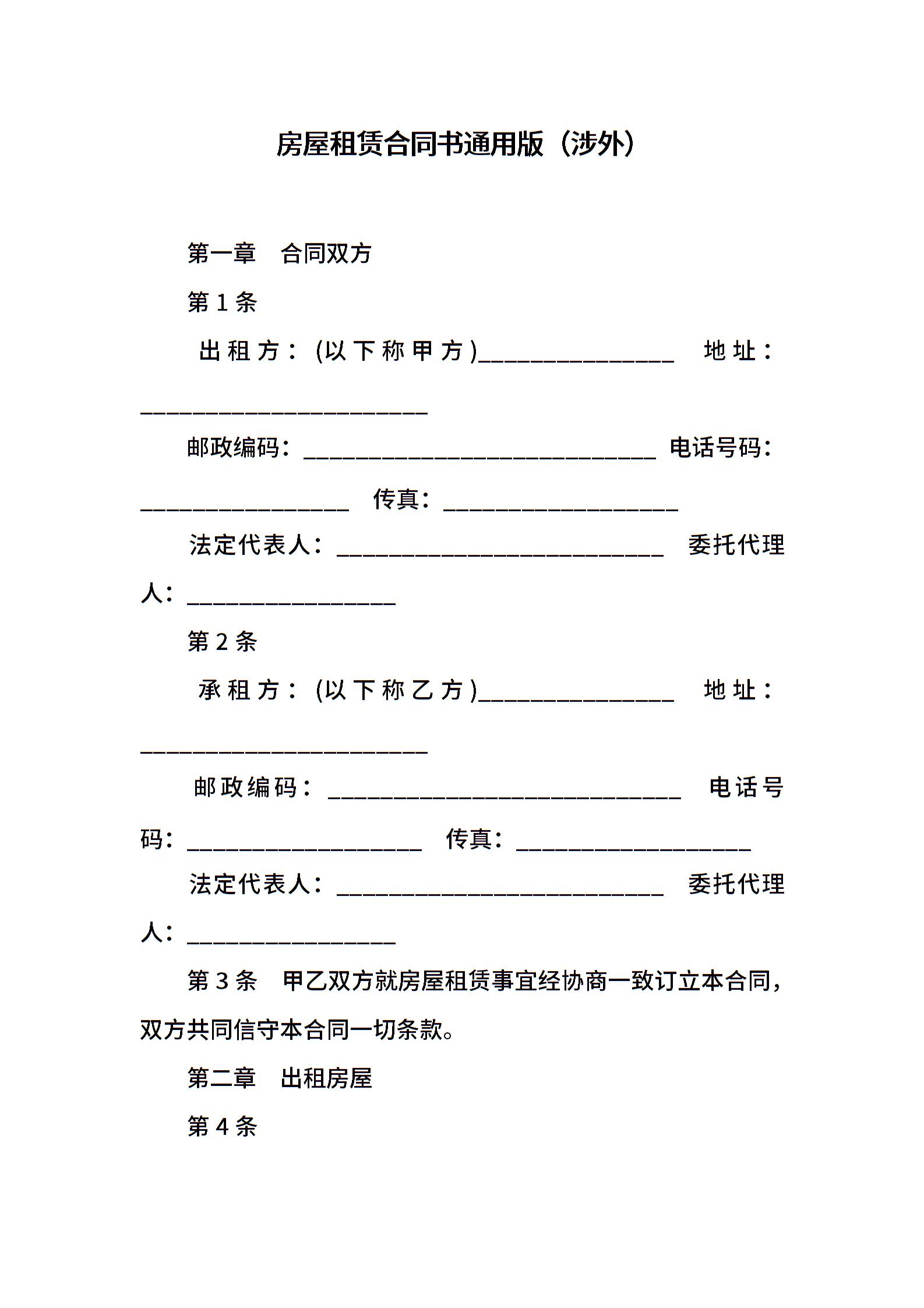 房屋租赁合同书通用版(涉外)