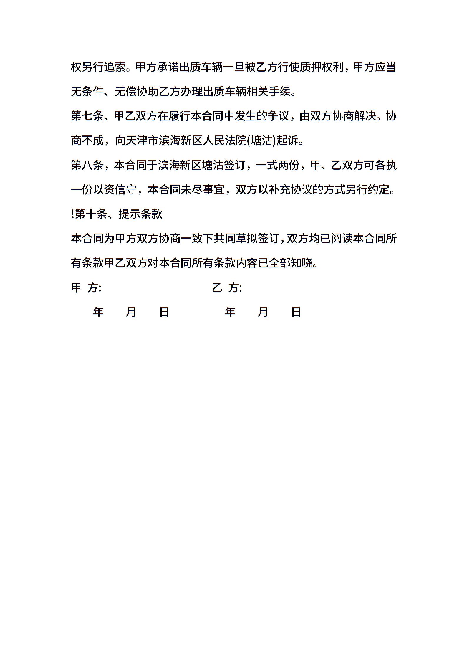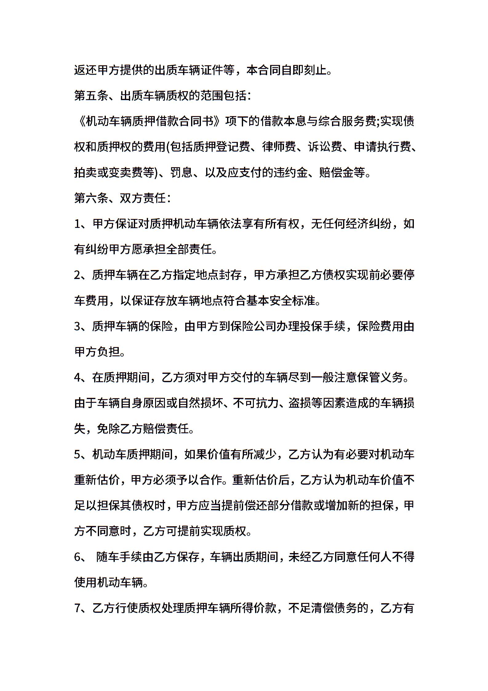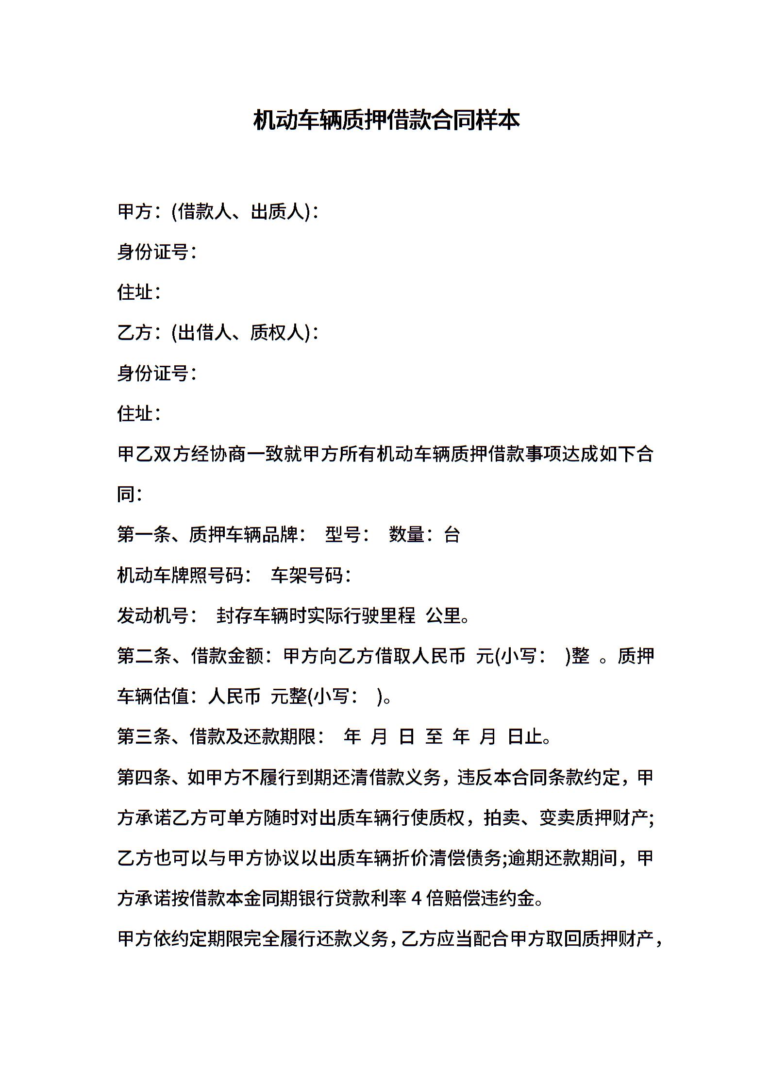 机动车辆质押借款合同样本