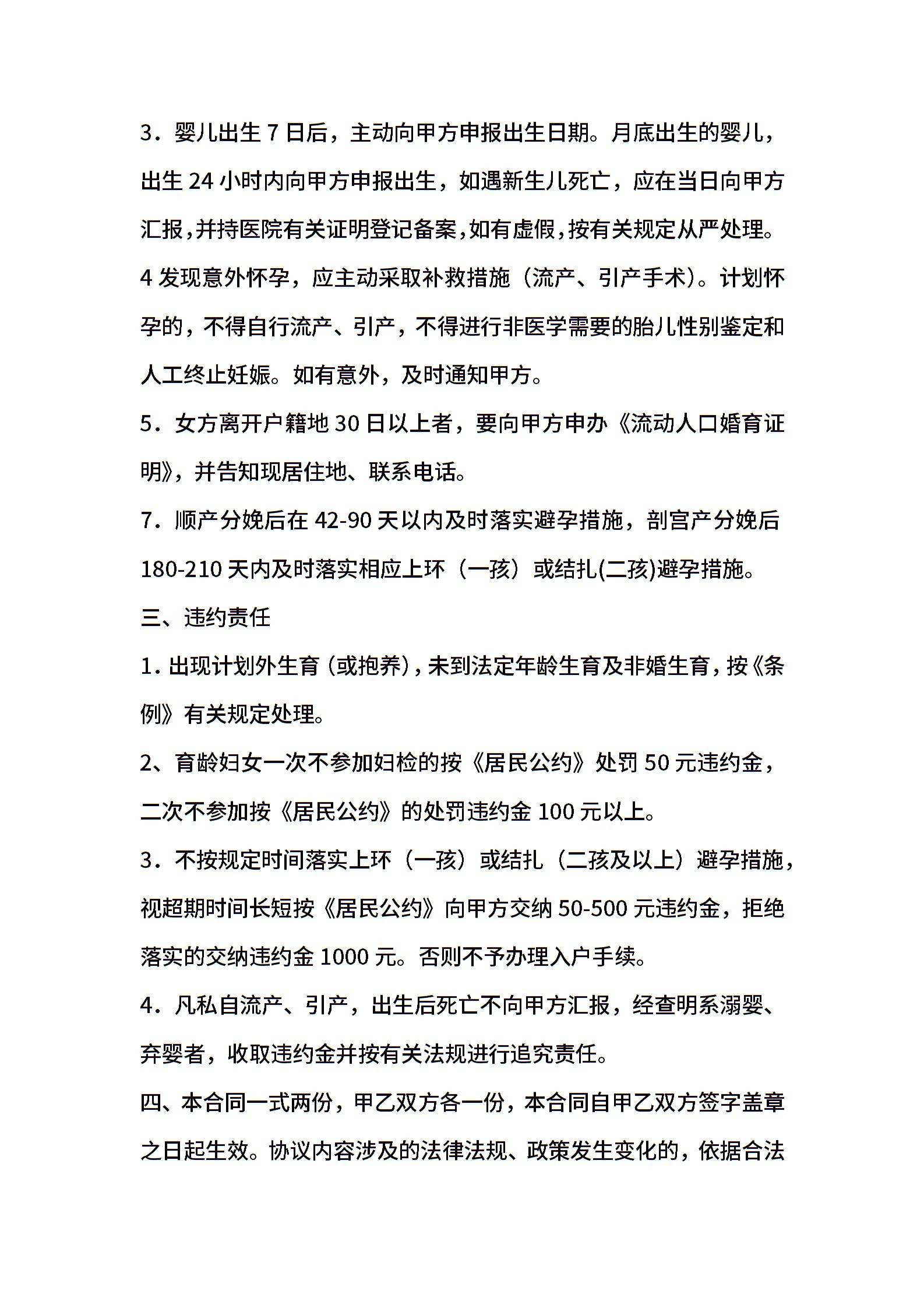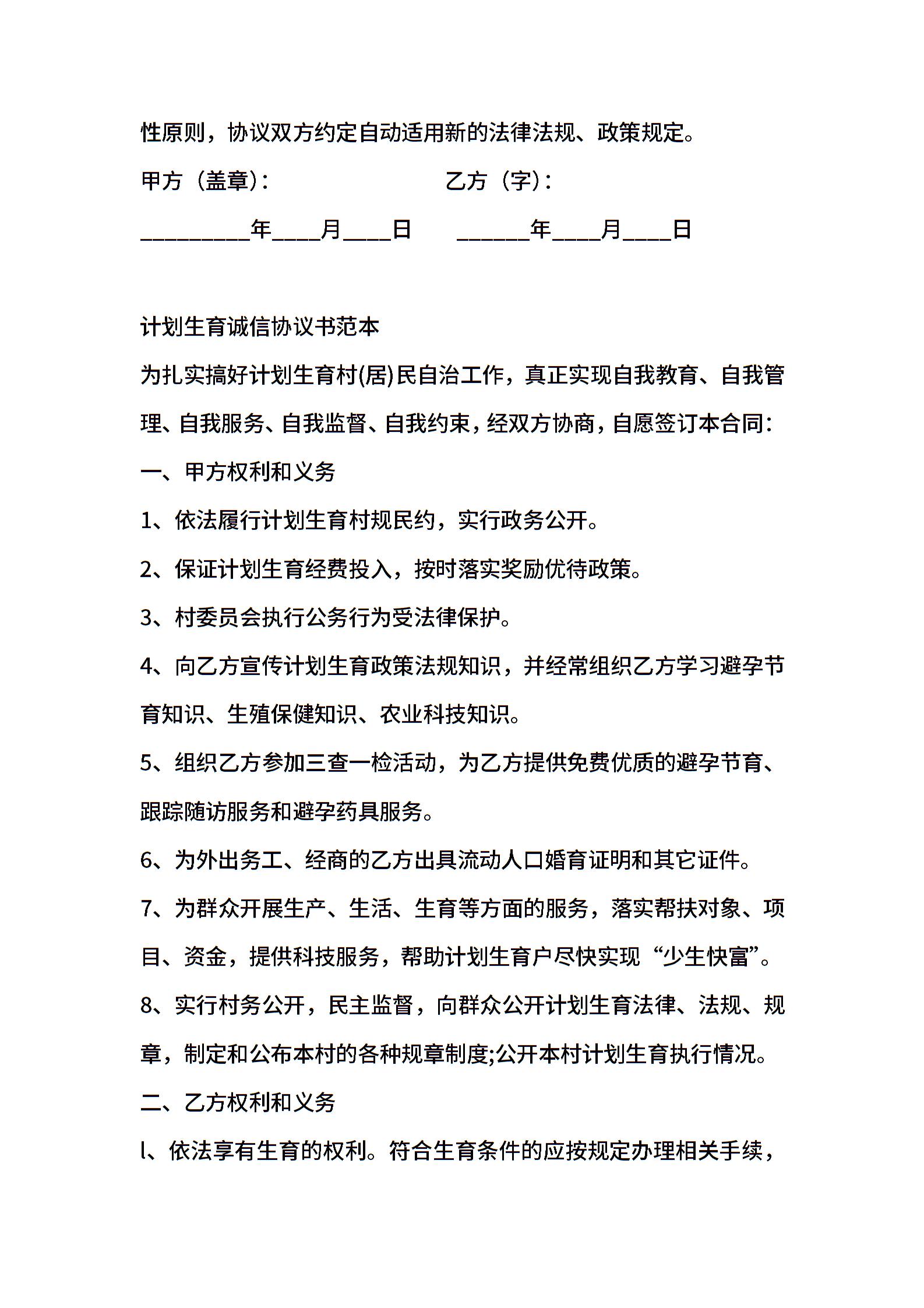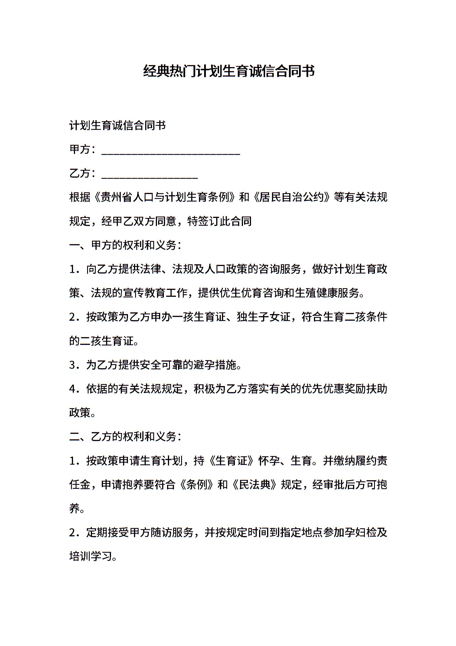 经典热门计划生育诚信合同书
