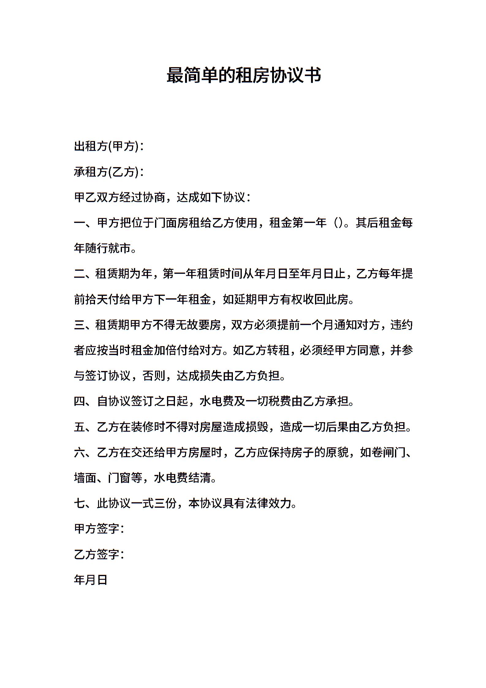 最简单的租房协议书