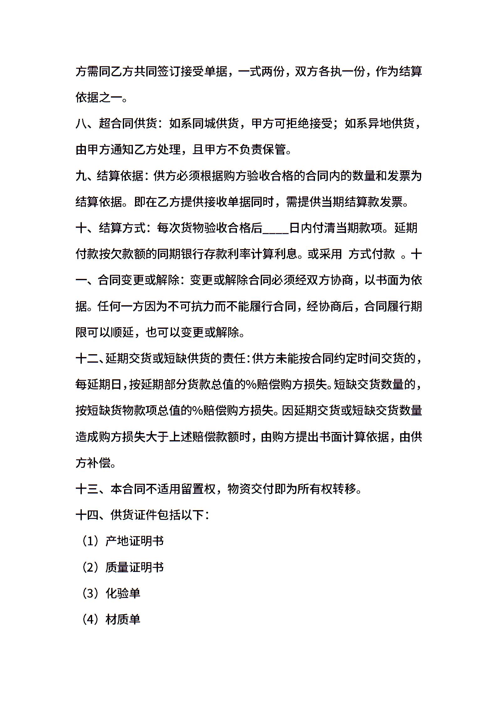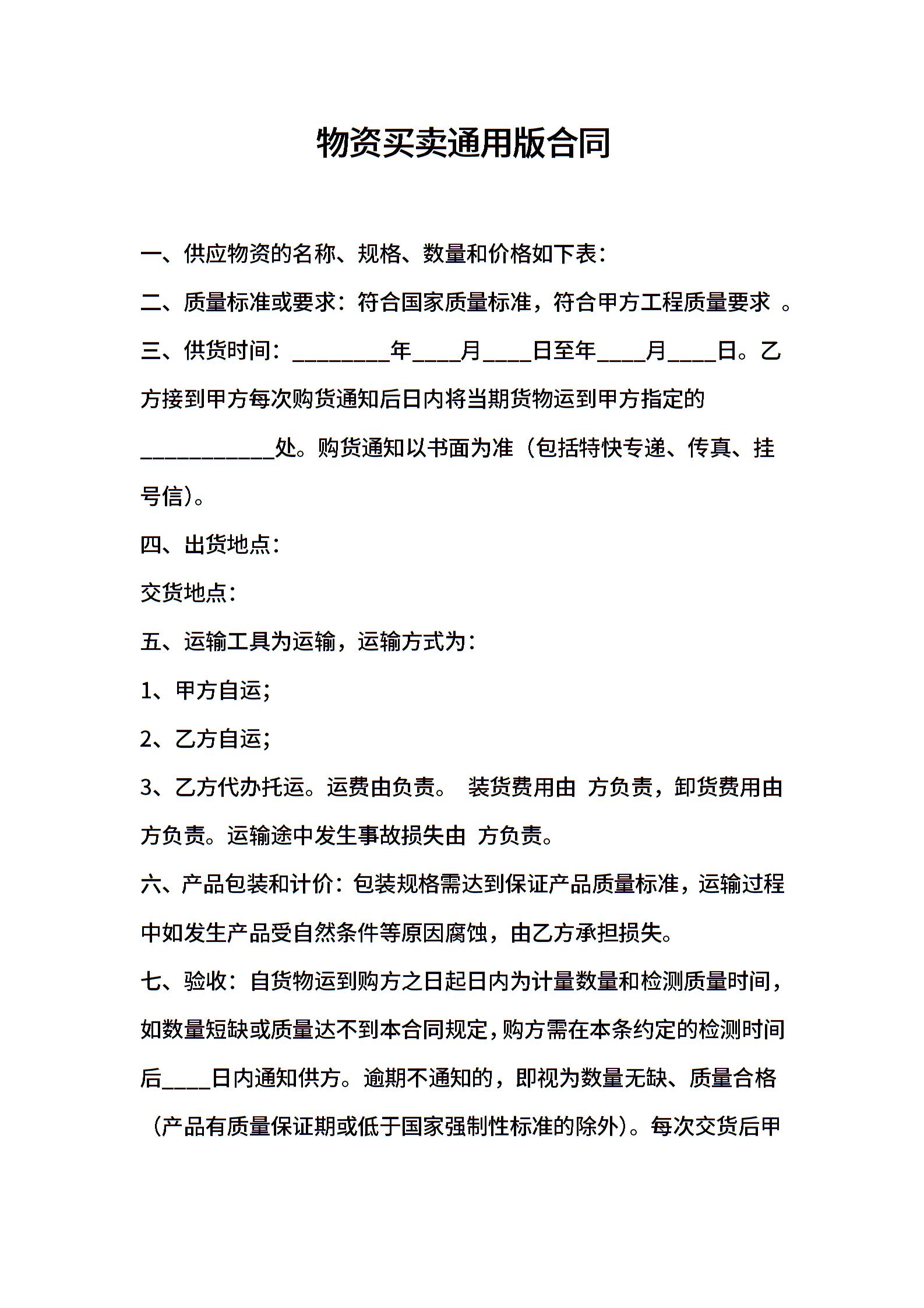 物资买卖通用版合同