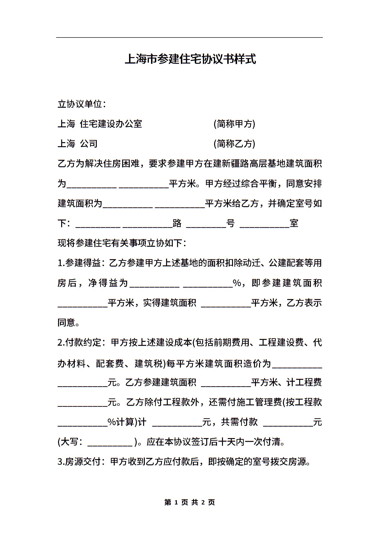 上海市参建住宅协议书样式