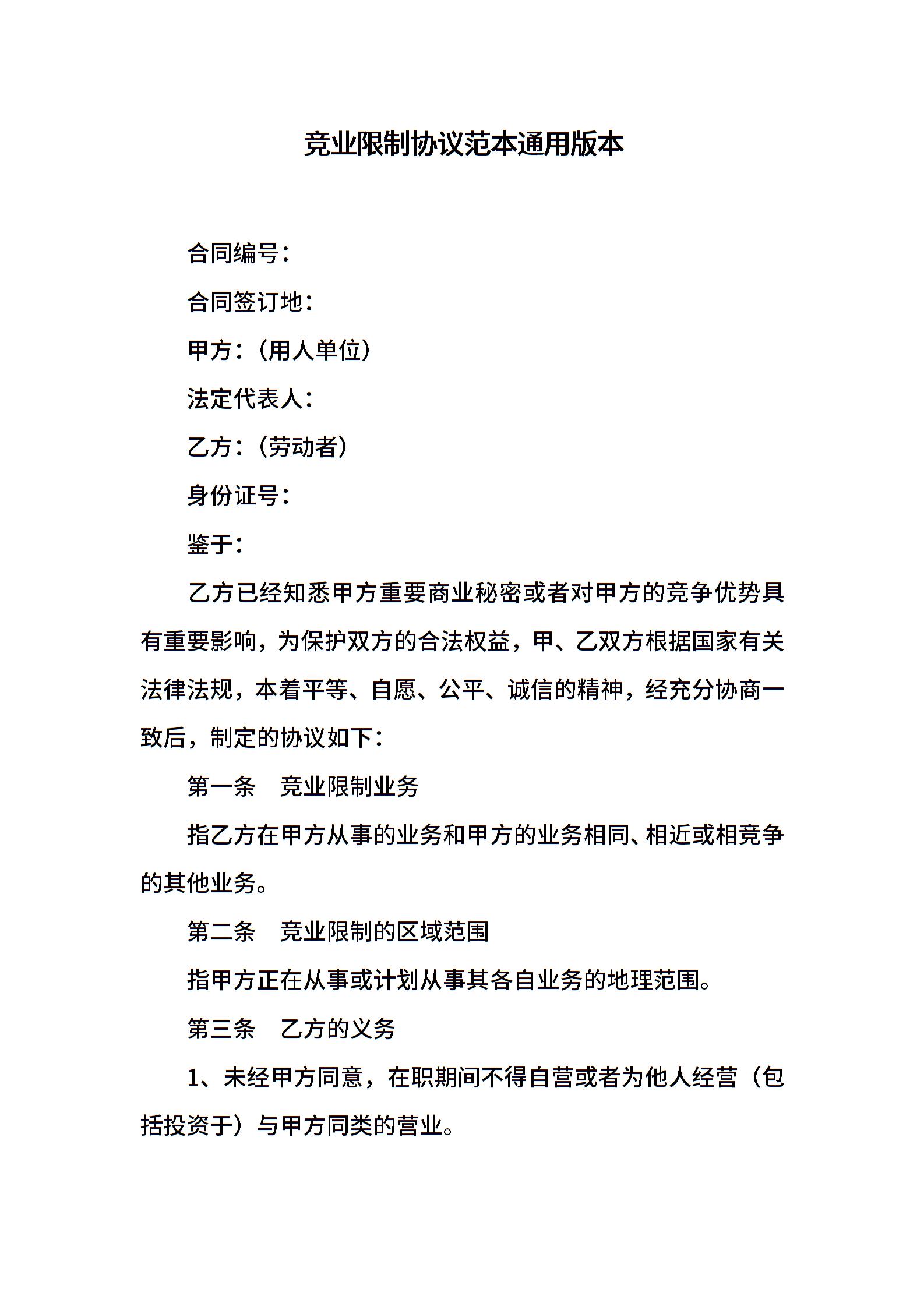 当前位置:量子办公 > 合同模板 > 竞业协议 >