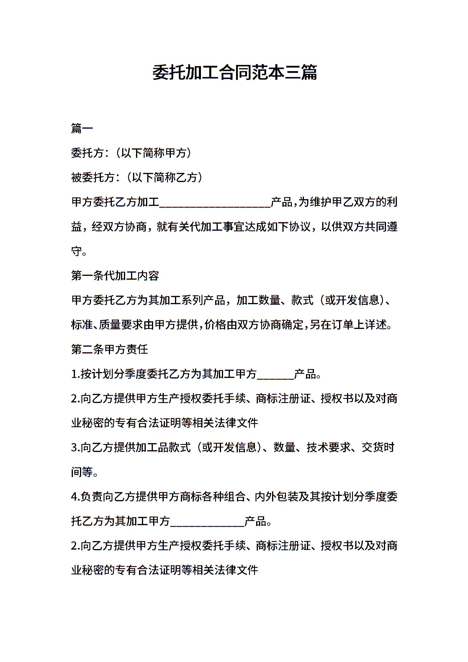 委托加工合同范本三篇