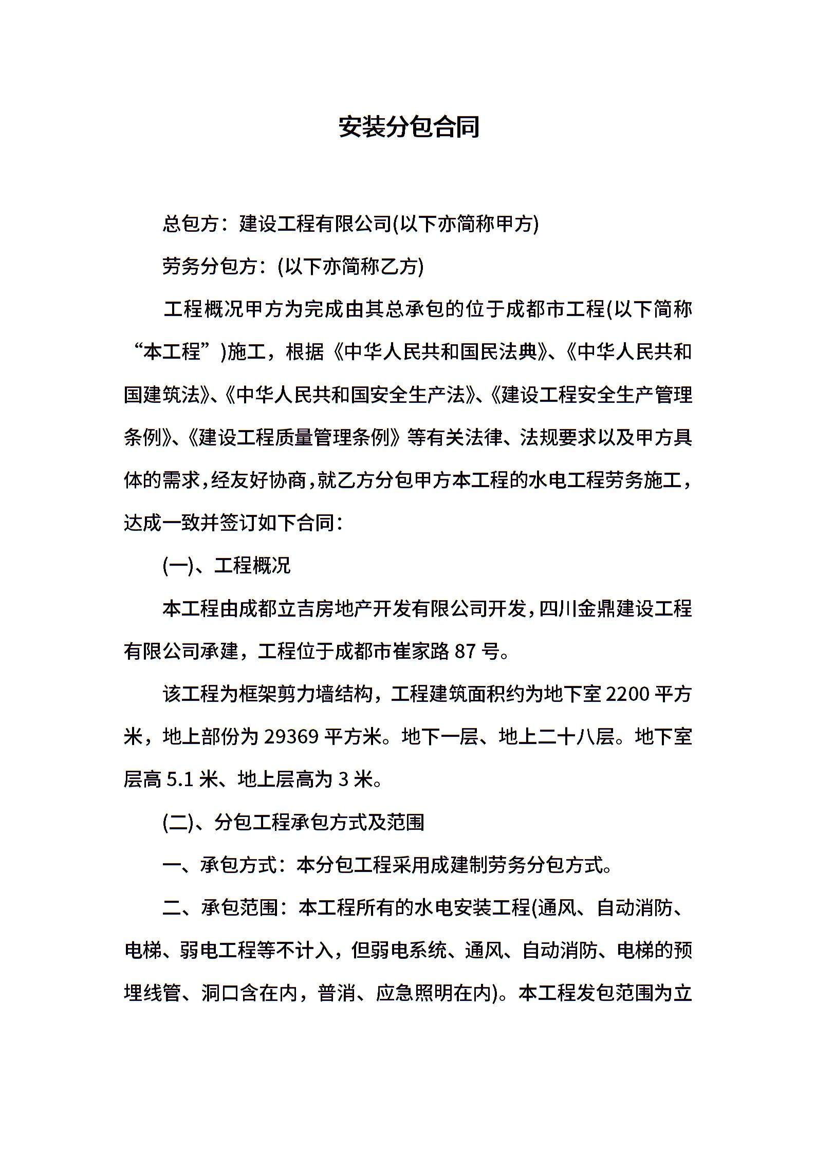 安装分包合同
