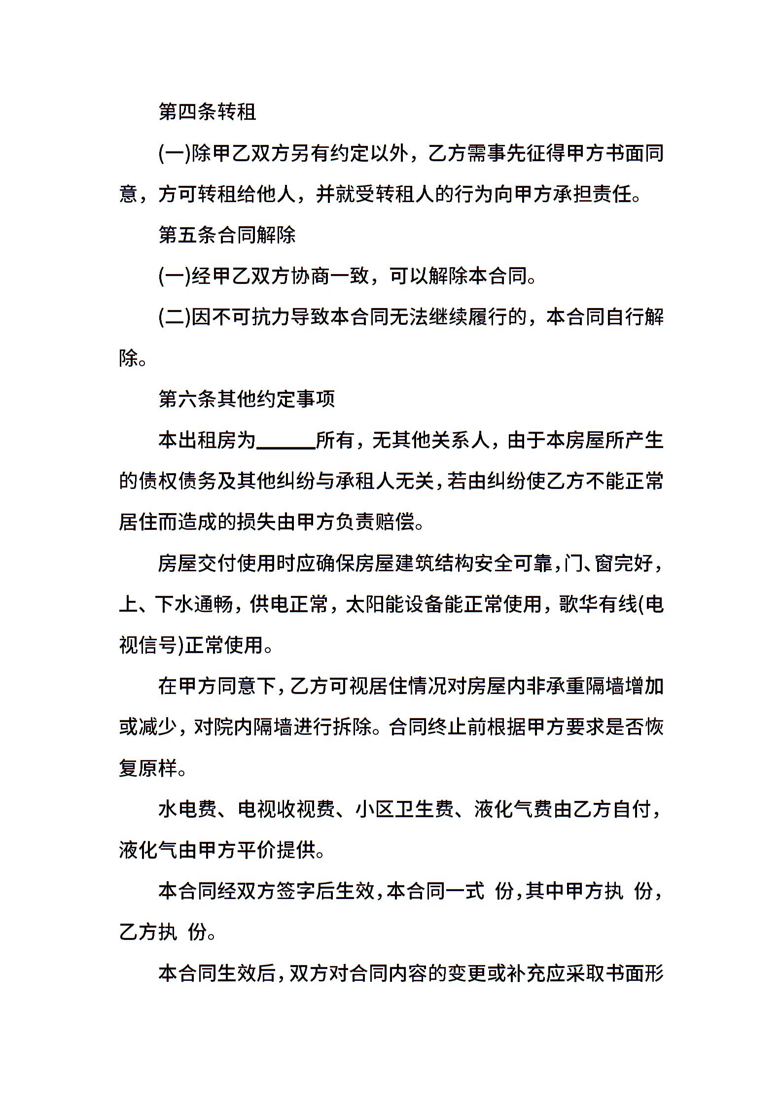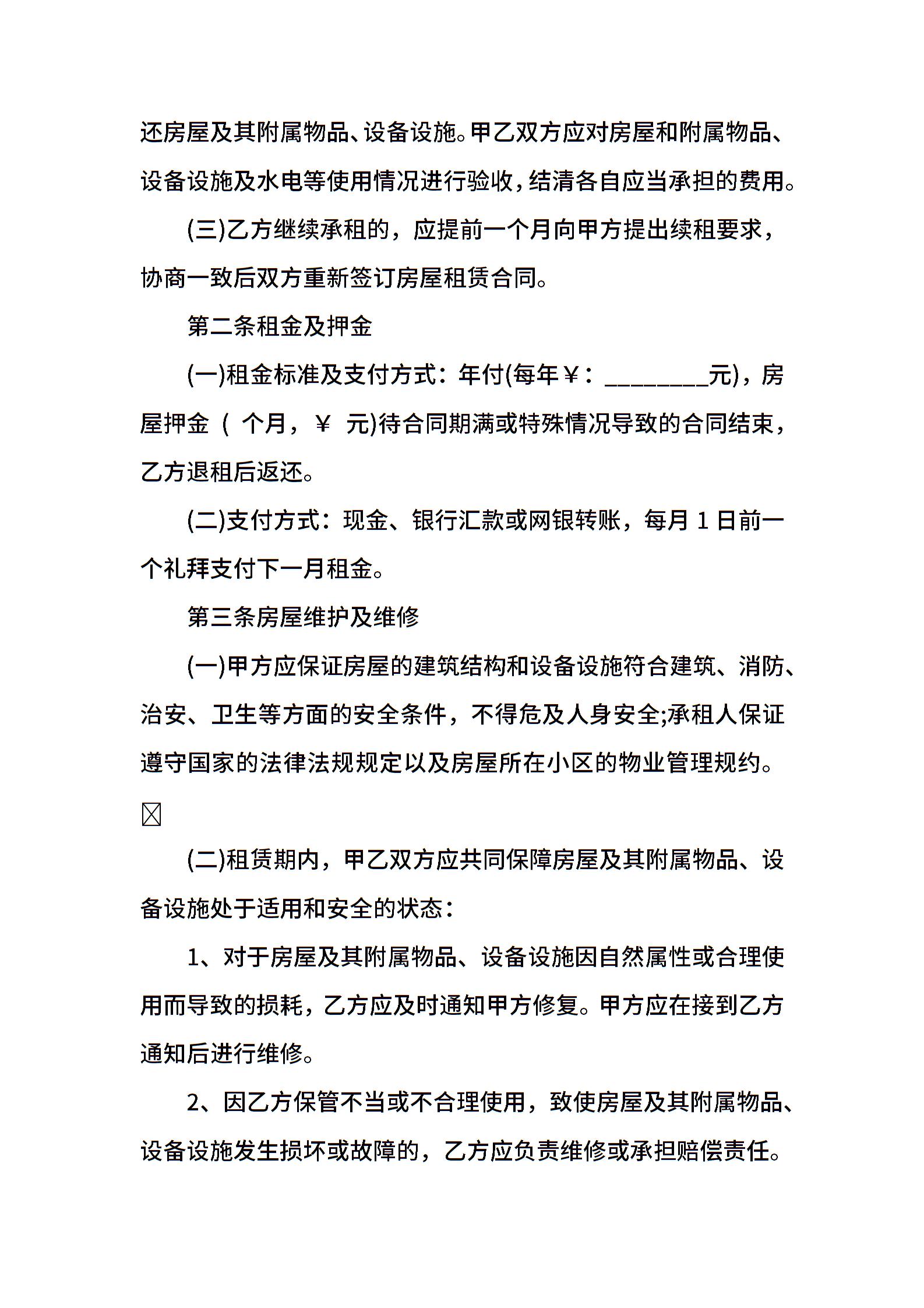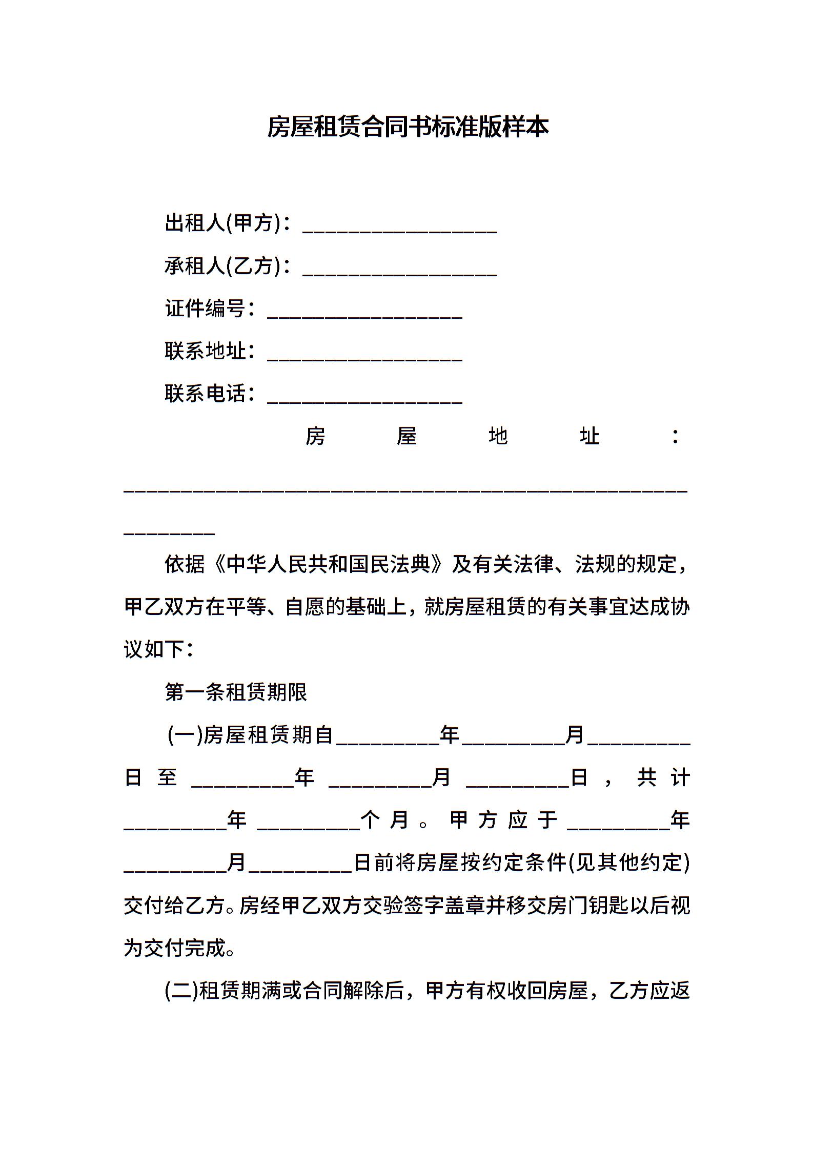 房屋租赁合同书标准版样本