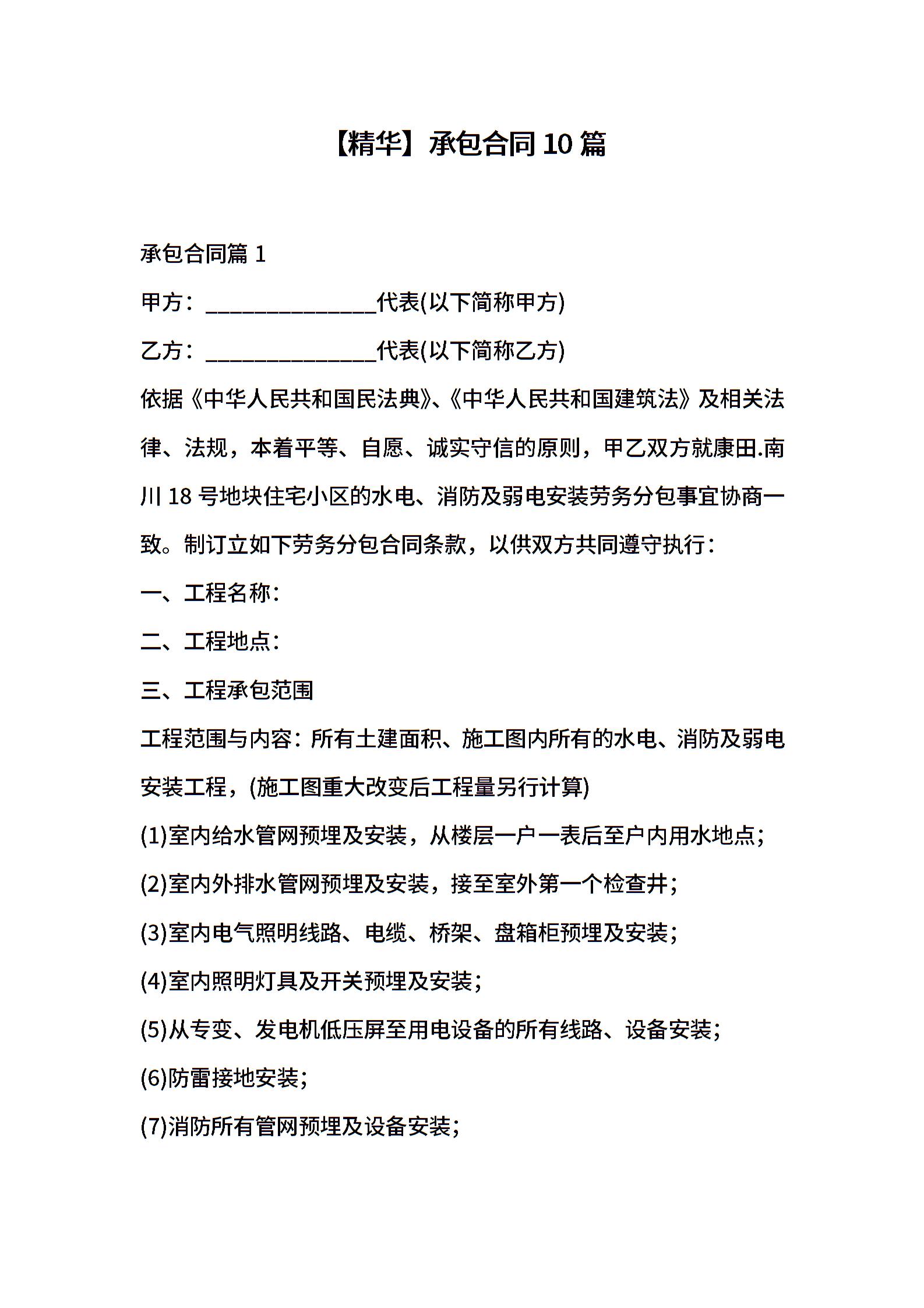 承包合同10篇